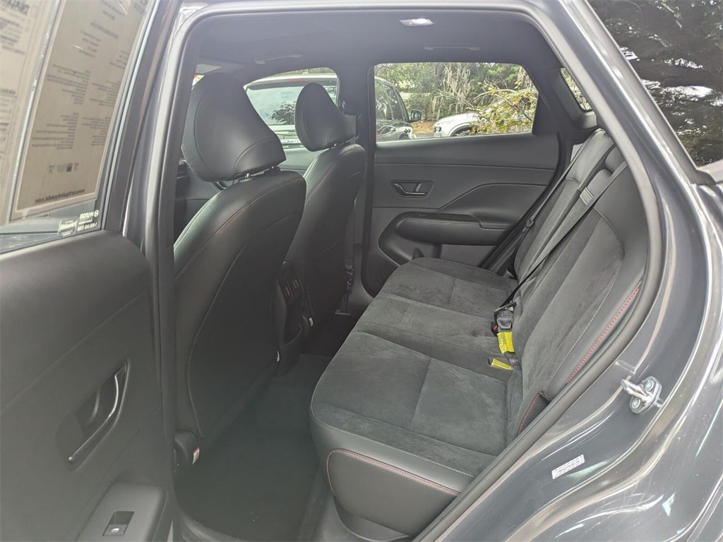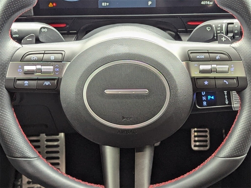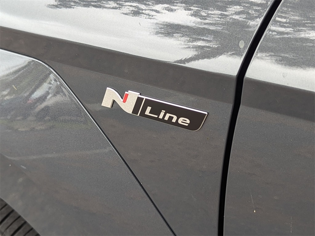 Features: Option Group 01, 3.510 Axle Ratio, 4-Wheel Disc Brakes, 8 Speakers, ABS brakes, Air Conditioning, Alloy wheels, AM/FM radio: SiriusXM, Apple CarPlay & Android Auto, Auto High-beam Headlights, Auto-dimming Rear-View mirror, Automatic temperature control, Brake assist, Bumpers: body-color, Cargo Net, Cargo Tray, Carpeted Floor Mats, Column-Mounted Shift-By-Wire, Delay-off headlights, Driver door bin, Driver vanity mirror, Dual front impact airbags, Dual front side impact airbags, Electronic Stability Control, Emergency communication system: Bluelink+, Exterior Parking Camera Rear, First Aid Kit, Four wheel independent suspension, Front anti-roll bar, Front Bucket Seats, Front Center Armrest, Front dual zone A/C, Front reading lights, Fully automatic headlights, Heated door mirrors, Heated front seats, Heated Front Sport Bucket Seats, Illuminated entry, Leather Shift Knob, Leather steering wheel, Low tire pressure warning, N-Line Alcantara Sport Combination Seat Trim, Navigation System, Occupant sensing airbag, Outside temperature display, Overhead airbag, Panic alarm, Passenger door bin, Passenger vanity mirror, Power door mirrors, Power driver seat, Power moonroof, Power steering, Power windows, Radio: AM/FM/HD Radio/SiriusXM Audio System, Rear anti-roll bar, Rear seat center armrest, Rear window defroster, Rear window wiper, Remote keyless entry, Road Assistance Kit, Security system, Speed control, Speed-sensing steering, Split folding rear seat, Spoiler, Steering wheel mounted audio controls, Tachometer, Telescoping steering wheel, Tilt steering wheel, Traction control, Trip computer, Turn signal indicator mirrors, Variably intermittent wipers, Wheel Locks, and Wheels: 19" x 7.5J Metallic Alloy.