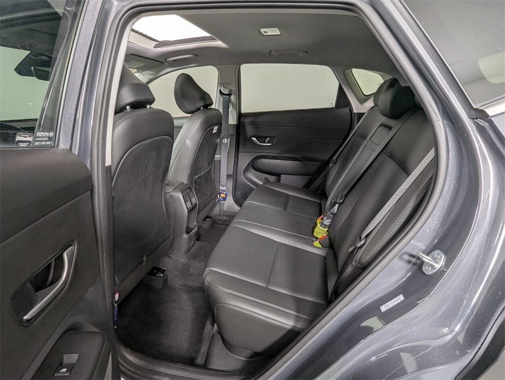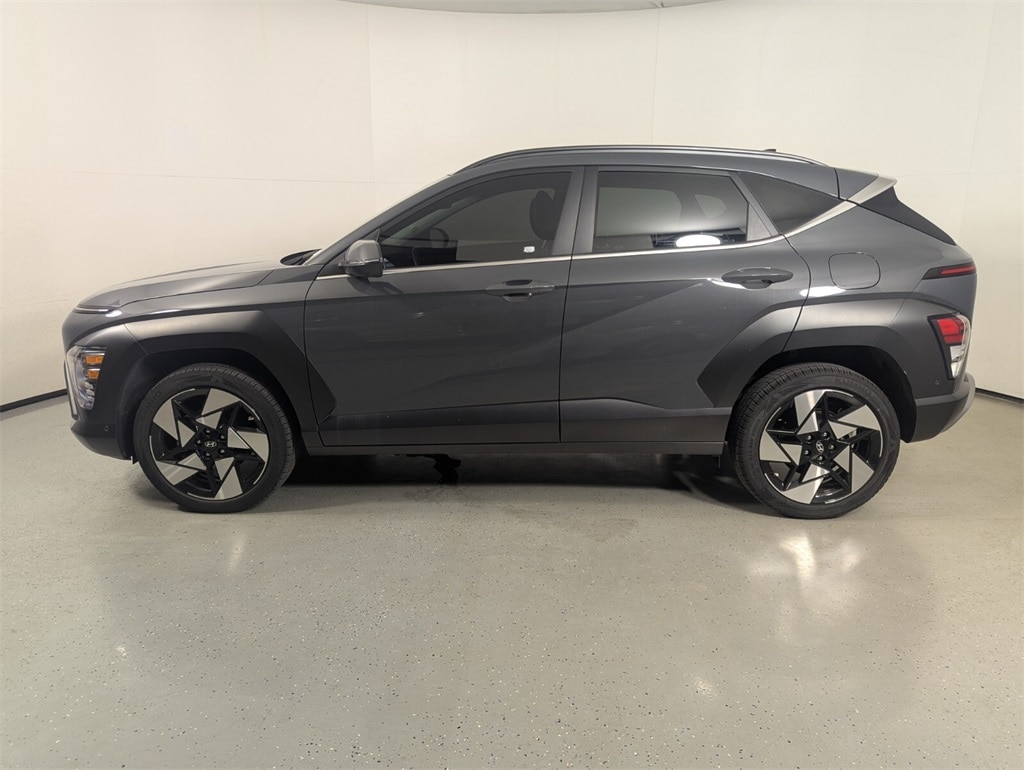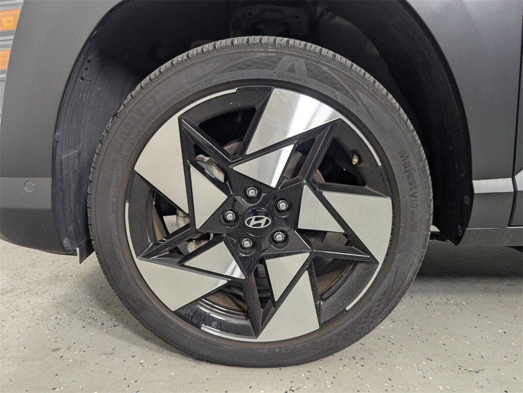 Features: Option Group 01, Kona Limited, 4D Sport Utility, I4, 8-Speed Automatic, AWD, Ecotronic Gray Pearl, Black w/H-Tex Leatherette Seat Trim, 3.510 Axle Ratio, 4-Wheel Disc Brakes, 8 Speakers, ABS brakes, Air Conditioning, Alloy wheels, AM/FM radio: SiriusXM, Apple CarPlay & Android Auto, Auto High-beam Headlights, Auto-dimming Rear-View mirror, Automatic temperature control, Brake assist, Bumpers: body-color, Cargo Net, Cargo Tray, Carpeted Floor Mats, Column-Mounted Shift-By-Wire, Delay-off headlights, Driver door bin, Driver vanity mirror, Dual front impact airbags, Dual front side impact airbags, Electronic Stability Control, Emergency communication system: Bluelink+, Four wheel independent suspension, Front anti-roll bar, Front Bucket Seats, Front Center Armrest, Front dual zone A/C, Front reading lights, Fully automatic headlights, Garage door transmitter: HomeLink, H-Tex Leatherette Seat Trim, Heated & Ventilated Front Bucket Seats, Heated door mirrors, Heated front seats, Heated steering wheel, Illuminated entry, Leather Shift Knob, Leather steering wheel, Low tire pressure warning, Mud Guards, Navigation System, Occupant sensing airbag, Outside temperature display, Overhead airbag, Panic alarm, Passenger door bin, Passenger vanity mirror, Power door mirrors, Power driver seat, Power Liftgate, Power moonroof, Power steering, Power windows, Radio: AM/FM/HD Radio/SiriusXM Audio System, Rear anti-roll bar, Rear seat center armrest, Rear window defroster, Rear window wiper, Remote keyless entry, Security system, Speed control, Speed-sensing steering, Split folding rear seat, Spoiler, Steering wheel mounted audio controls, Tachometer, Telescoping steering wheel, Tilt steering wheel, Traction control, Trip computer, Turn signal indicator mirrors, Variably intermittent wipers, Ventilated front seats, and Wheels: 19" x 7.5J Glossy Black Alloy.