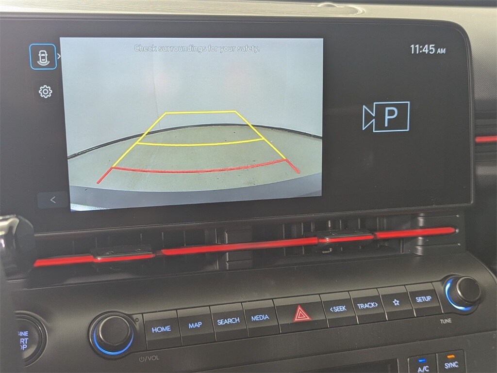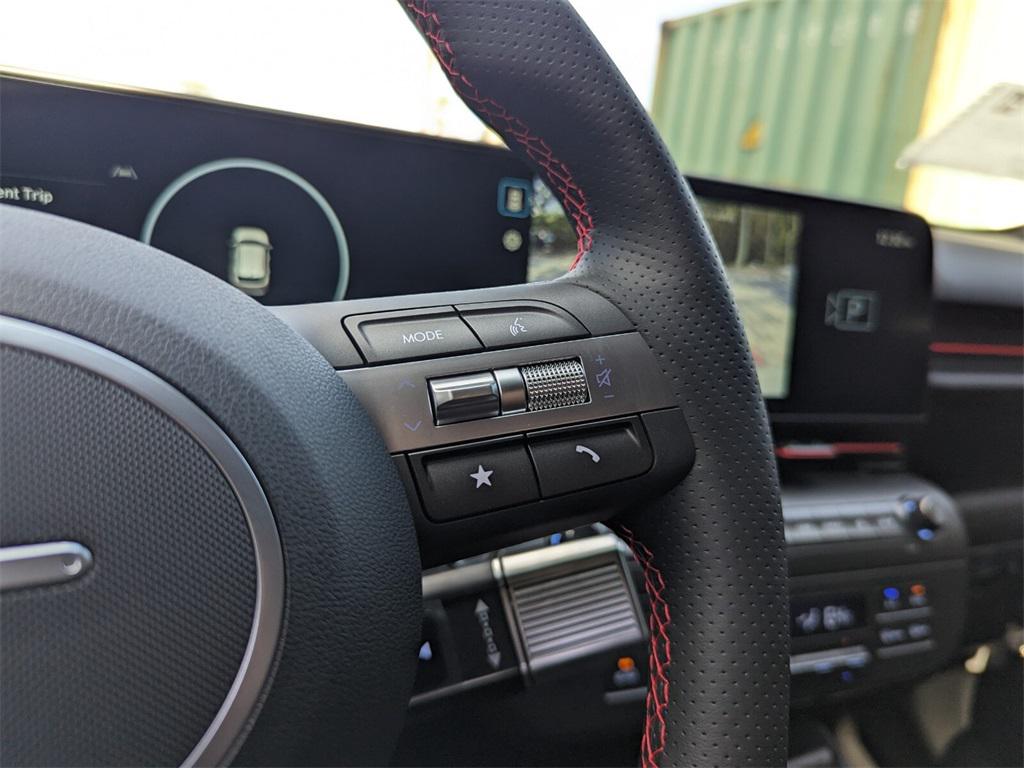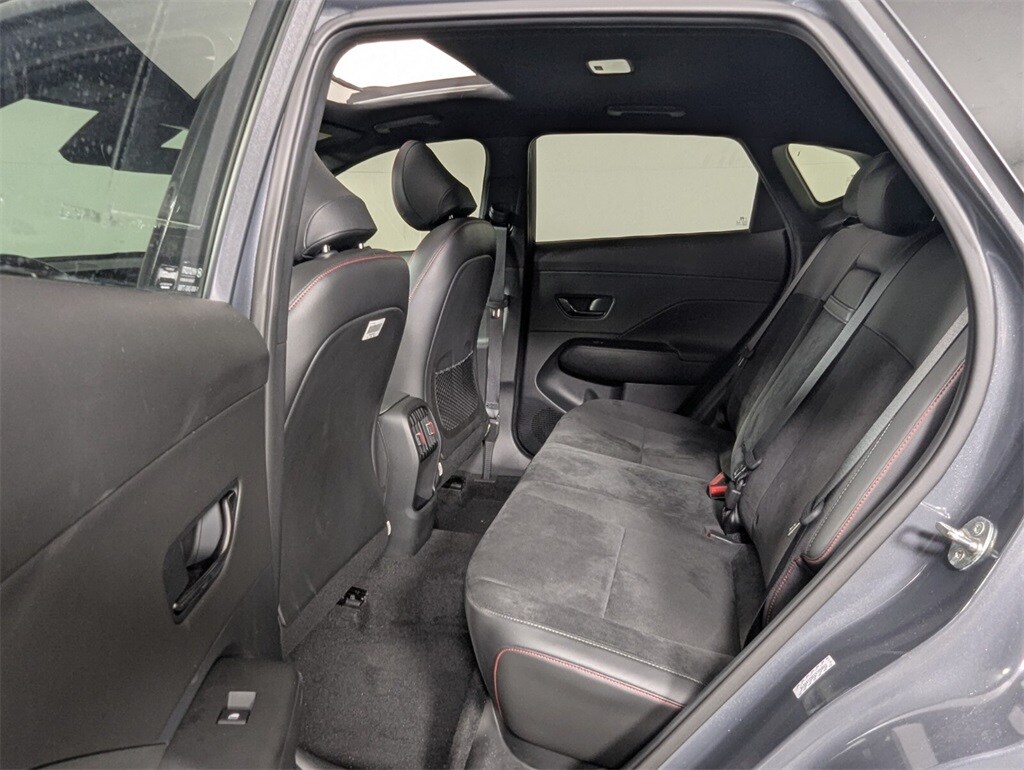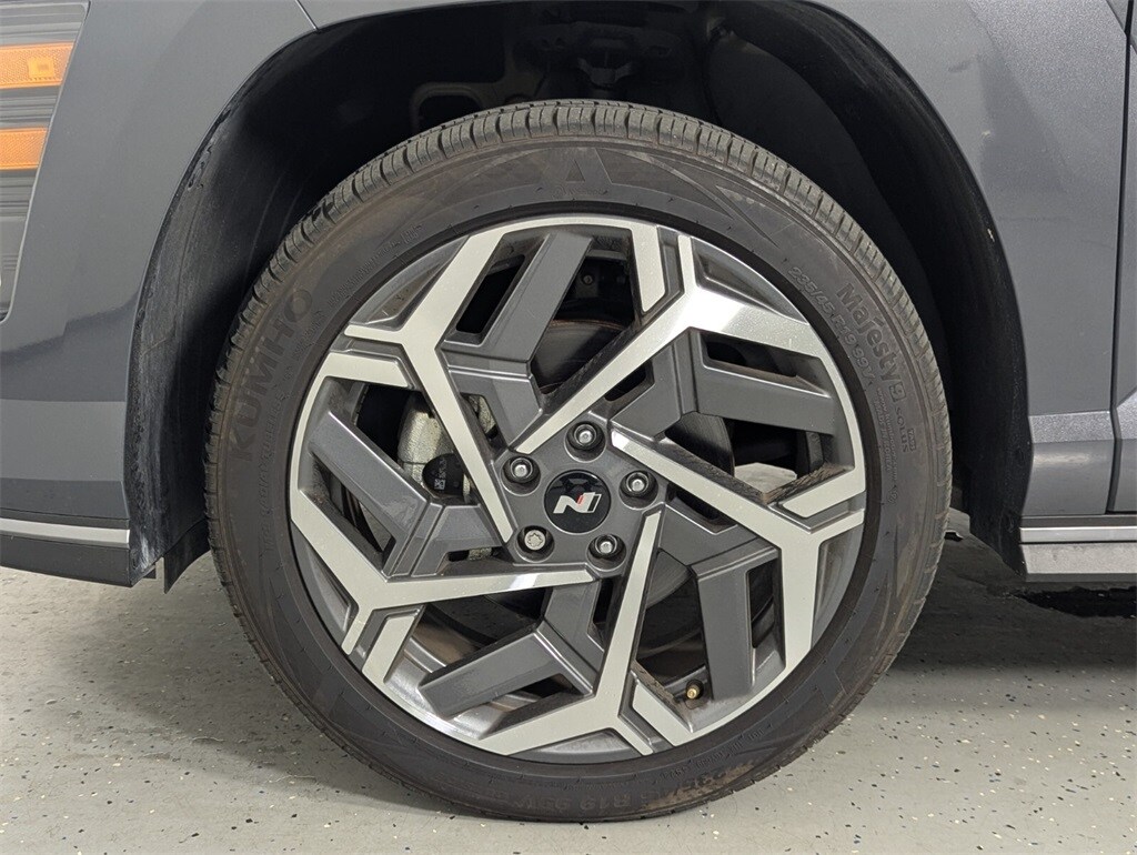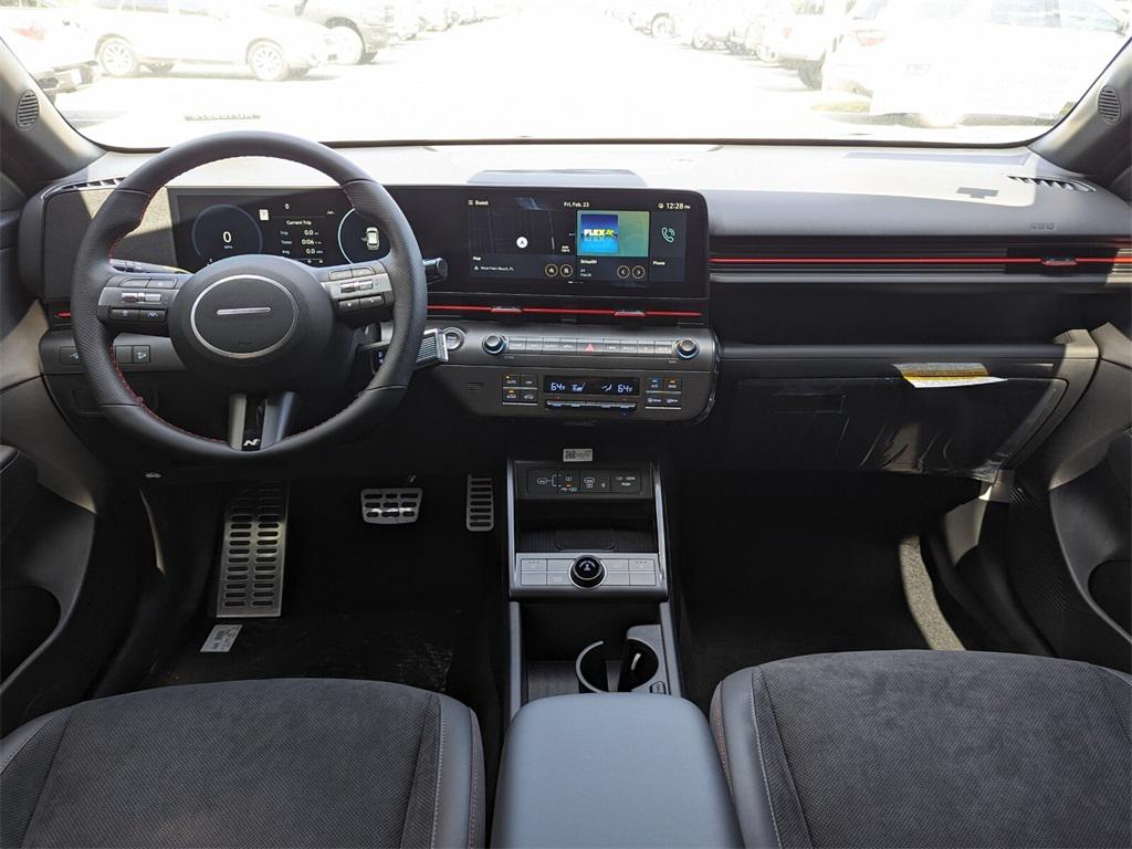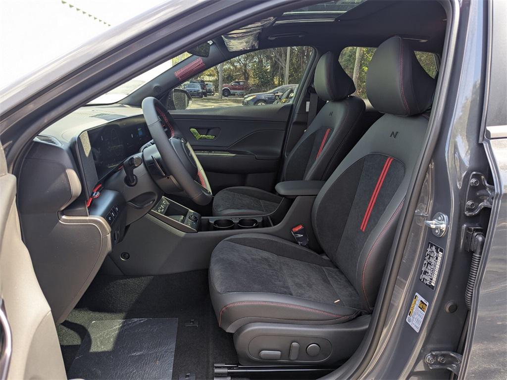 Features: Option Group 01, Kona N Line, 4D Sport Utility, I4, 8-Speed Automatic, AWD, Ecotronic Gray Pearl, Black Artificial Leather, 3.510 Axle Ratio, 4-Wheel Disc Brakes, 8 Speakers, ABS brakes, Air Conditioning, Alloy wheels, AM/FM radio: SiriusXM, Apple CarPlay & Android Auto, Auto High-beam Headlights, Auto-dimming Rear-View mirror, Automatic temperature control, Brake assist, Bumpers: body-color, Cargo Tray, Carpeted Floor Mats, Column-Mounted Shift-By-Wire, Delay-off headlights, Driver door bin, Driver vanity mirror, Dual front impact airbags, Dual front side impact airbags, Electronic Stability Control, Emergency communication system: Bluelink+, Exterior Parking Camera Rear, First Aid Kit, Four wheel independent suspension, Front anti-roll bar, Front Bucket Seats, Front Center Armrest, Front dual zone A/C, Front reading lights, Fully automatic headlights, Heated door mirrors, Heated front seats, Heated Front Sport Bucket Seats, Illuminated entry, Leather Shift Knob, Leather steering wheel, Low tire pressure warning, N-Line Alcantara Sport Combination Seat Trim, Navigation System, Occupant sensing airbag, Outside temperature display, Overhead airbag, Panic alarm, Passenger door bin, Passenger vanity mirror, Power door mirrors, Power driver seat, Power moonroof, Power steering, Power windows, Radio: AM/FM/HD Radio/SiriusXM Audio System, Rear anti-roll bar, Rear Bumper Applique, Rear seat center armrest, Rear window defroster, Rear window wiper, Remote keyless entry, Security system, Speed control, Speed-sensing steering, Split folding rear seat, Spoiler, Steering wheel mounted audio controls, Tachometer, Telescoping steering wheel, Tilt steering wheel, Traction control, Trip computer, Turn signal indicator mirrors, Variably intermittent wipers, Wheel Locks, and Wheels: 19" x 7.5J Metallic Alloy.