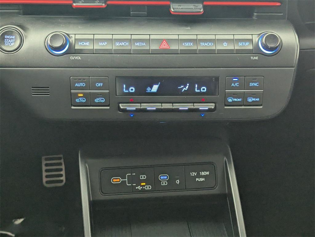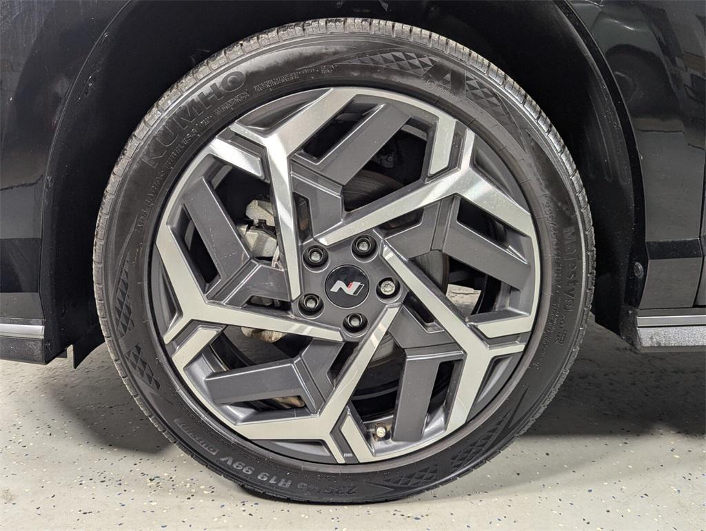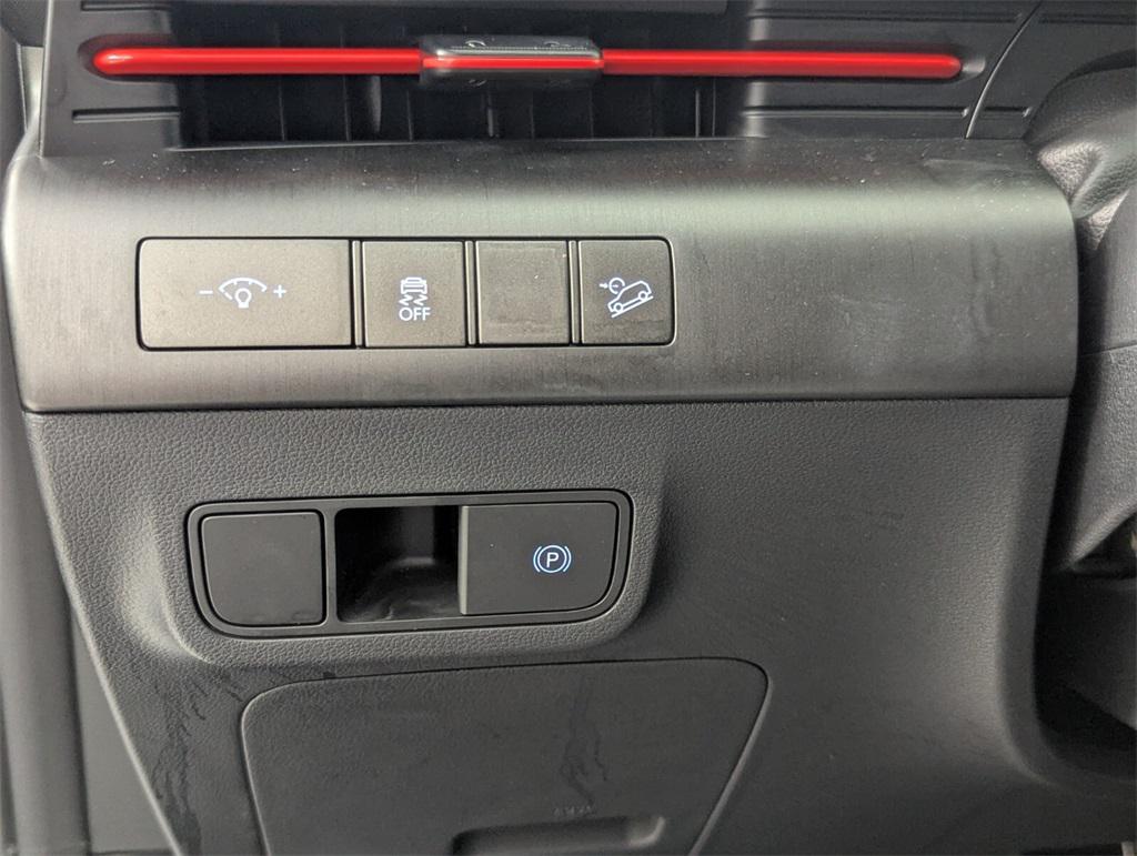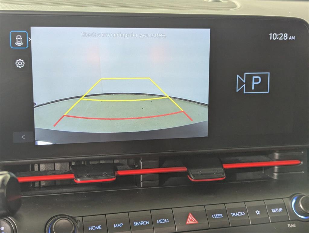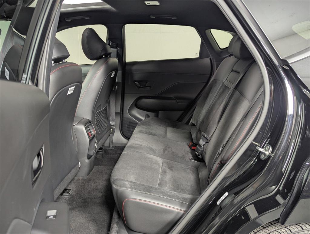 Features: Option Group 01, Kona N Line, 4D Sport Utility, I4, 8-Speed Automatic, FWD, Abyss Black Pearl, Black Artificial Leather, 3.510 Axle Ratio, 4-Wheel Disc Brakes, 8 Speakers, ABS brakes, Air Conditioning, Alloy wheels, AM/FM radio: SiriusXM, Apple CarPlay & Android Auto, Auto High-beam Headlights, Auto-dimming Rear-View mirror, Automatic temperature control, Brake assist, Bumpers: body-color, Cargo Net, Cargo Tray, Carpeted Floor Mats, Column-Mounted Shift-By-Wire, Delay-off headlights, Driver door bin, Driver vanity mirror, Dual front impact airbags, Dual front side impact airbags, Electronic Stability Control, Emergency communication system: Bluelink+, Exterior Parking Camera Rear, Front anti-roll bar, Front Bucket Seats, Front Center Armrest, Front dual zone A/C, Front reading lights, Front wheel independent suspension, Fully automatic headlights, Heated door mirrors, Heated front seats, Heated Front Sport Bucket Seats, Illuminated entry, Leather Shift Knob, Leather steering wheel, Low tire pressure warning, N-Line Alcantara Sport Combination Seat Trim, Navigation System, Occupant sensing airbag, Outside temperature display, Overhead airbag, Panic alarm, Passenger door bin, Passenger vanity mirror, Power door mirrors, Power driver seat, Power moonroof, Power steering, Power windows, Radio: AM/FM/HD Radio/SiriusXM Audio System, Rear seat center armrest, Rear window defroster, Rear window wiper, Remote keyless entry, Security system, Speed control, Speed-sensing steering, Split folding rear seat, Spoiler, Steering wheel mounted audio controls, Tachometer, Telescoping steering wheel, Tilt steering wheel, Traction control, Trip computer, Turn signal indicator mirrors, Variably intermittent wipers, Wheel Locks, and Wheels: 19" x 7.5J Metallic Alloy.