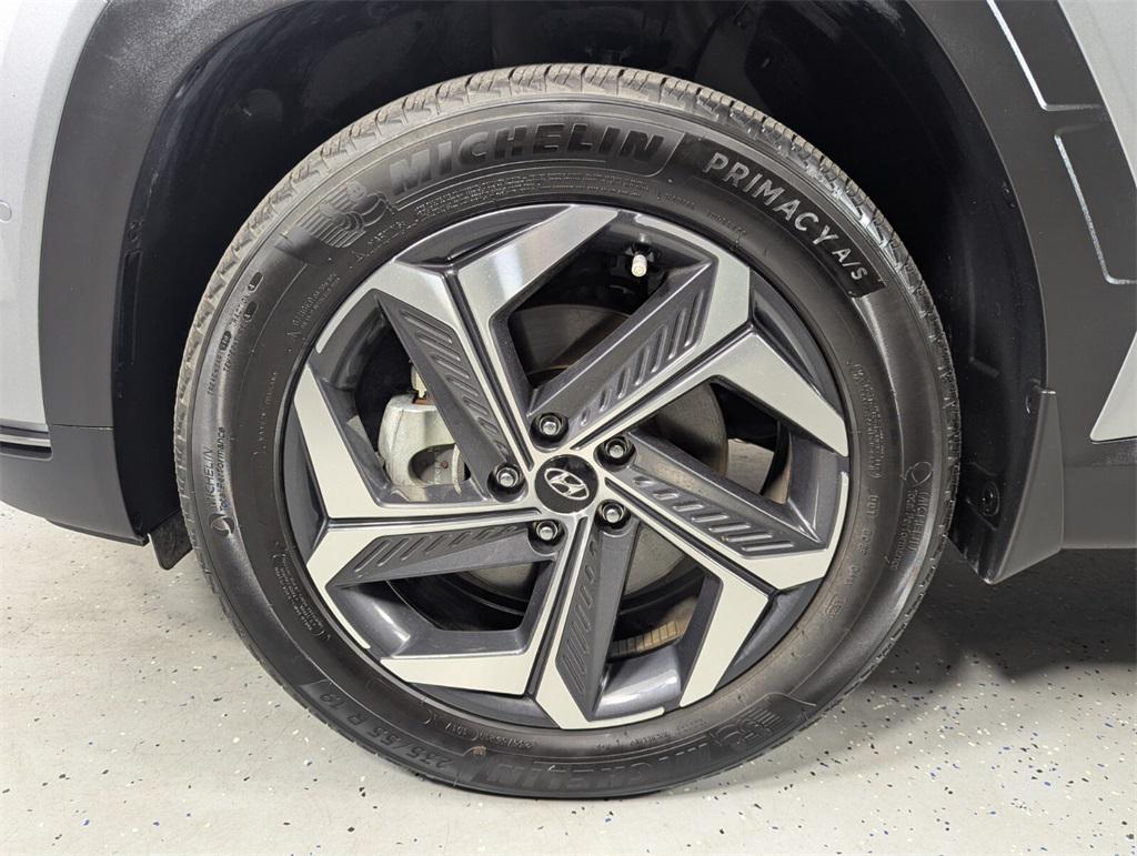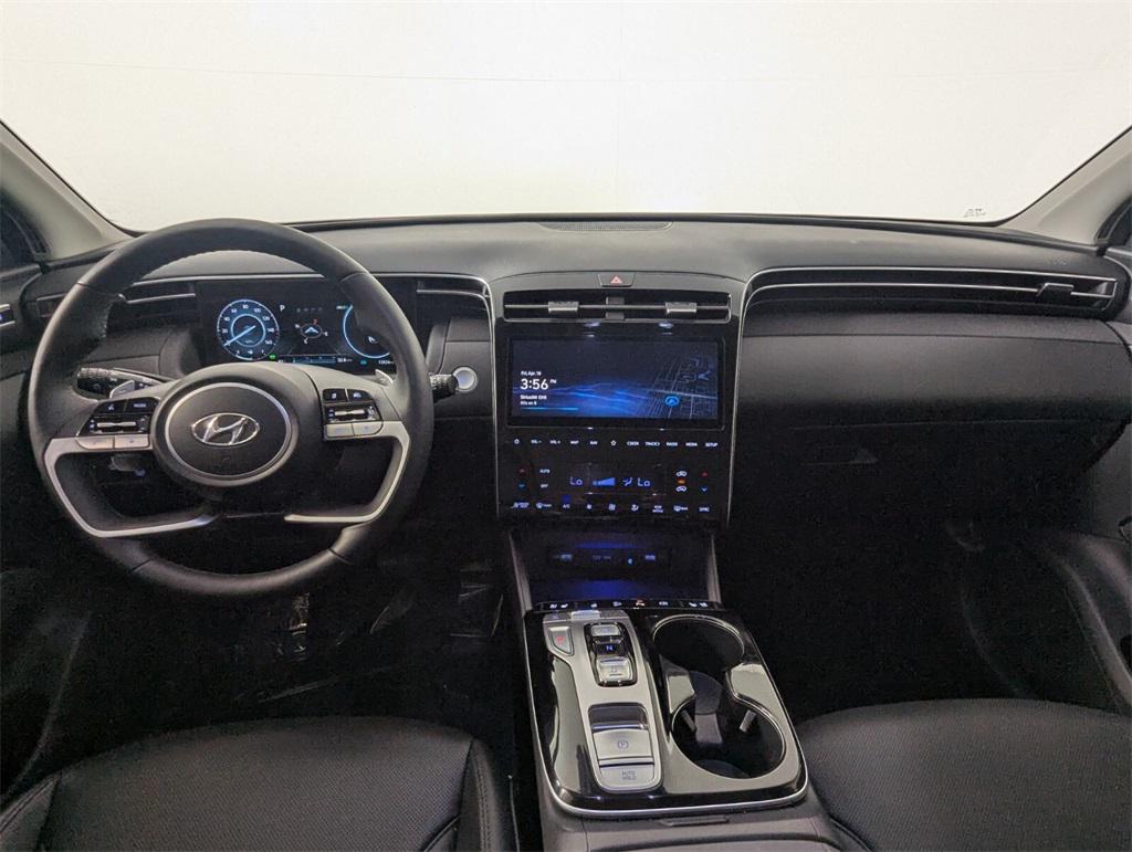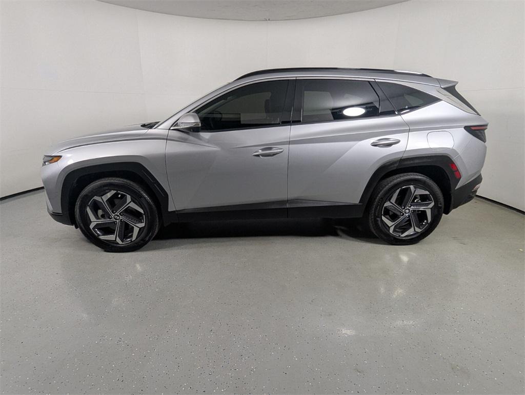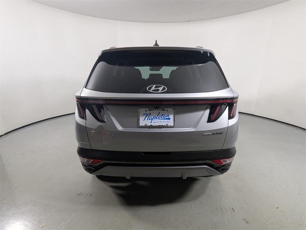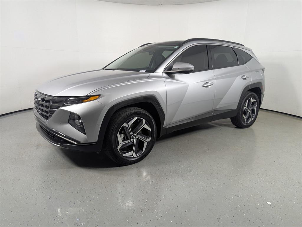 Features: Option Group 01, Tucson Hybrid Limited, 4D Sport Utility, I4, 6-Speed Automatic, AWD, Shimmering Silver, Black Leather, 3.32 Axle Ratio, 4-Wheel Disc Brakes, 8 Speakers, ABS brakes, Air Conditioning, Alloy wheels, AM/FM radio: SiriusXM, Apple CarPlay & Android Auto, Auto High-beam Headlights, Auto-dimming Rear-View mirror, Automatic temperature control, Brake assist, Bumpers: body-color, Cargo Cover, Cargo Net, Cargo Tray, Carpeted Floor Mats, Delay-off headlights, Driver door bin, Driver vanity mirror, Dual front impact airbags, Dual front side impact airbags, Electronic Stability Control, Emergency communication system, Exterior Parking Camera Rear, First Aid Kit, Four wheel independent suspension, Front and Rear Mudguards, Front anti-roll bar, Front Bucket Seats, Front Center Armrest, Front dual zone A/C, Front reading lights, Fully automatic headlights, Garage door transmitter: HomeLink, Heated & Ventilated Front Bucket Seats, Heated door mirrors, Heated front seats, Heated rear seats, Heated steering wheel, Illuminated entry, Leather Seat Trim, Low tire pressure warning, Memory seat, Navigation System, Occupant sensing airbag, Outside temperature display, Overhead airbag, Overhead console, Panic alarm, Passenger door bin, Passenger vanity mirror, Power door mirrors, Power driver seat, Power Liftgate, Power moonroof, Power passenger seat, Power steering, Power windows, Radio data system, Radio: Bose Premium w/AM/FM/HD Audio System, Rain sensing wipers, Rear anti-roll bar, Rear reading lights, Rear seat center armrest, Rear side impact airbag, Rear window defroster, Rear window wiper, Remote keyless entry, Security system, Speed control, Split folding rear seat, Spoiler, Steering wheel mounted audio controls, Tachometer, Telescoping steering wheel, Tilt steering wheel, Traction control, Trip computer, Turn signal indicator mirrors, Variably intermittent wipers, Ventilated front seats, and Wheels: 19" x 7.5J" Machine-Face Finish Alloy.