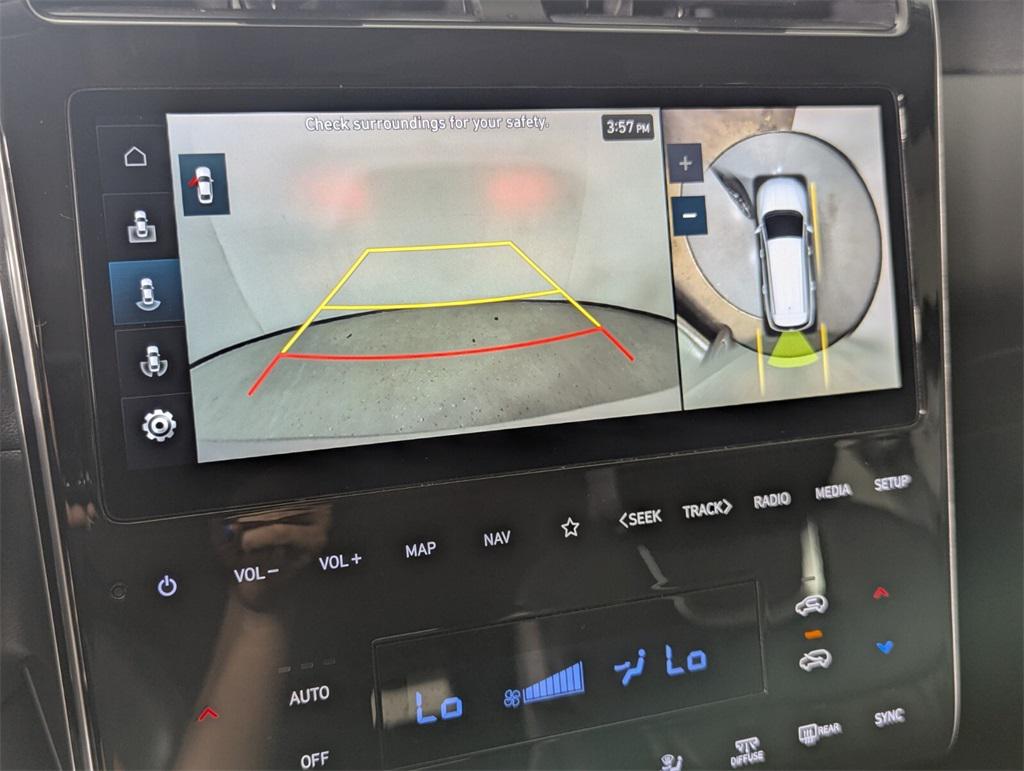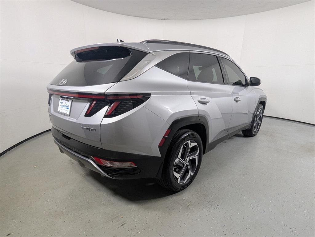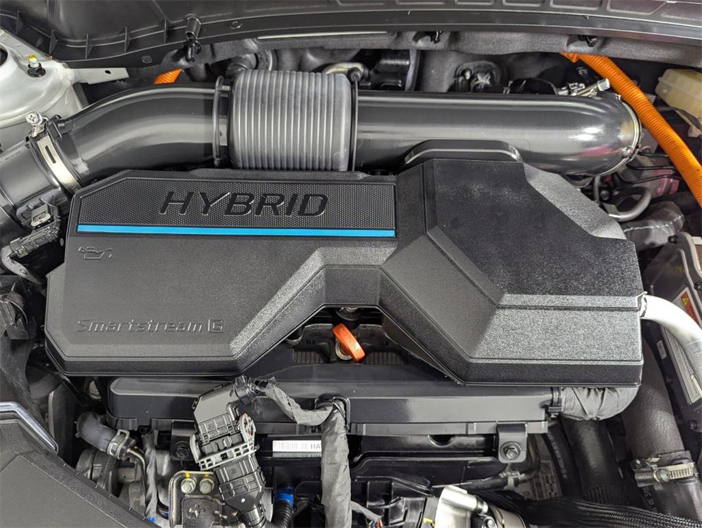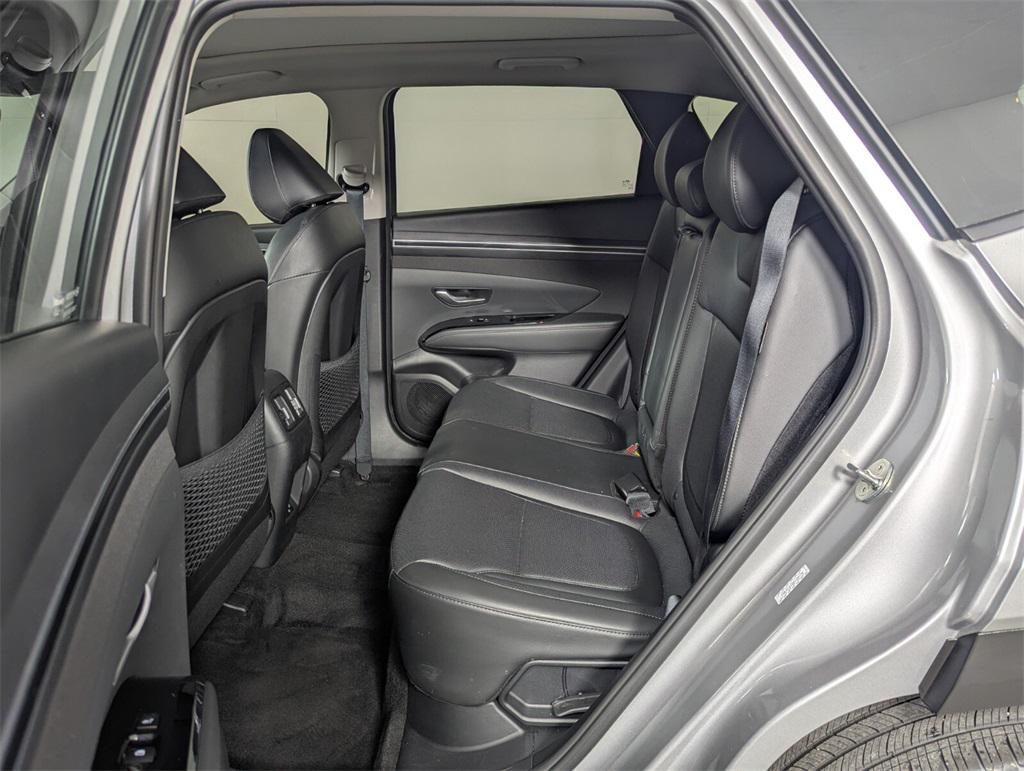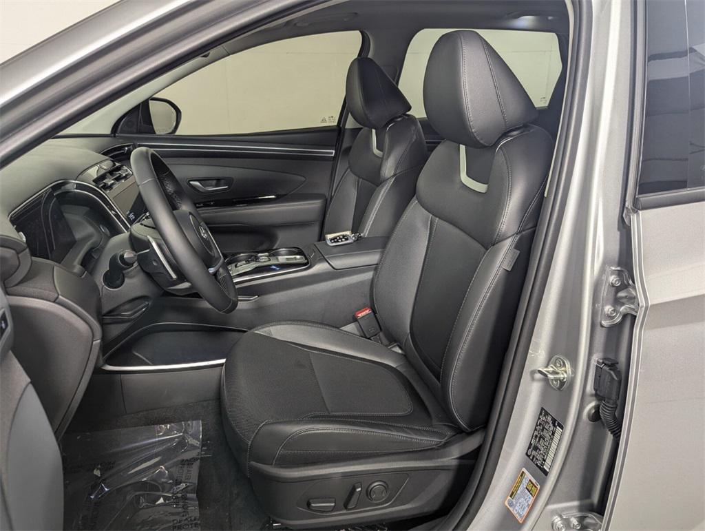 Features: Option Group 01, Tucson Hybrid Limited, 4D Sport Utility, I4, 6-Speed Automatic, AWD, Shimmering Silver, Black Leather, 3.32 Axle Ratio, 4-Wheel Disc Brakes, 8 Speakers, ABS brakes, Air Conditioning, Alloy wheels, AM/FM radio: SiriusXM, Apple CarPlay & Android Auto, Auto High-beam Headlights, Auto-dimming Rear-View mirror, Automatic temperature control, Brake assist, Bumpers: body-color, Cargo Cover, Cargo Net, Cargo Tray, Carpeted Floor Mats, Delay-off headlights, Driver door bin, Driver vanity mirror, Dual front impact airbags, Dual front side impact airbags, Electronic Stability Control, Emergency communication system, Exterior Parking Camera Rear, First Aid Kit, Four wheel independent suspension, Front and Rear Mudguards, Front anti-roll bar, Front Bucket Seats, Front Center Armrest, Front dual zone A/C, Front reading lights, Fully automatic headlights, Garage door transmitter: HomeLink, Heated & Ventilated Front Bucket Seats, Heated door mirrors, Heated front seats, Heated rear seats, Heated steering wheel, Illuminated entry, Leather Seat Trim, Low tire pressure warning, Memory seat, Navigation System, Occupant sensing airbag, Outside temperature display, Overhead airbag, Overhead console, Panic alarm, Passenger door bin, Passenger vanity mirror, Power door mirrors, Power driver seat, Power Liftgate, Power moonroof, Power passenger seat, Power steering, Power windows, Radio data system, Radio: Bose Premium w/AM/FM/HD Audio System, Rain sensing wipers, Rear anti-roll bar, Rear reading lights, Rear seat center armrest, Rear side impact airbag, Rear window defroster, Rear window wiper, Remote keyless entry, Security system, Speed control, Split folding rear seat, Spoiler, Steering wheel mounted audio controls, Tachometer, Telescoping steering wheel, Tilt steering wheel, Traction control, Trip computer, Turn signal indicator mirrors, Variably intermittent wipers, Ventilated front seats, and Wheels: 19" x 7.5J" Machine-Face Finish Alloy.
