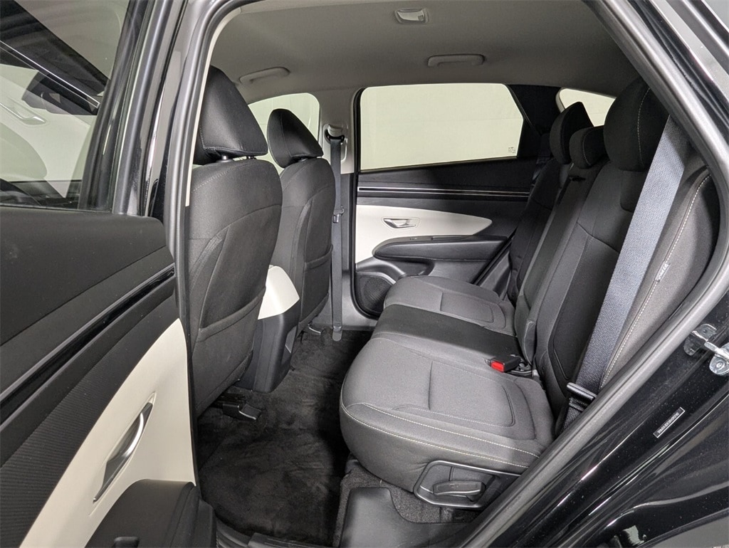 2024 Hyundai Tucson SE Beautifully finished in Black Pearl with Gray Cloth interior. 2.5L I4 DGI DOHC 16V LEV3-SULEV30 187hp 4D Sport Utility FWD 8-Speed Automatic with SHIFTRONIC **ONE OWNER**, **LOCAL TRADE**, **CLEAN CARFAX**, **MUST SEE TO APPRECIATE**, **EXTRA CLEAN**, 3.648 Axle Ratio, 4-Wheel Disc Brakes, 6 Speakers, ABS brakes, Air Conditioning, All Season Fitted Liners, Alloy wheels, AM/FM radio, Apple CarPlay & Android Auto, Auto High-beam Headlights, Brake assist, Bumpers: body-color, Cargo Net, Carpeted Floor Mats, Delay-off headlights, Driver door bin, Driver vanity mirror, Dual front impact airbags, Dual front side impact airbags, Electronic Stability Control, Exterior Parking Camera Rear, Four wheel independent suspension, Front anti-roll bar, Front Bucket Seats, Front Center Armrest, Front reading lights, Fully automatic headlights, Illuminated entry, Low tire pressure warning, Occupant sensing airbag, Option Group 01, Outside temperature display, Overhead airbag, Overhead console, Panic alarm, Passenger door bin, Passenger vanity mirror, Power door mirrors, Power steering, Power windows, Radio data system, Radio: AM/FM/HD Audio System, Rear anti-roll bar, Rear seat center armrest, Rear side impact airbag, Rear window defroster, Rear window wiper, Remote keyless entry, Roadside Assistance Kit, Security system, Speed control, Split folding rear seat, Spoiler, Stain & Odor Resistant Cloth Seat Trim, Steering wheel mounted audio controls, Tachometer, Telescoping steering wheel, Tilt steering wheel, Traction control, Trip computer, Variably intermittent wipers, Wheel Locks, Wheels: 17" x 7.0J" Alloy. CARFAX One-Owner. Clean CARFAX. 25/32 City/Highway MPG