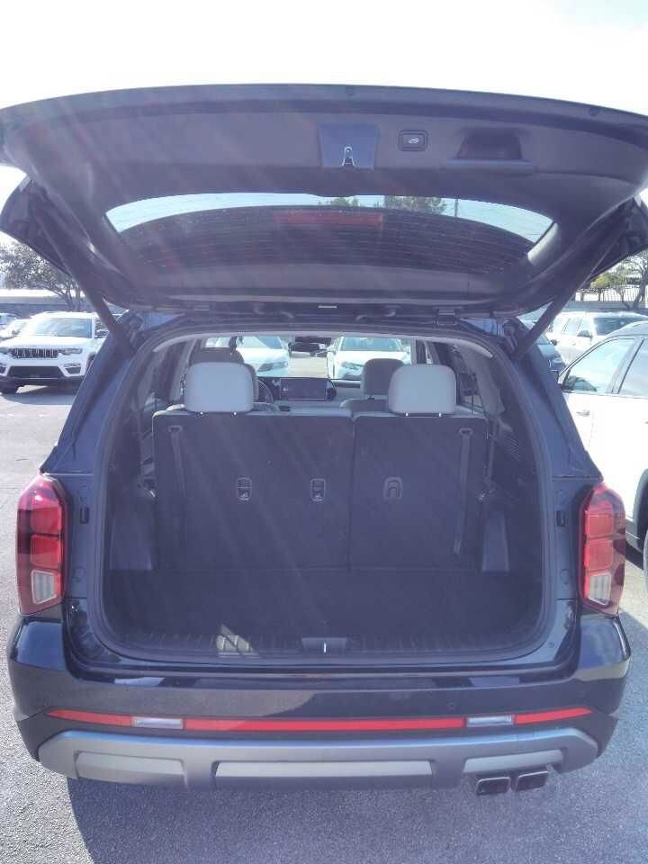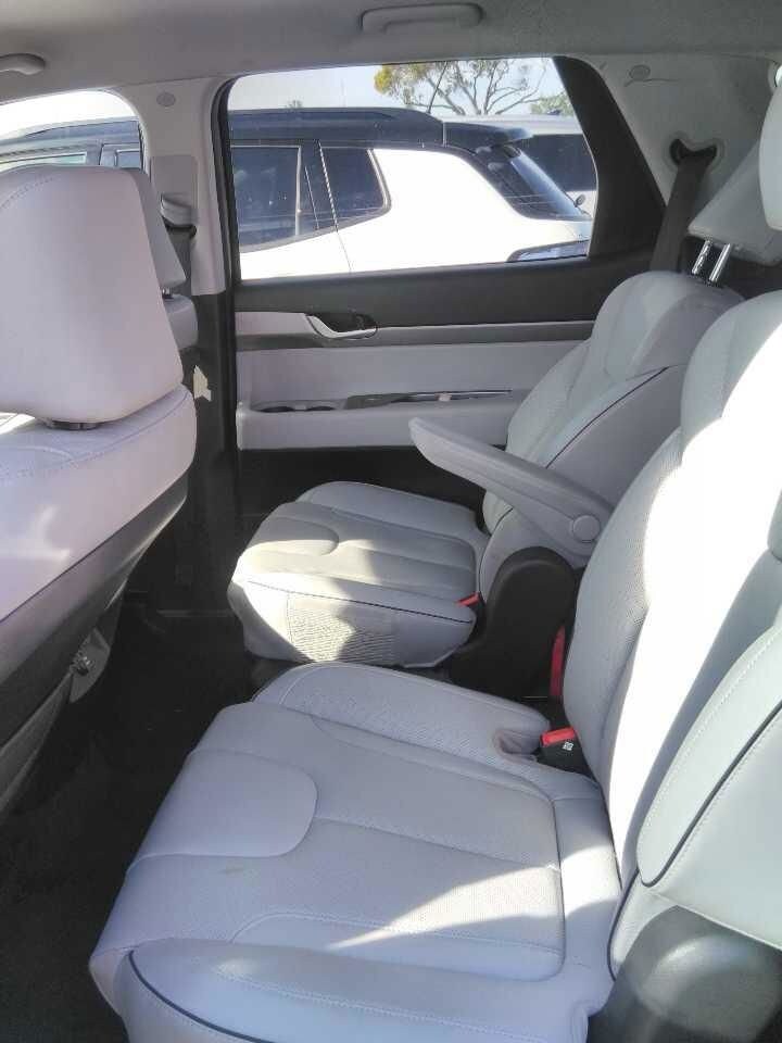 This Palisade is well equipped with 3rd row seats: split-bench, 4-Wheel Disc Brakes, 6 Speakers, ABS brakes, Air Conditioning, Alloy wheels, AM/FM radio: SiriusXM, Apple CarPlay & Android Auto, Auto High-beam Headlights, Auto-dimming Rear-View mirror, Automatic temperature control, Brake assist, Bumpers: body-color, Delay-off headlights, Driver door bin, Driver vanity mirror, Dual front impact airbags, Dual front side impact airbags, Electronic Stability Control, Emergency communication system, Exterior Parking Camera Rear, Four wheel independent suspension, Front anti-roll bar, Front Bucket Seats, Front Center Armrest, Front dual zone A/C, Front reading lights, Fully automatic headlights, H-Tex Leatherette Seat Trim, Heated door mirrors, Heated Front Bucket Seats, Heated front seats, Illuminated entry, Knee airbag, Leather steering wheel, Low tire pressure warning, Navigation System/ GPS, Occupant sensing airbag, Outside temperature display, Overhead airbag, Overhead console, Panic alarm, Passenger door bin, Passenger vanity mirror, Power door mirrors, Power driver seat, Power Liftgate, Power passenger seat, Power steering, Power windows, Radio data system, Radio: AM/FM/MP3 Audio System, Rear air conditioning, Rear anti-roll bar, Rear audio controls, Rear reading lights, Rear side impact airbag, Rear window defroster, Rear window wiper, Reclining 3rd row seat, Remote keyless entry, Security system, Speed control, Speed-sensing steering, Split folding rear seat, Spoiler, Steering wheel mounted audio controls, Tachometer, Telescoping steering wheel, Tilt steering wheel, Traction control, Trip computer, Turn signal indicator mirrors, Variably intermittent wipers, and Wheels: 18" x 7.5J Painted Finish Alloy.