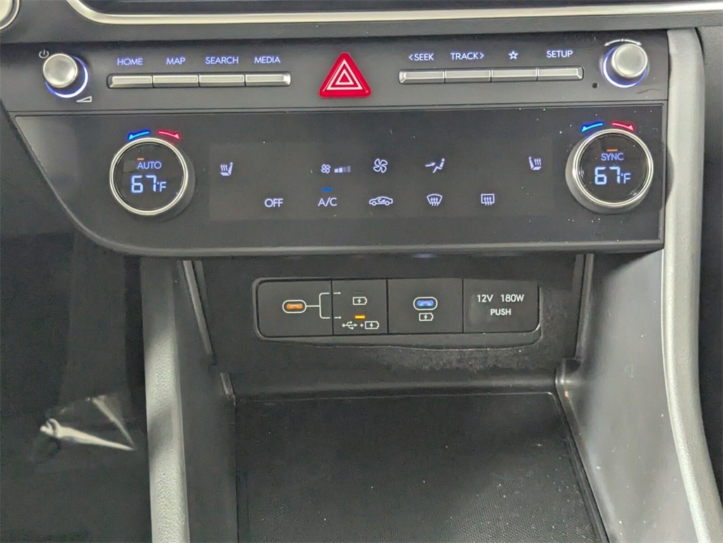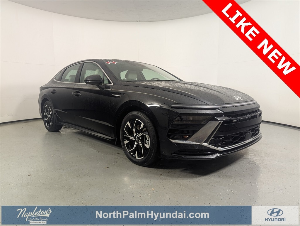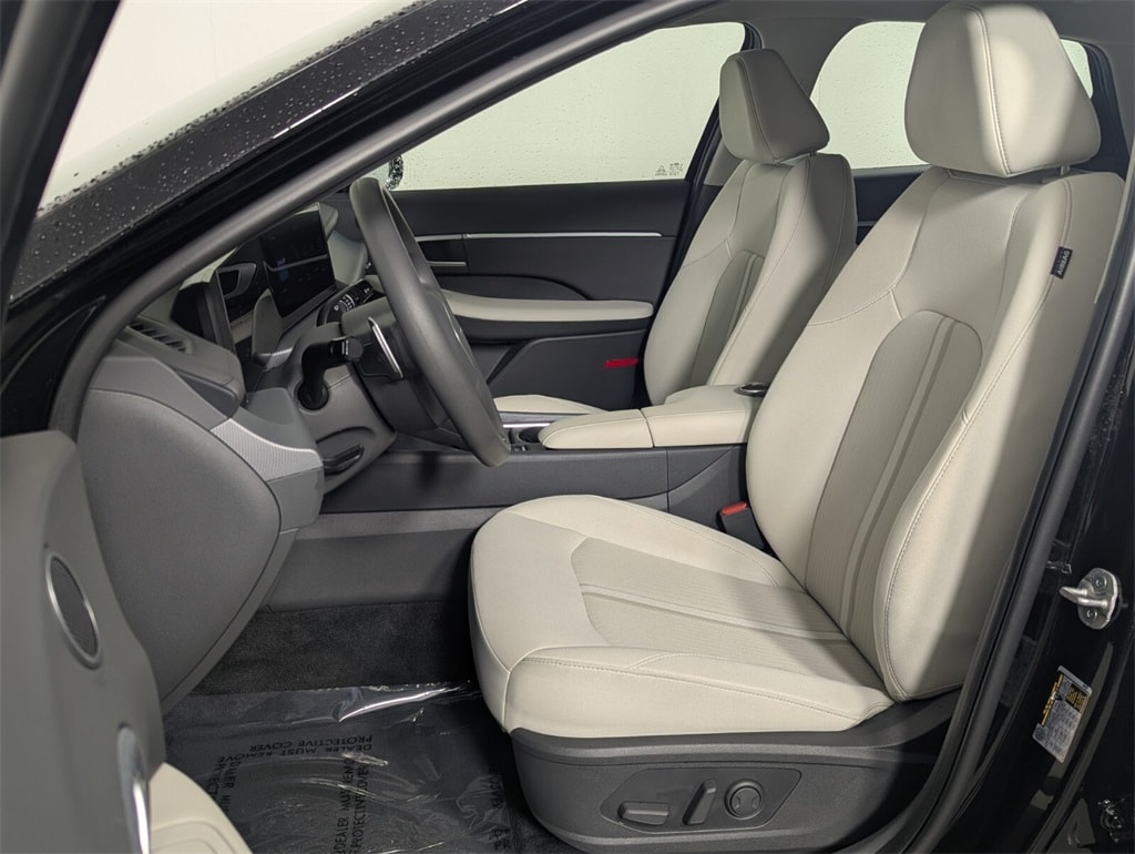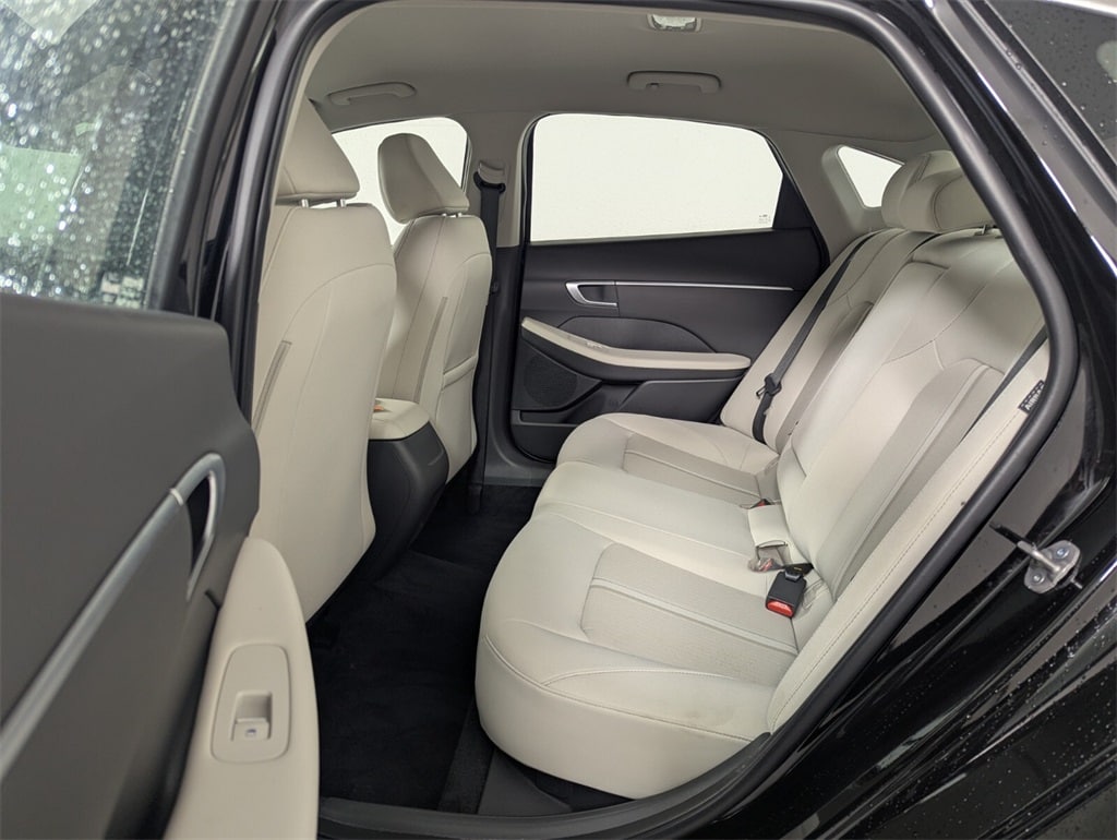 Features: Option Group 01, Sonata SEL, 4D Sedan, I4, 8-Speed Automatic, FWD, Abyss Black, Gray Cloth, 17" x 7.0J Aluminum Alloy Wheels, 4-Wheel Disc Brakes, 6 Speakers, ABS brakes, Air Conditioning, Alloy wheels, AM/FM radio: SiriusXM, Apple CarPlay & Android Auto, Auto High-beam Headlights, Automatic temperature control, Brake assist, Bumpers: body-color, Cargo Net, Cargo Tray, Carpeted Floor Mats, Cloth Seating Surfaces, Delay-off headlights, Driver door bin, Driver vanity mirror, Dual front impact airbags, Dual front side impact airbags, Electronic Stability Control, Emergency communication system: Bluelink+, Exterior Parking Camera Rear, First Aid Kit, Four wheel independent suspension, Front anti-roll bar, Front Bucket Seats, Front Center Armrest, Front dual zone A/C, Front reading lights, Fully automatic headlights, Heated door mirrors, Heated Front Bucket Seats, Heated front seats, Illuminated entry, Knee airbag, Low tire pressure warning, Mud Guards, Occupant sensing airbag, Outside temperature display, Overhead airbag, Overhead console, Panic alarm, Passenger door bin, Passenger vanity mirror, Power door mirrors, Power driver seat, Power steering, Power windows, Radio data system, Radio: AM/FM/HD/SiriusXM, Rear anti-roll bar, Rear seat center armrest, Rear side impact airbag, Rear window defroster, Remote keyless entry, Security system, Speed control, Speed-sensing steering, Speed-Sensitive Wipers, Split folding rear seat, Steering wheel mounted audio controls, Tachometer, Telescoping steering wheel, Tilt steering wheel, Traction control, Trip computer, Variably intermittent wipers, and Wheel Locks.