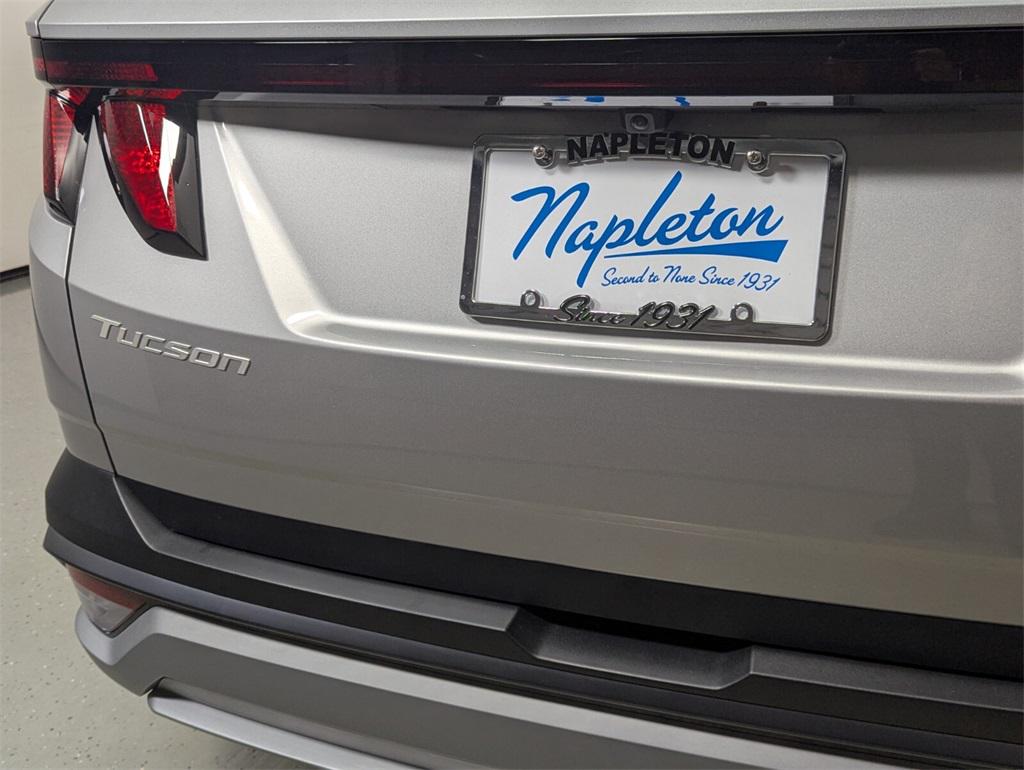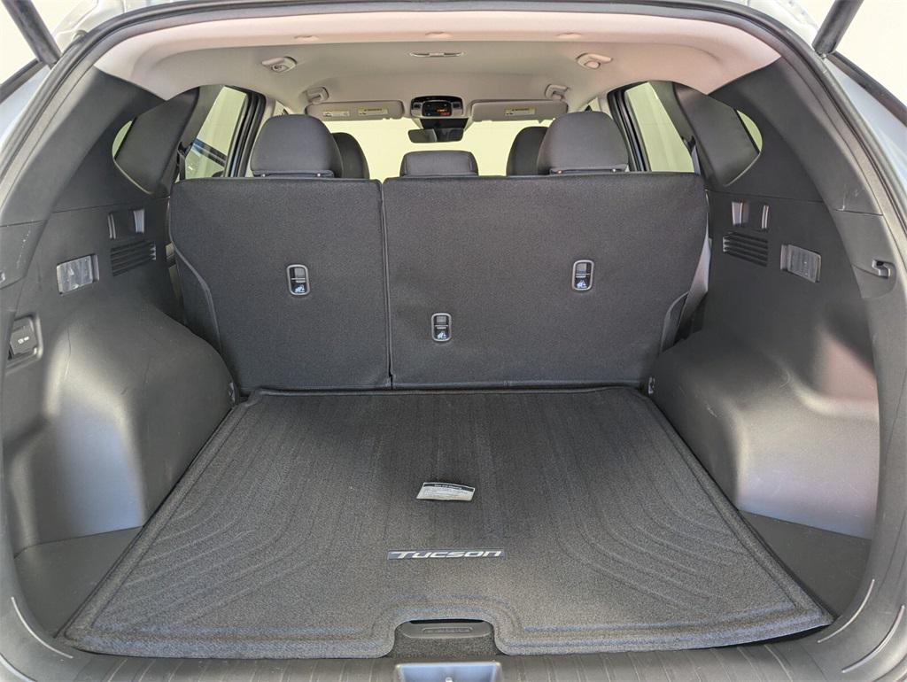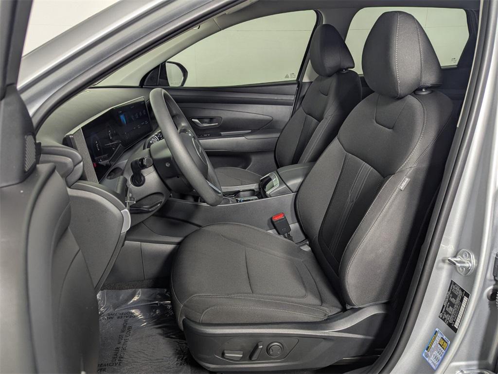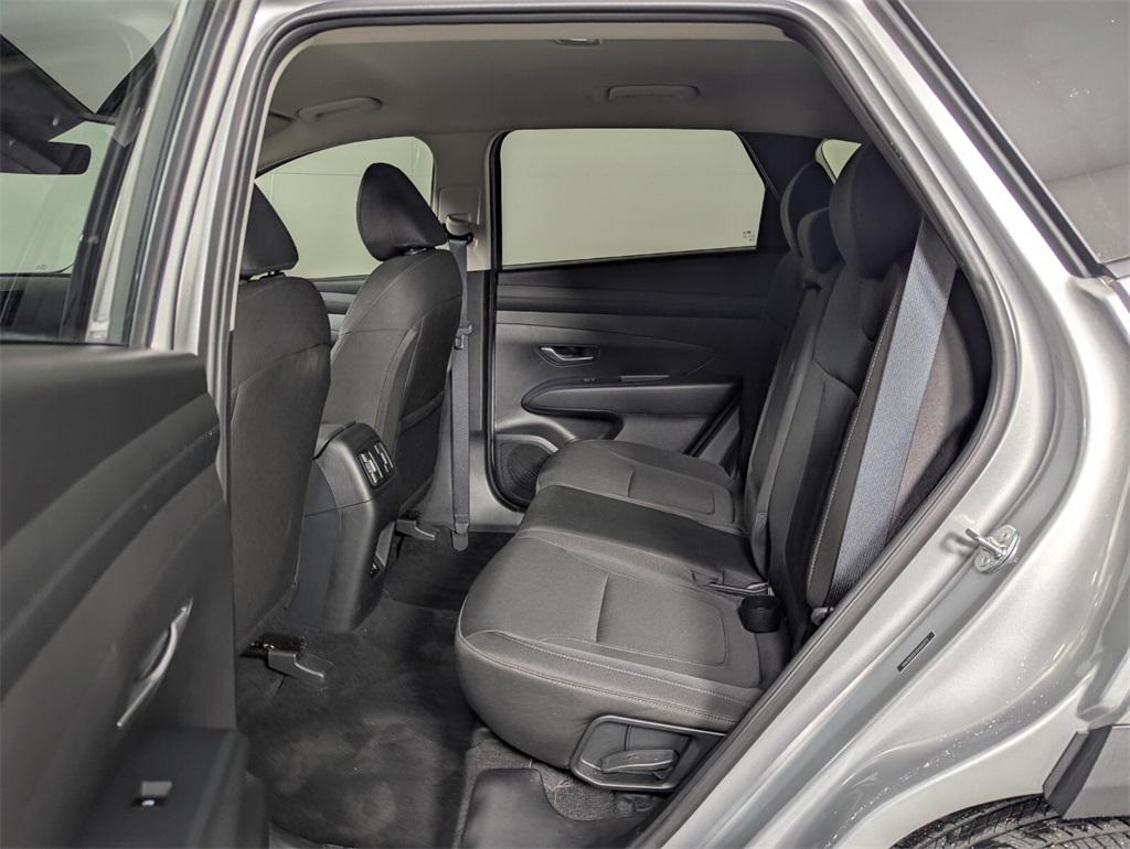 Features: Option Group 01, Tucson SEL, 4D Sport Utility, 2.5L I4 DGI DOHC 16V LEV3-SULEV30 187hp, 8-Speed Automatic with SHIFTRONIC, FWD, Shimmering Silver, Black Cloth, 18" Alloy Wheels, 4-Wheel Disc Brakes, 6 Speakers, ABS brakes, Air Conditioning, Alloy wheels, AM/FM radio: SiriusXM, Apple CarPlay & Android Auto, Auto High-beam Headlights, Automatic temperature control, Brake assist, Bumpers: body-color, Cargo Organizer, Cargo Tray, Carpeted Floor Mats, Delay-off headlights, Driver door bin, Driver vanity mirror, Dual front impact airbags, Dual front side impact airbags, Electronic Stability Control, Emergency communication system: Bluelink+, First Aid Kit, Four wheel independent suspension, Front anti-roll bar, Front Bucket Seats, Front Center Armrest, Front dual zone A/C, Front reading lights, Fully automatic headlights, Heated door mirrors, Heated Front Bucket Seats, Heated front seats, Illuminated entry, Low tire pressure warning, Occupant sensing airbag, Outside temperature display, Overhead airbag, Overhead console, Panic alarm, Passenger door bin, Passenger vanity mirror, Power door mirrors, Power driver seat, Power Liftgate, Power steering, Power windows, Radio data system, Radio: AM/FM/HD Audio System, Rear anti-roll bar, Rear reading lights, Rear seat center armrest, Rear side impact airbag, Rear window defroster, Rear window wiper, Remote keyless entry, Roadside Assistance Kit, Security system, Speed control, Split folding rear seat, Spoiler, Stain & Odor Resistant Cloth Seat Trim, Steering wheel mounted audio controls, Tachometer, Telescoping steering wheel, Tilt steering wheel, Traction control, Trip computer, Variably intermittent wipers, and Wheel Locks.