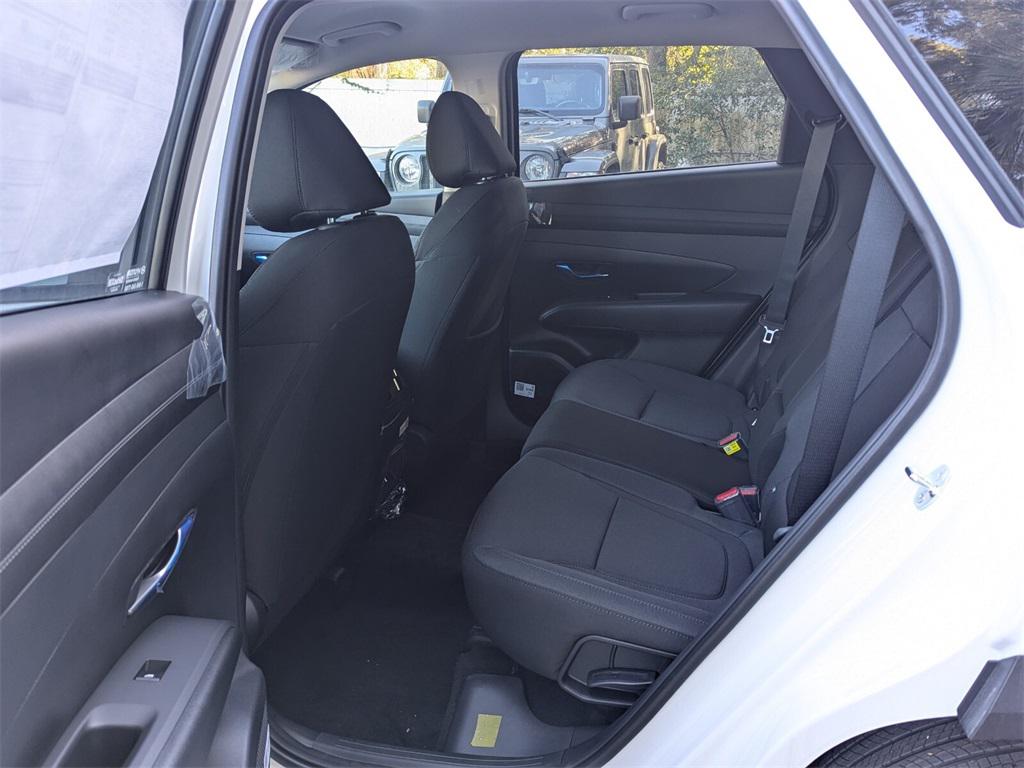 Features: Option Group 01, Tucson SEL, 4D Sport Utility, 2.5L I4 DGI DOHC 16V LEV3-SULEV30 187hp, 8-Speed Automatic with SHIFTRONIC, FWD, White Pearl, Black Cloth, 18" Alloy Wheels, 4-Wheel Disc Brakes, 6 Speakers, ABS brakes, Air Conditioning, Alloy wheels, AM/FM radio: SiriusXM, Apple CarPlay & Android Auto, Auto High-beam Headlights, Automatic temperature control, Brake assist, Bumpers: body-color, Cargo Net, Cargo Tray, Carpeted Floor Mats, Delay-off headlights, Driver door bin, Driver vanity mirror, Dual front impact airbags, Dual front side impact airbags, Electronic Stability Control, Emergency communication system: Bluelink+, First Aid Kit, Four wheel independent suspension, Front anti-roll bar, Front Bucket Seats, Front Center Armrest, Front dual zone A/C, Front reading lights, Fully automatic headlights, Heated door mirrors, Heated Front Bucket Seats, Heated front seats, Illuminated entry, Low tire pressure warning, Occupant sensing airbag, Outside temperature display, Overhead airbag, Overhead console, Panic alarm, Passenger door bin, Passenger vanity mirror, Power door mirrors, Power driver seat, Power Liftgate, Power steering, Power windows, Radio data system, Radio: AM/FM/HD Audio System, Rear anti-roll bar, Rear reading lights, Rear seat center armrest, Rear side impact airbag, Rear window defroster, Rear window wiper, Remote keyless entry, Security system, Speed control, Split folding rear seat, Spoiler, Stain & Odor Resistant Cloth Seat Trim, Steering wheel mounted audio controls, Tachometer, Telescoping steering wheel, Tilt steering wheel, Traction control, Trip computer, and Variably intermittent wipers.