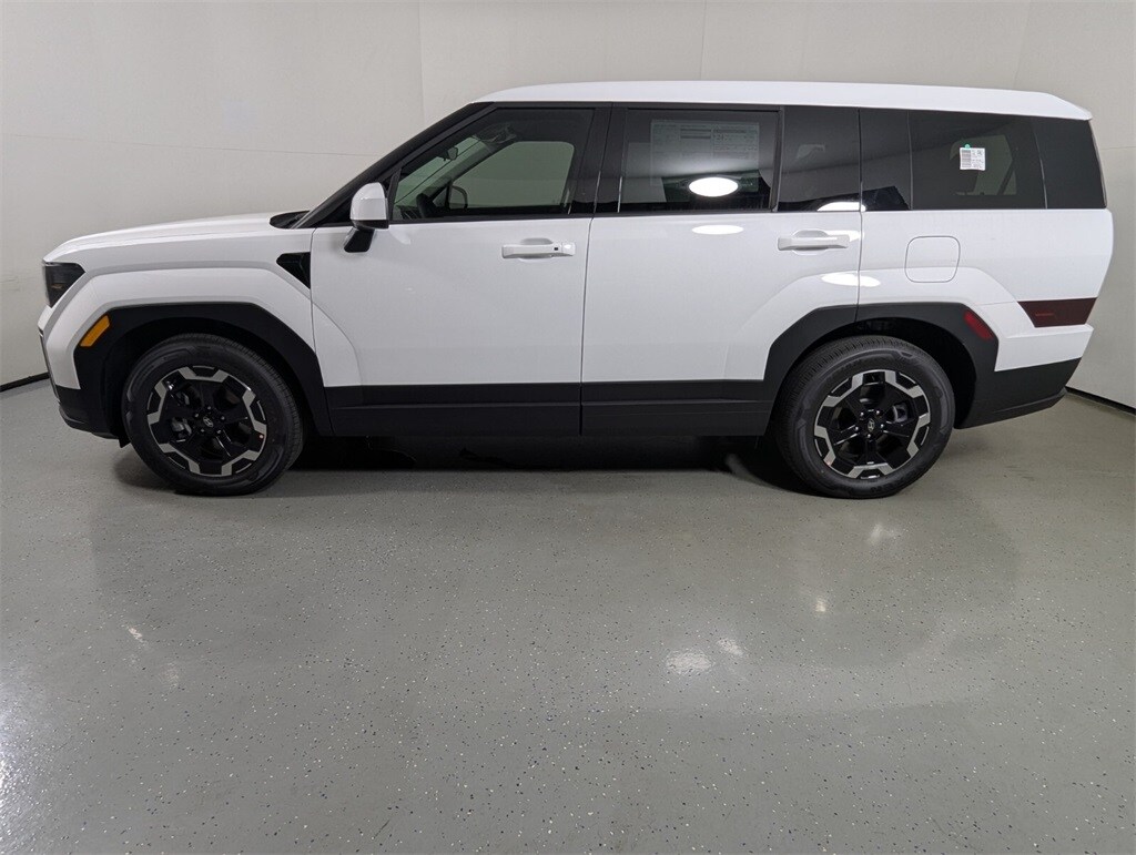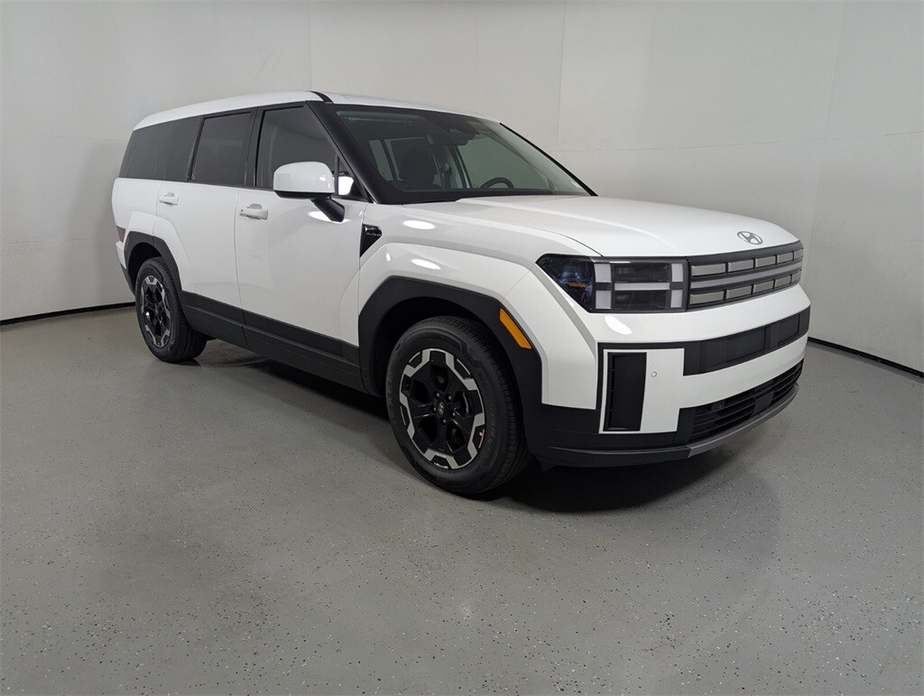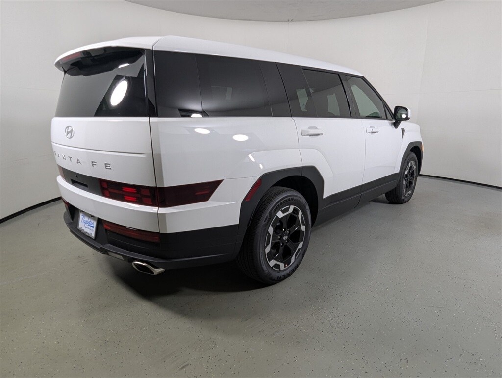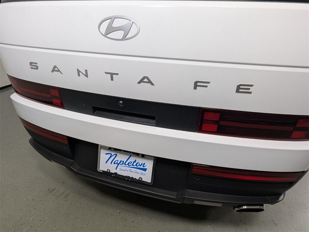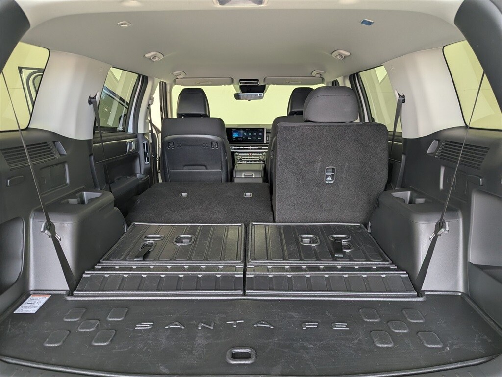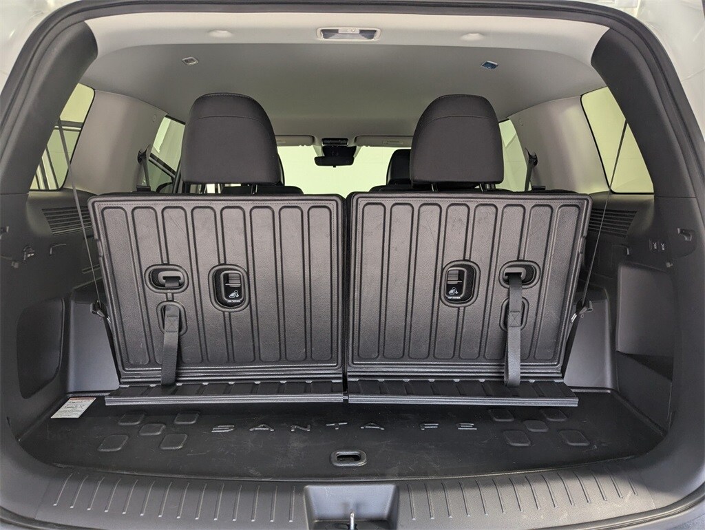 Features: Option Group 01, Santa Fe SE, 4D Sport Utility, 2.5L I4, 8-Speed Automatic with SHIFTRONIC, FWD, Serenity White, Black Cloth, 18" x 7.5J Alloy Wheels, 3rd row seats: bench, 4-Wheel Disc Brakes, 6 Speakers, ABS brakes, Air Conditioning, All Season Fitted Liners, Alloy wheels, AM/FM radio: SiriusXM, Apple CarPlay & Android Auto, Auto High-beam Headlights, Brake assist, Bumpers: body-color, Cargo Cover/Screen, Cargo Net, Cargo Tray, Carpeted Floor Mats, Delay-off headlights, Driver door bin, Driver vanity mirror, Dual front impact airbags, Dual front side impact airbags, Electronic Stability Control, Emergency communication system, Exterior Parking Camera Rear, First Aid Kit, Four wheel independent suspension, Front anti-roll bar, Front Bucket Seats, Front Center Armrest, Front reading lights, Fully automatic headlights, Heated door mirrors, Illuminated entry, Knee airbag, Leather steering wheel, Low tire pressure warning, Occupant sensing airbag, Outside temperature display, Overhead airbag, Overhead console, Panic alarm, Passenger door bin, Passenger vanity mirror, Power door mirrors, Power Liftgate, Power steering, Power windows, Radio: AM/FM/HD Display Audio, Rear anti-roll bar, Rear seat center armrest, Rear side impact airbag, Rear window defroster, Rear window wiper, Remote keyless entry, Roadside Assistance Kit, Security system, Speed control, Speed-sensing steering, Split folding rear seat, Spoiler, Steering wheel mounted audio controls, Tachometer, Telescoping steering wheel, Tilt steering wheel, Traction control, Trip computer, Variably intermittent wipers, and YES Essentials Stain-Resistant Cloth Seat Trim.
