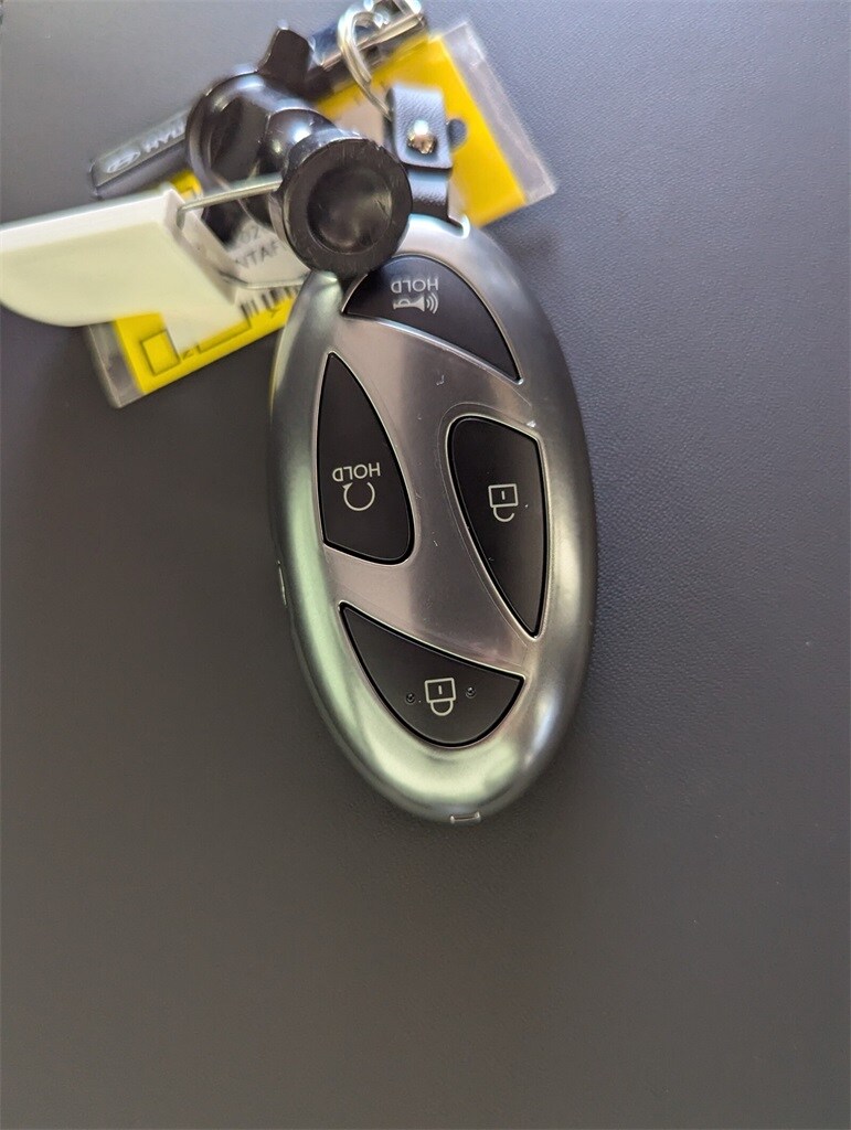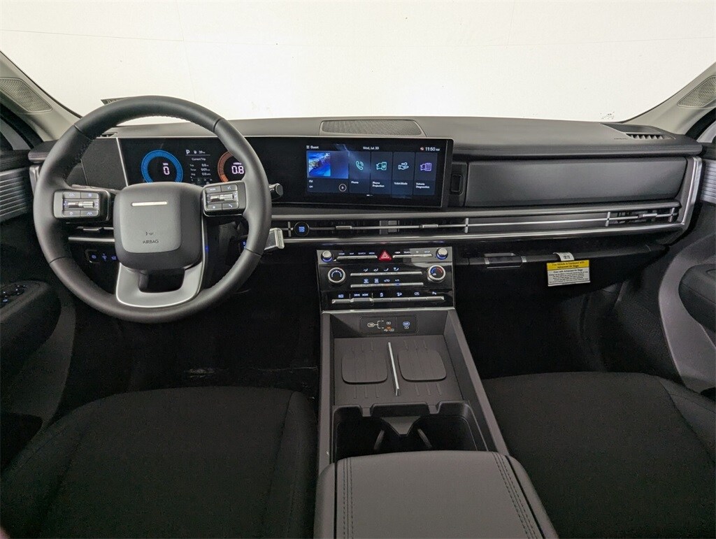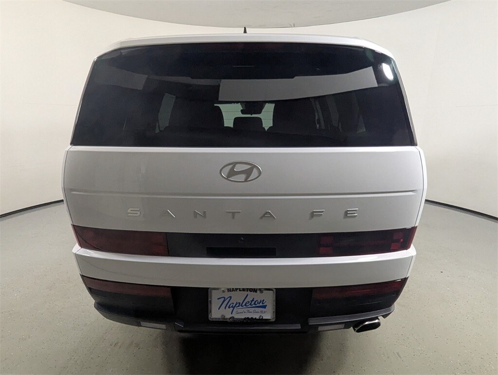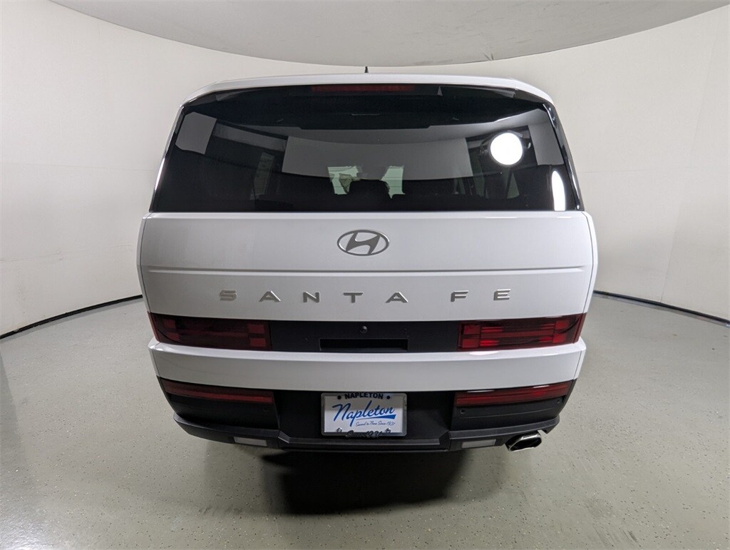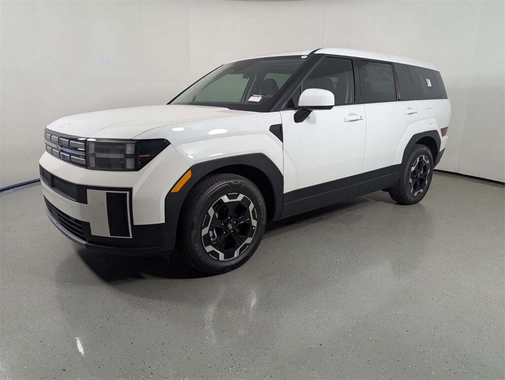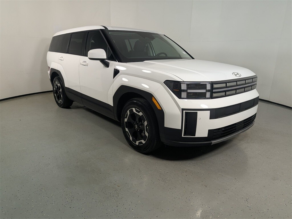 Features: Option Group 01, Santa Fe SE, 4D Sport Utility, 2.5L I4, 8-Speed Automatic with SHIFTRONIC, FWD, Serenity White, Black Cloth, 18" x 7.5J Alloy Wheels, 3rd row seats: bench, 4-Wheel Disc Brakes, 6 Speakers, ABS brakes, Air Conditioning, All Season Fitted Liners, Alloy wheels, AM/FM radio: SiriusXM, Apple CarPlay & Android Auto, Auto High-beam Headlights, Brake assist, Bumpers: body-color, Cargo Cover/Screen, Cargo Net, Cargo Tray, Carpeted Floor Mats, Delay-off headlights, Driver door bin, Driver vanity mirror, Dual front impact airbags, Dual front side impact airbags, Electronic Stability Control, Emergency communication system, Exterior Parking Camera Rear, First Aid Kit, Four wheel independent suspension, Front anti-roll bar, Front Bucket Seats, Front Center Armrest, Front reading lights, Fully automatic headlights, Heated door mirrors, Illuminated entry, Knee airbag, Leather steering wheel, Low tire pressure warning, Occupant sensing airbag, Outside temperature display, Overhead airbag, Overhead console, Panic alarm, Passenger door bin, Passenger vanity mirror, Power door mirrors, Power Liftgate, Power steering, Power windows, Radio: AM/FM/HD Display Audio, Rear anti-roll bar, Rear seat center armrest, Rear side impact airbag, Rear window defroster, Rear window wiper, Remote keyless entry, Roadside Assistance Kit, Security system, Speed control, Speed-sensing steering, Split folding rear seat, Spoiler, Steering wheel mounted audio controls, Tachometer, Telescoping steering wheel, Tilt steering wheel, Traction control, Trip computer, Variably intermittent wipers, and YES Essentials Stain-Resistant Cloth Seat Trim.