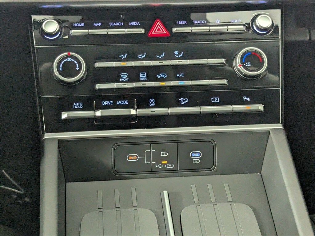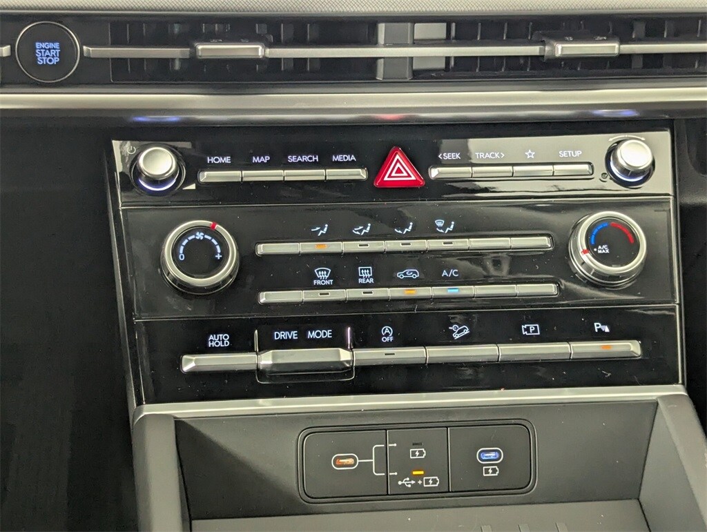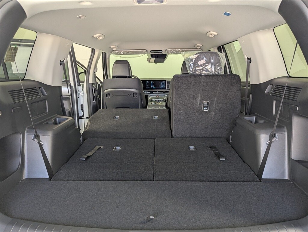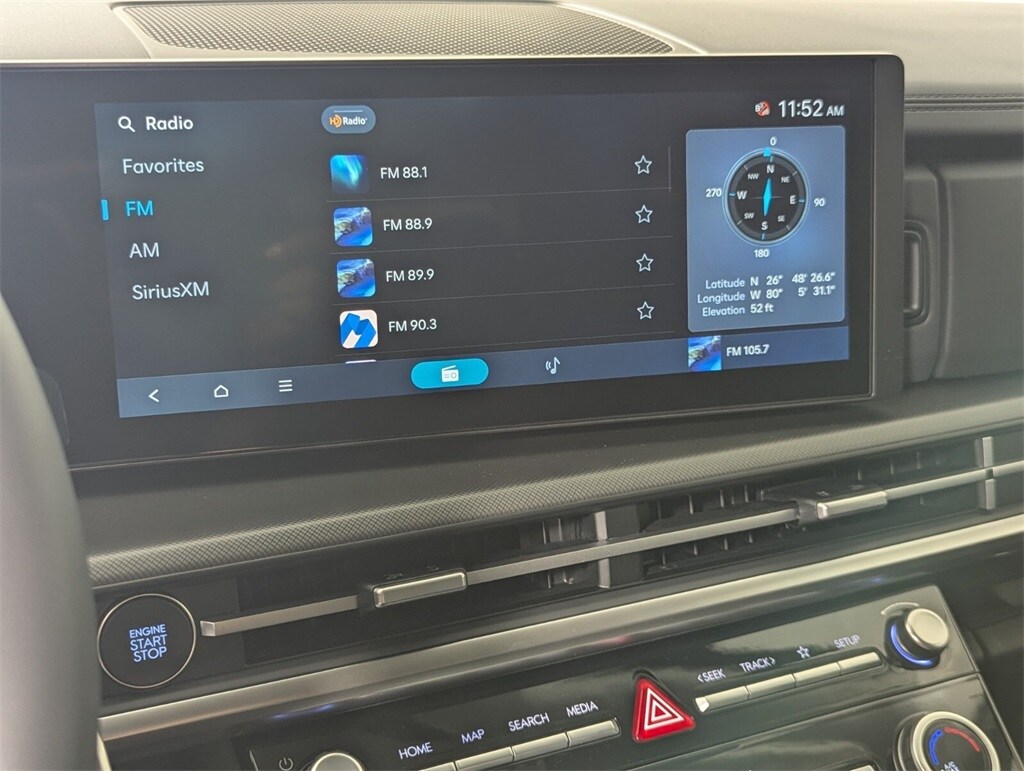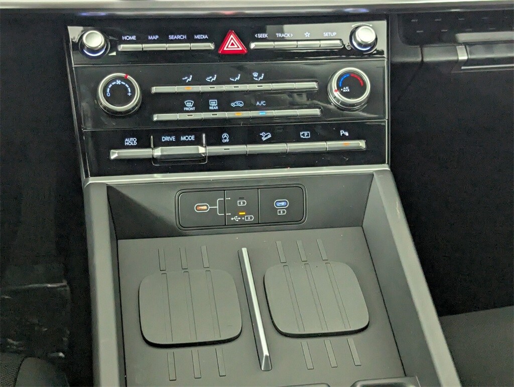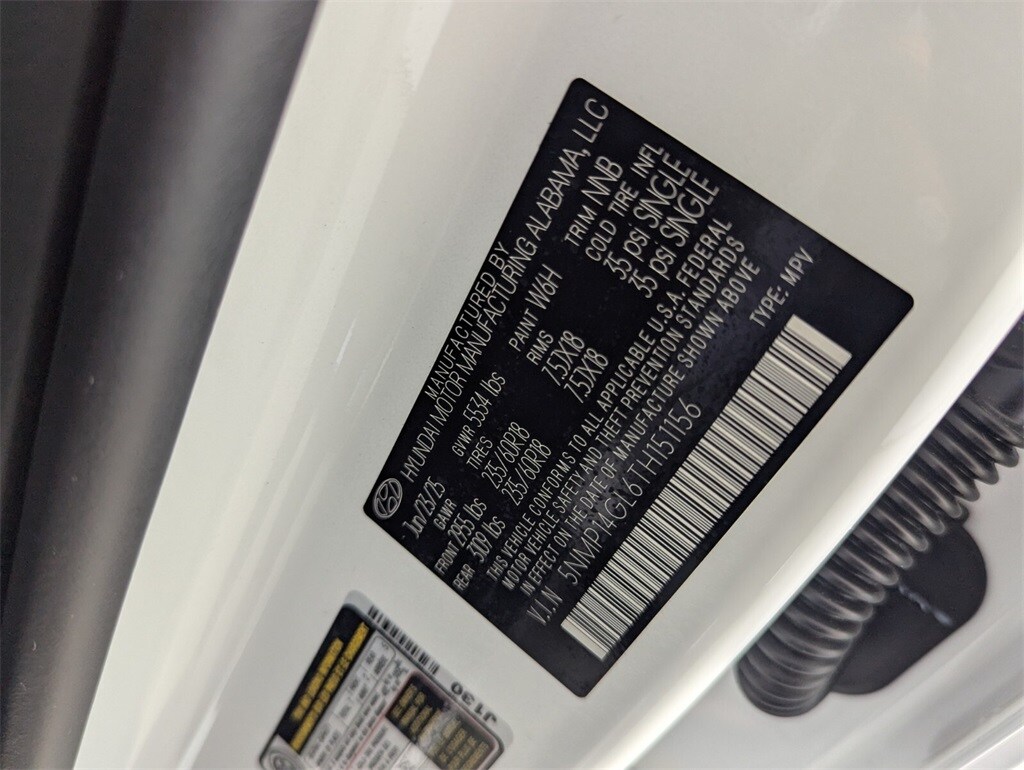 Features: Option Group 01, Santa Fe SE, 4D Sport Utility, 2.5L I4, 8-Speed Automatic with SHIFTRONIC, FWD, Serenity White, Black Cloth, 18" x 7.5J Alloy Wheels, 3rd row seats: bench, 4-Wheel Disc Brakes, 6 Speakers, ABS brakes, Air Conditioning, All Season Fitted Liners, Alloy wheels, AM/FM radio: SiriusXM, Apple CarPlay & Android Auto, Auto High-beam Headlights, Brake assist, Bumpers: body-color, Cargo Cover/Screen, Cargo Net, Cargo Tray, Carpeted Floor Mats, Delay-off headlights, Driver door bin, Driver vanity mirror, Dual front impact airbags, Dual front side impact airbags, Electronic Stability Control, Emergency communication system, Exterior Parking Camera Rear, First Aid Kit, Four wheel independent suspension, Front anti-roll bar, Front Bucket Seats, Front Center Armrest, Front reading lights, Fully automatic headlights, Heated door mirrors, Illuminated entry, Knee airbag, Leather steering wheel, Low tire pressure warning, Occupant sensing airbag, Outside temperature display, Overhead airbag, Overhead console, Panic alarm, Passenger door bin, Passenger vanity mirror, Power door mirrors, Power Liftgate, Power steering, Power windows, Radio: AM/FM/HD Display Audio, Rear anti-roll bar, Rear seat center armrest, Rear side impact airbag, Rear window defroster, Rear window wiper, Remote keyless entry, Roadside Assistance Kit, Security system, Speed control, Speed-sensing steering, Split folding rear seat, Spoiler, Steering wheel mounted audio controls, Tachometer, Telescoping steering wheel, Tilt steering wheel, Traction control, Trip computer, Variably intermittent wipers, and YES Essentials Stain-Resistant Cloth Seat Trim.