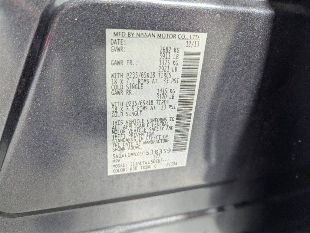 2014 INFINITI QX60 3.5L V6 FWD Sport-Tuned CVT 20/26 City/Highway MPG