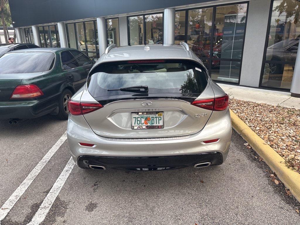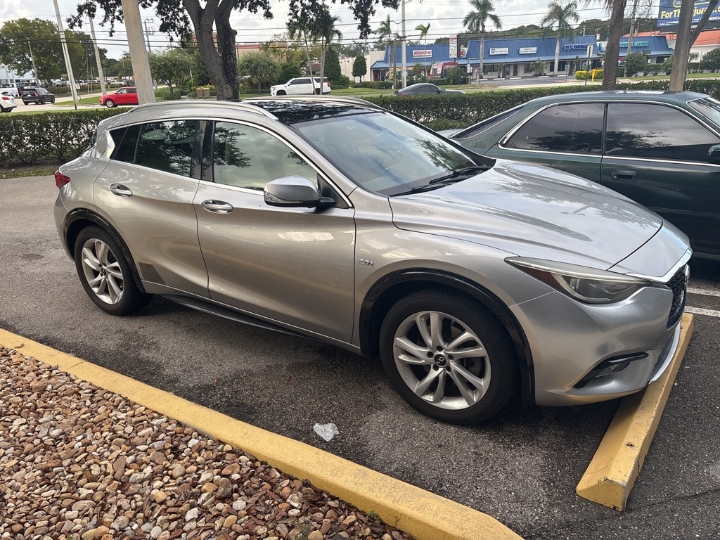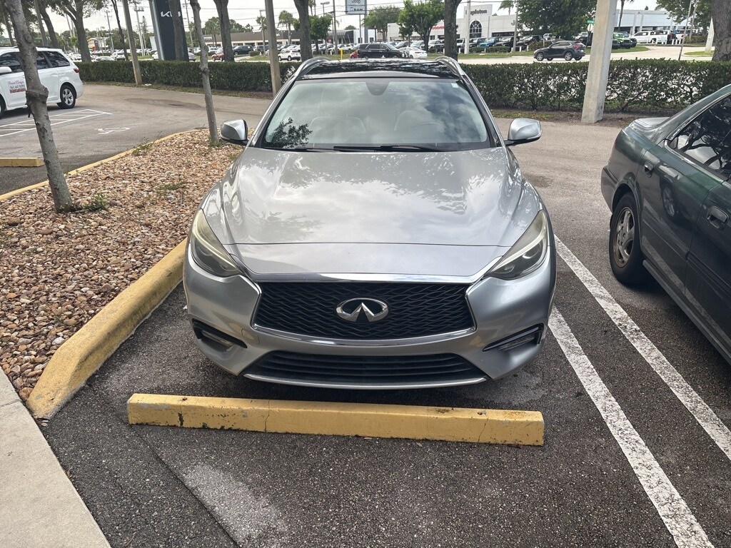 2017 INFINITI QX30 Premium Beautifully finished in Blade Silver with Wheat Leather interior. 2.0L I4 Turbocharged 4D Sport Utility FWD 7-Speed Automatic 10 Speakers, 18" x 7" Aluminum Alloy Wheels, 2.654 Axle Ratio, 4-Wheel Disc Brakes, ABS brakes, Activation Disclaimer, Air Conditioning, Alloy wheels, AM/FM radio: SiriusXM, Auto-dimming door mirrors, Auto-dimming Rear-View mirror, Automatic temperature control, Brake assist, Bumpers: body-color, CD player, Delay-off headlights, Driver door bin, Driver vanity mirror, Dual front impact airbags, Dual front side impact airbags, Electronic Stability Control, Floor Mats, Four wheel independent suspension, Front anti-roll bar, Front Bucket Seats, Front Center Armrest, Front dual zone A/C, Front fog lights, Front reading lights, Fully automatic headlights, Garage door transmitter: HomeLink, Heated door mirrors, Heated Front Bucket Seats, Heated front seats, Illuminated entry, Knee airbag, Leather Shift Knob, Leather steering wheel, Literature Kit, Low tire pressure warning, Memory seat, Nappa Leather Seat Trim, Occupant sensing airbag, Outside temperature display, Overhead airbag, Overhead console, Panic alarm, Panoramic Moonroof, Passenger door bin, Passenger vanity mirror, Power door mirrors, Power driver seat, Power passenger seat, Power steering, Power windows, Radio data system, Radio: Bose 10-Speaker Premium Audio System, Rain sensing wipers, Rear anti-roll bar, Rear Bumper Protector, Rear fog lights, Rear seat center armrest, Rear window defroster, Rear window wiper, Remote keyless entry, Roof Rails, Security system, Speed control, Speed-sensing steering, Split folding rear seat, Spoiler, Steering wheel mounted audio controls, Tachometer, Telescoping steering wheel, Tilt steering wheel, Traction control, Trip computer, Turn signal indicator mirrors, Variably intermittent wipers. 24/33 City/Highway MPG