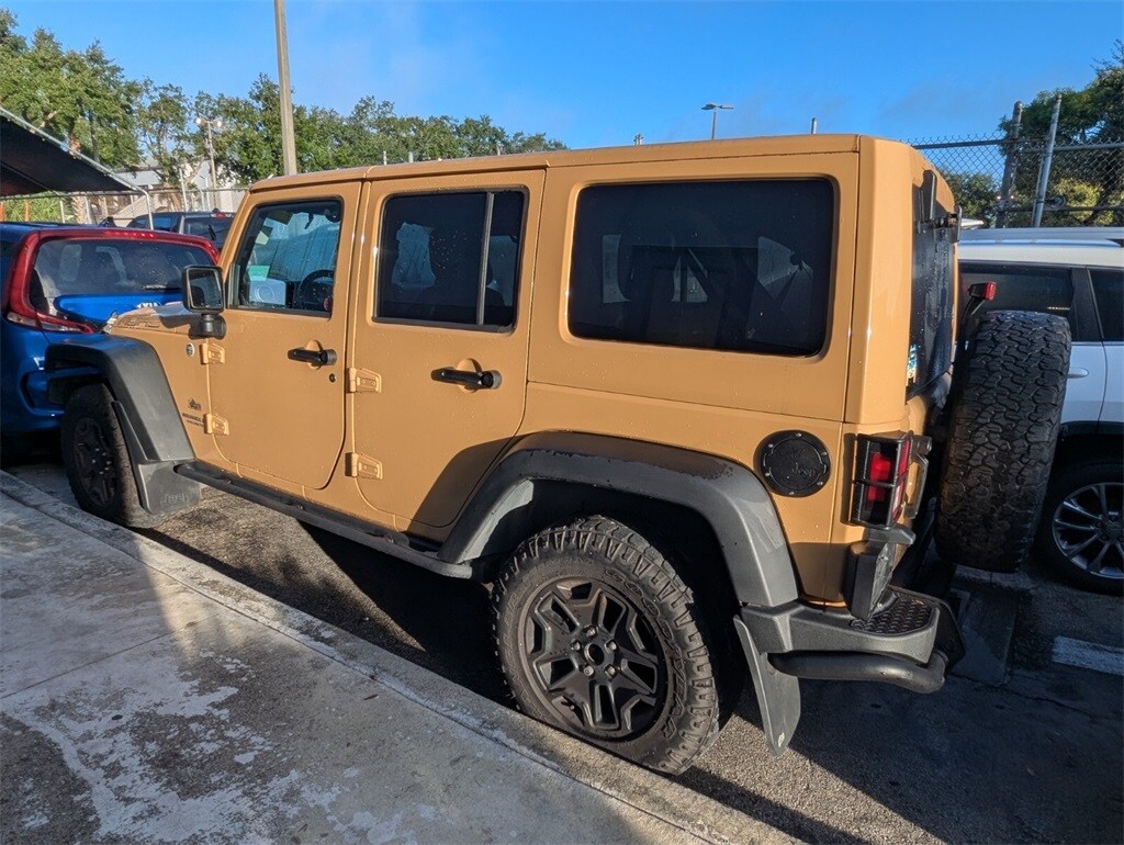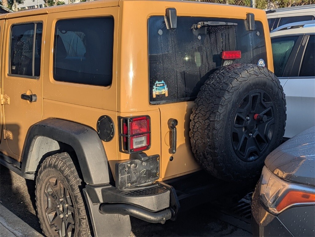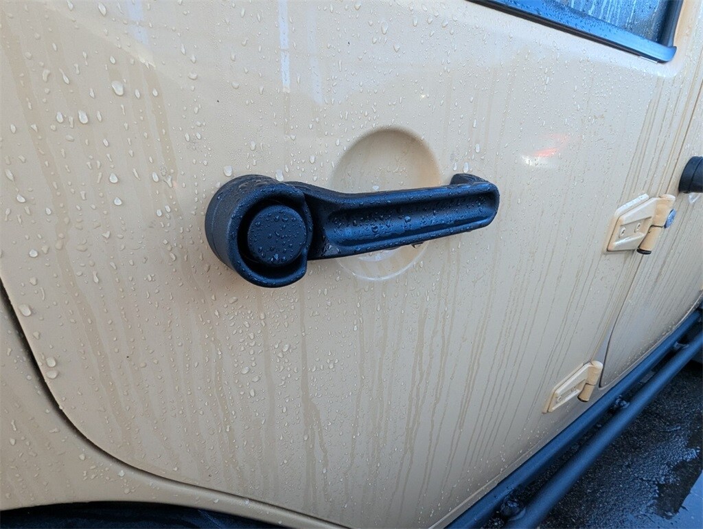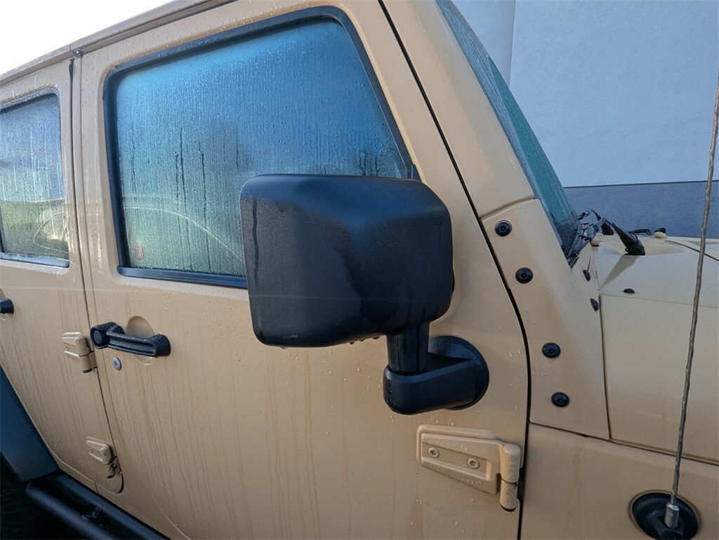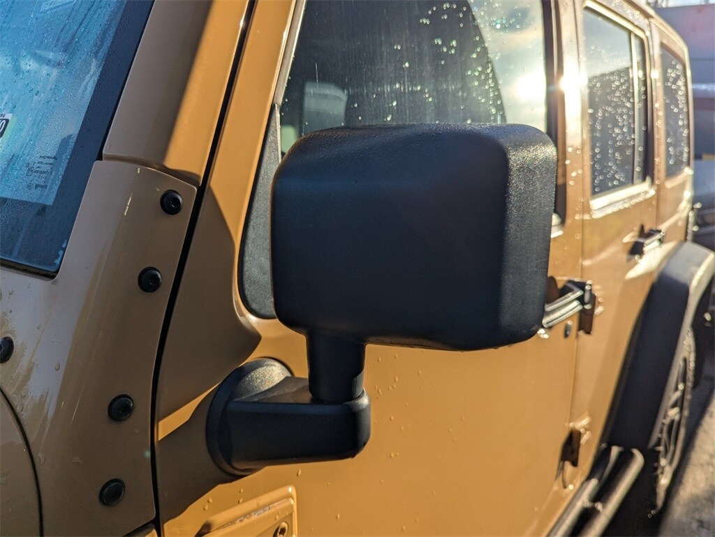 Features: Wrangler Unlimited Sahara, 4D Sport Utility, 3.6L V6 24V VVT, 5-Speed Automatic, 4WD, Dune Clear Coat, Black w/Cloth Bucket Seats or Leather Trimmed Bucket Seats, 18" x 7.5" Polished Satin Carbon Wheels, 3.21 Rear Axle Ratio, 4-Wheel Disc Brakes, 7 Speakers, ABS brakes, Air Conditioning, Alloy wheels, AM/FM radio: SIRIUS, Audio Jack Input for Mobile Devices, Auto-dimming Rear-View mirror, Brake assist, CD player, Cloth Bucket Seats, Compass, Driver door bin, Driver vanity mirror, Dual front impact airbags, Electronic Stability Control, Front anti-roll bar, Front Bucket Seats, Front Center Armrest w/Storage, Front fog lights, Front reading lights, Fully automatic headlights, Heated door mirrors, Heavy Duty Suspension w/Gas Shocks, Illuminated entry, Integrated roll-over protection, Leather steering wheel, Low tire pressure warning, Occupant sensing airbag, Outside temperature display, Panic alarm, Passenger door bin, Passenger vanity mirror, Power door mirrors, Power steering, Power windows, Radio data system, Radio: Uconnect 130 AM/FM/CD/MP3, Rear anti-roll bar, Remote keyless entry, Security system, Speed control, Split folding rear seat, Steering wheel mounted audio controls, Sunrider Soft Top, Tachometer, Tilt steering wheel, Traction control, Trip computer, and Variably intermittent wipers.