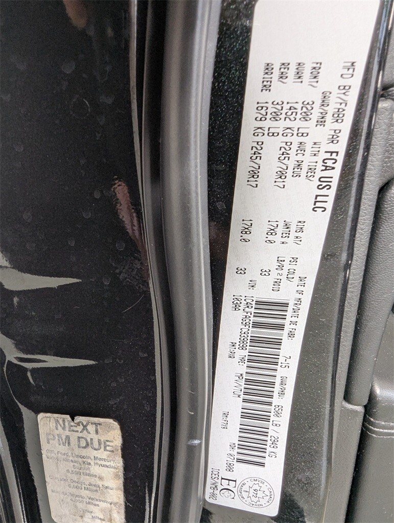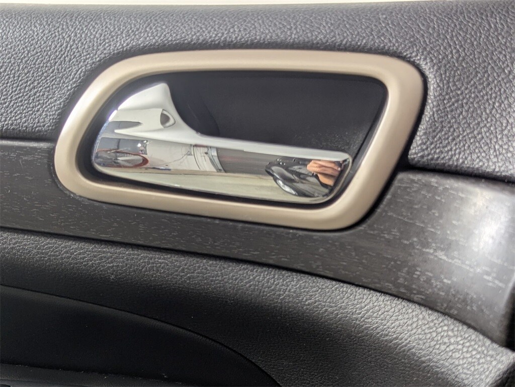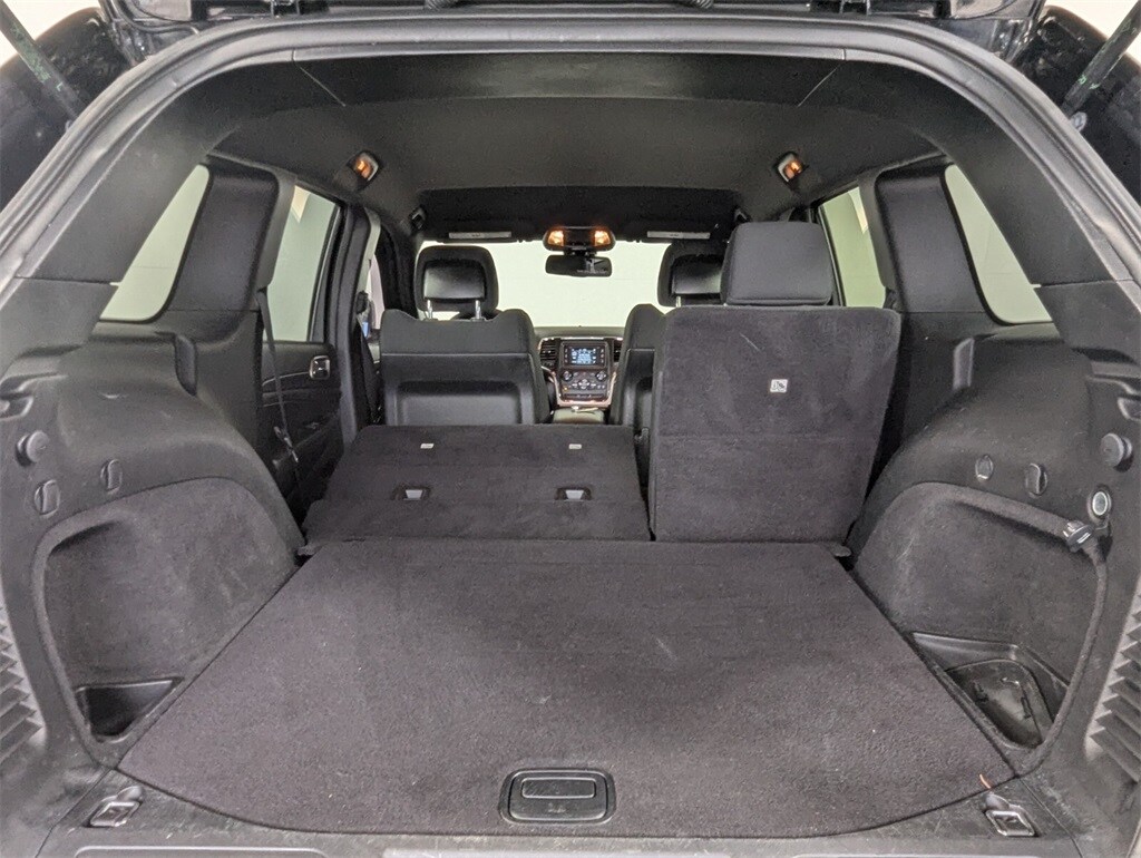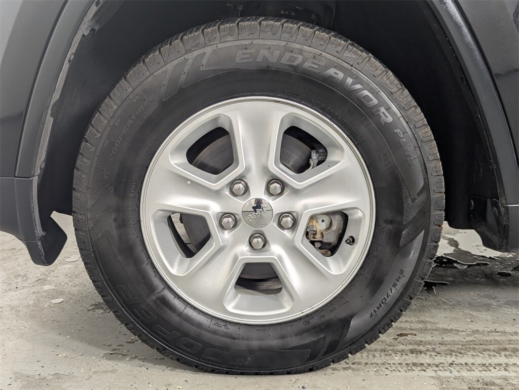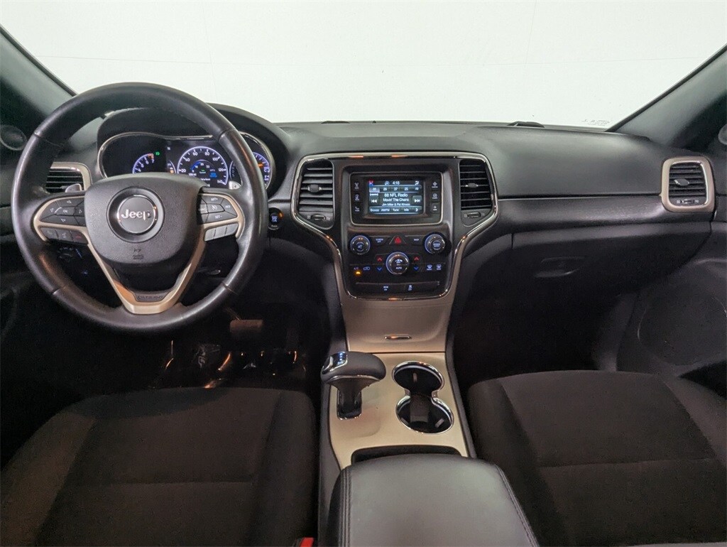 This Grand Cherokee is well equipped with 4WD, 17" x 8.0" Aluminum Wheels, 3.45 Rear Axle Ratio, 4-Wheel Disc Brakes, 6 Speakers, ABS brakes, Air Conditioning, Alloy wheels, AM/FM radio, Anti-whiplash front head restraints, Automatic temperature control, Brake assist, Bumpers: body-color, Cloth Low-Back Bucket Seats, Compass, Delay-off headlights, Driver door bin, Driver vanity mirror, Dual front impact airbags, Dual front side impact airbags, Electronic Stability Control, Four wheel independent suspension, Front anti-roll bar, Front Bucket Seats, Front Center Armrest w/Storage, Front dual zone A/C, Front fog lights, Front reading lights, Fully automatic headlights, Heated door mirrors, Illuminated entry, Knee airbag, Leather Shift Knob, Low tire pressure warning, Normal Duty Suspension, Occupant sensing airbag, Outside temperature display, Overhead airbag, Overhead console, Panic alarm, Passenger door bin, Passenger vanity mirror, Power door mirrors, Power steering, Power windows, Radio data system, Radio: Uconnect 5.0, Rear anti-roll bar, Rear reading lights, Rear seat center armrest, Rear window defroster, Rear window wiper, Remote keyless entry, Speed control, Speed-Sensitive Wipers, Split folding rear seat, Spoiler, Steering wheel mounted audio controls, Tachometer, Telescoping steering wheel, Tilt steering wheel, Traction control, Trip computer, and Variably intermittent wipers.