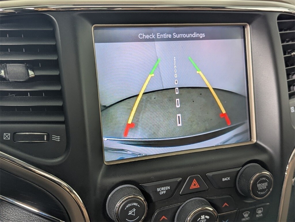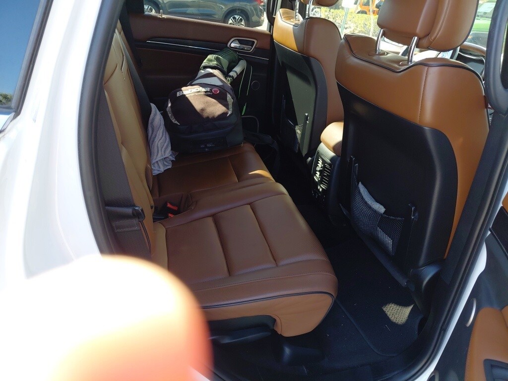 This Grand Cherokee is well equipped with 4WD, 19 Speakers, 20" x 8.0" Polished Aluminum Wheels, 3.45 Rear Axle Ratio, 4-Wheel Disc Brakes, 8.4" Touchscreen Display, ABS brakes, Air Conditioning, Alloy wheels, AM/FM radio: SiriusXM, Anti-whiplash front head restraints, Audio memory, Auto High-beam Headlights, Auto-dimming door mirrors, Auto-dimming Rear-View mirror, Auto-leveling suspension, Automatic temperature control, Brake assist, Bumpers: body-color, Compass, Delay-off headlights, Driver door bin, Driver vanity mirror, Dual front impact airbags, Dual front side impact airbags, Electronic Stability Control, Emergency communication system: Uconnect Access, Engine Oil Cooler, Exterior Parking Camera Rear, Four wheel independent suspension, Front anti-roll bar, Front Bucket Seats, Front Center Armrest w/Storage, Front dual zone A/C, Front fog lights, Front reading lights, Fully automatic headlights, Garage door transmitter, Genuine wood dashboard insert, Headlight cleaning, Heated door mirrors, Heated front seats, Heated rear seats, Heated steering wheel, High intensity discharge headlights: Bi-Xenon, Illuminated entry, Instrument Cluster w/Off-Road Disp. Pages, Knee airbag, Leather Shift Knob, Leather steering wheel, Leather Trimmed Bucket Seats, Low tire pressure warning, Memory seat, Navigation System/ GPS, Normal Duty Suspension, Occupant sensing airbag, Outside temperature display, Overhead airbag, Overhead console, Panic alarm, Passenger door bin, Passenger vanity mirror, Power door mirrors, Power driver seat, Power Liftgate, Power moonroof, Power passenger seat, Power steering, Power windows, Radio data system, Radio: Uconnect 8.4 NAV, Rain sensing wipers, Rear anti-roll bar, Rear reading lights, Rear seat center armrest, Rear window defroster, Rear window wiper, Remote keyless entry, Roof rack: rails only, Security system, Speed control, Speed-Sensitive Wipers, Split folding rear seat, Spoiler, Steering wheel mounted audio controls, Tachometer, Telescoping steering wheel, Tilt steering wheel, Traction control, Trip computer, Turn signal indicator mirrors, Variably intermittent wipers, and Ventilated front seats.