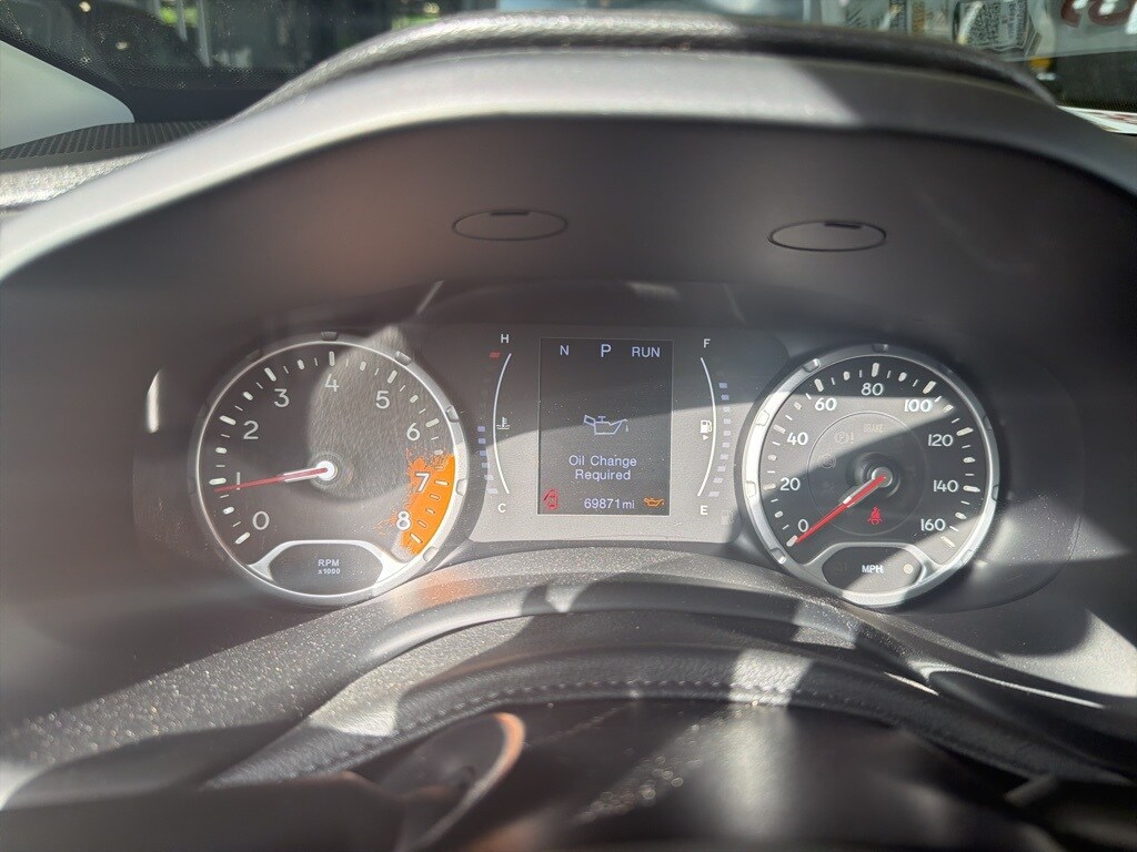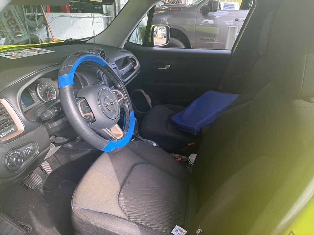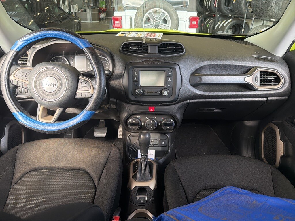 This Renegade is well equipped with Passive Entry Remote Start Package, Popular Equipment Group (40/20/40 Rear Seat w/Trunk Pass-Thru, Auto-Dimming Rear-View Mirror, and Power 4-Way Driver Lumbar Adjust), Quick Order Package 27J, 16" x 6.5" Aluminum Wheels, 17" x 7.0" Aluminum Wheels, 3.734 Axle Ratio, 4-Wheel Disc Brakes, 4.438 Axle Ratio, 6 Speakers, ABS brakes, Air Conditioning, Alloy wheels, AM/FM radio: SiriusXM, Anti-whiplash front head restraints, Brake assist, Cloth Low-Back Bucket Seats, Compass, Delay-off headlights, Driver door bin, Driver vanity mirror, Dual front impact airbags, Dual front side impact airbags, Electronic Stability Control, Four wheel independent suspension, Front anti-roll bar, Front Bucket Seats, Front Center Armrest, Front fog lights, Front reading lights, Fully automatic headlights, Heated door mirrors, Illuminated entry, Knee airbag, Leather steering wheel, Low tire pressure warning, Normal Duty Suspension, Occupant sensing airbag, Outside temperature display, Overhead airbag, Overhead console, Panic alarm, ParkView Rear Back-Up Camera, Passenger door bin, Passenger vanity mirror, Power door mirrors, Power steering, Power windows, Radio data system, Radio: Uconnect 3 w/5" Display, Rear anti-roll bar, Rear window defroster, Rear window wiper, Remote keyless entry, Roof rack: rails only, Speed control, Split folding rear seat, Spoiler, Steering wheel mounted audio controls, Tachometer, Telescoping steering wheel, Tilt steering wheel, Traction control, Trip computer, Variably intermittent wipers, and Voltmeter.