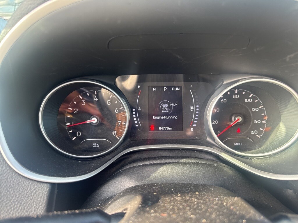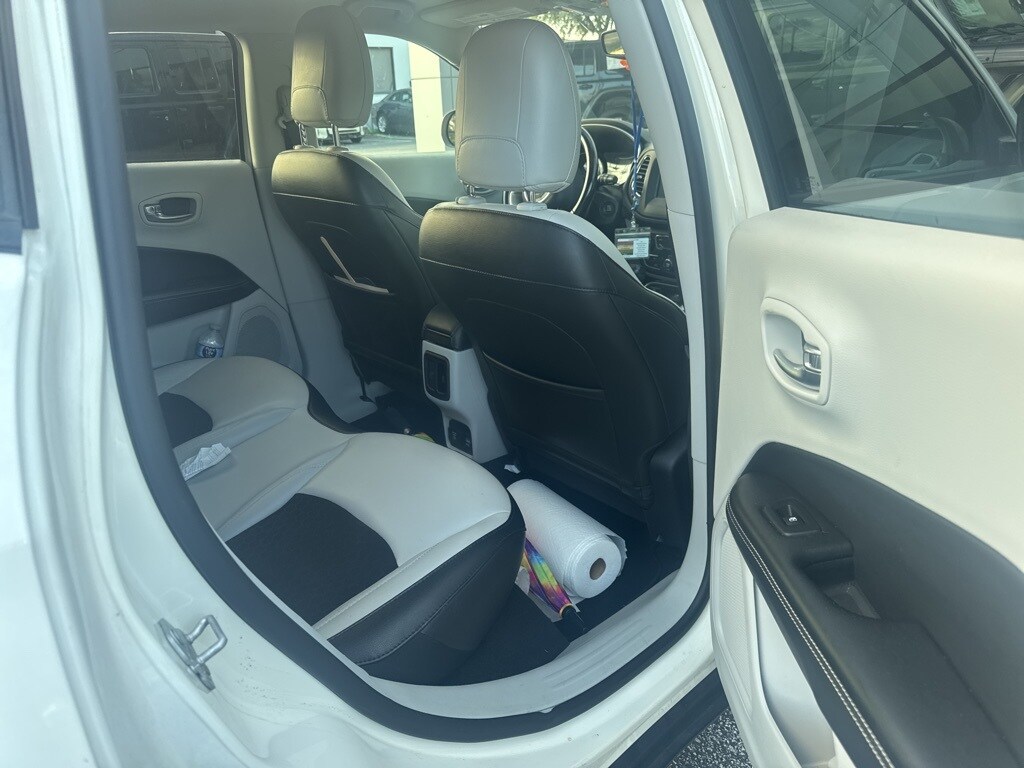 This Compass is well equipped with Quick Order Package 28J, Safety & Security Group (Blind Spot & Cross Path Detection, ParkSense Rear Park Assist System, and Security Alarm), 3.502 Axle Ratio, 4-Wheel Disc Brakes, 6 Speakers, ABS brakes, Air Conditioning, Alloy wheels, AM/FM radio, Anti-whiplash front head restraints, Automatic temperature control, Bluetooth® Streaming Audio, Brake assist, Bumpers: body-color, Compass, Delay-off headlights, Driver door bin, Driver vanity mirror, Dual front impact airbags, Dual front side impact airbags, Electronic Stability Control, Four wheel independent suspension, Front anti-roll bar, Front Bucket Seats, Front Center Armrest w/Storage, Front dual zone A/C, Front fog lights, Front reading lights, Fully automatic headlights, Heated door mirrors, Illuminated entry, Knee airbag, Leather Shift Knob, Low tire pressure warning, Media Hub (USB, AUX), Occupant sensing airbag, Outside temperature display, Overhead airbag, Overhead console, Panic alarm, ParkView Rear Back-Up Camera, Passenger door bin, Passenger vanity mirror, Power door mirrors, Power steering, Power windows, Premium Cloth/Vinyl Bucket Seats, Radio: Uconnect 4 w/7" Display, Rear anti-roll bar, Rear seat center armrest, Rear window defroster, Rear window wiper, Remote keyless entry, Roof rack: rails only, Speed control, Split folding rear seat, Spoiler, Steering wheel mounted audio controls, Tachometer, Telescoping steering wheel, Tilt steering wheel, Traction control, Trip computer, Variably intermittent wipers, and Wheels: 17" x 7.0" Silver Painted Aluminum.