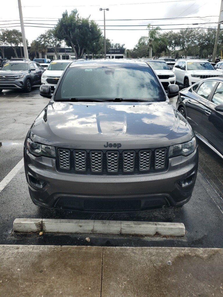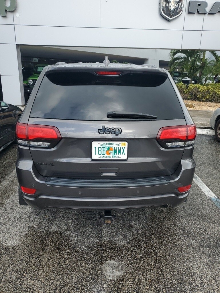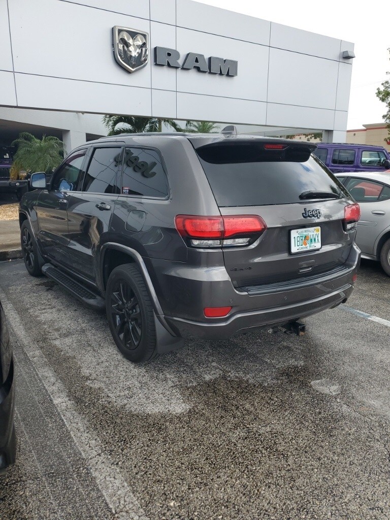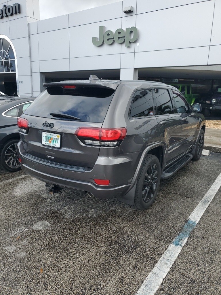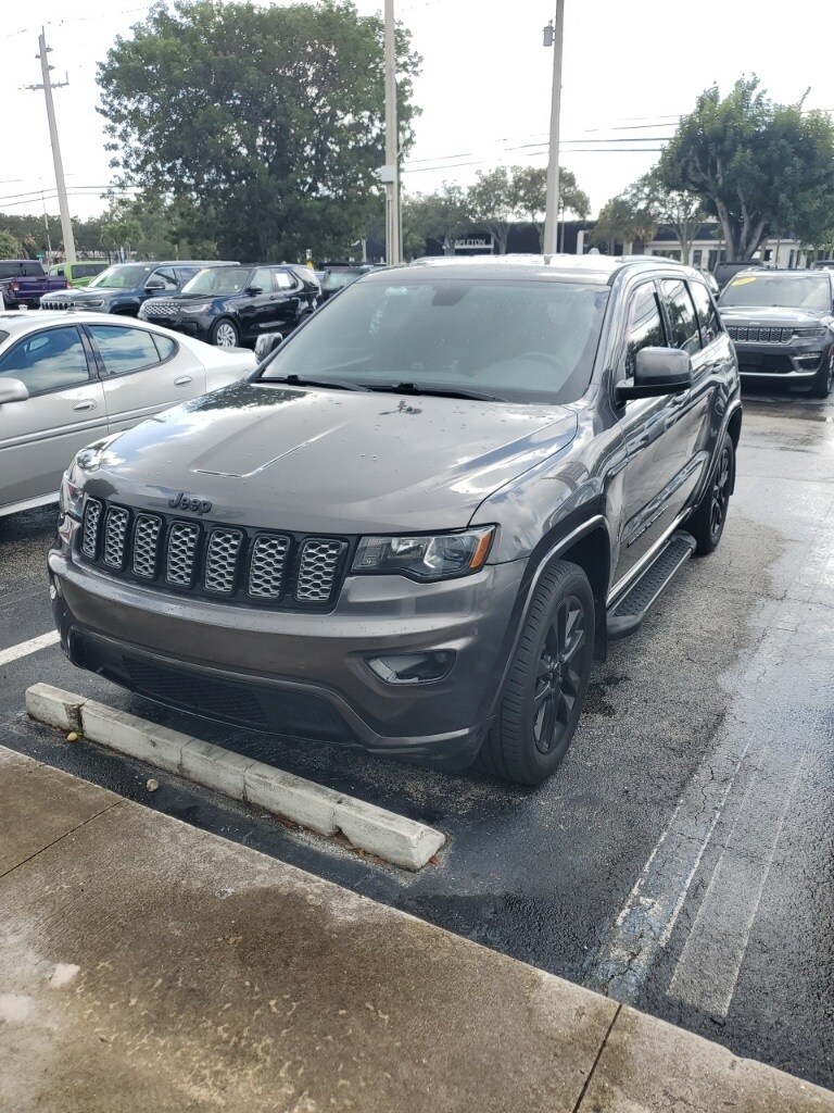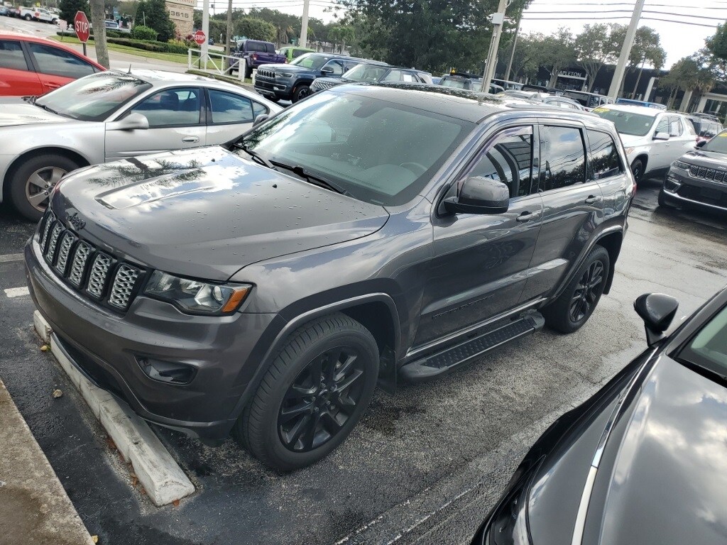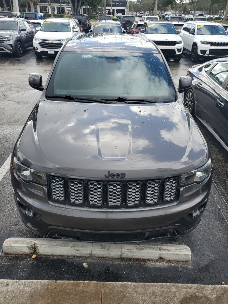 This Grand Cherokee is well equipped with Altitude IV Package, Quick Order Package 2BZ Altitude (1-Year SiriusXM Radio Service, 1-Yr SiriusXM Guardian Trial, 4G LTE Wi-Fi Hot Spot, 5-Year SiriusXM Traffic Service, 5-Year SiriusXM Travel Link Service, 8.4" Touchscreen Display, Altitude Grille, Apple CarPlay, Auto-Dimming Rear-View Mirror, Black Suede Seats w/Black Stitching, Body Color Claddings, Body Color Fascia, Body Color Shark Fin Antenna, Dark Day Light Opening Moldings, Dark Headlamp Bezel Finish, Dark Lens Taillamps, Front Accent/Body Color Fascia, Gloss Black Rear Fascia Applique, Google Android Auto, GPS Antenna Input, GPS Navigation, HD Radio, Instrument Cluster w/Off-Road Disp. Pages, Integrated Center Stack Radio, Integrated Voice Command w/Bluetooth, Jeep Black Gloss Badging, Power 4-Way Driver Lumbar Adjust, Power 8-Way Driver/Manual Passenger Seat, Radio: Uconnect 4C Nav w/8.4" Display, Rear Accent/Body Color Fascia, Rear Fascia Black MIC Step Pad, Single Exhaust w/Bright Tip, SiriusXM Satellite Radio, SiriusXM Traffic Plus, SiriusXM Travel Link, Steering Wheel Mounted Audio Controls, USB Host Flip, and Wheels: 20" x 8.0" Gloss Black Aluminum), Security & Convenience Group (115V Auxiliary Power Outlet, Power Liftgate, Security Alarm, and Universal Garage Door Opener), 4WD, 3.45 Rear Axle Ratio, 4-Wheel Disc Brakes, 506 Watt Amplifier, 6 Speakers, ABS brakes, Active Noise Control System, Air Conditioning, Alloy wheels, AM/FM radio, Anti-whiplash front head restraints, Apple CarPlay/Android Auto, Automatic temperature control, Brake assist, Bumpers: body-color, Cargo Compartment Cover, Cloth Bucket Seats, Compass, Delay-off headlights, Driver door bin, Driver vanity mirror, Dual front impact airbags, Dual front side impact airbags, Electronic Stability Control, Four wheel independent suspension, Front anti-roll bar, Front Bucket Seats, Front Center Armrest w/Storage, Front dual zone A/C, Front fog lights, Front License Plate Bracket, Front reading lights, Fully automatic headlights, Heated door mirrors, Illuminated entry, Knee airbag, Leather Shift Knob, Low tire pressure warning, Manufacturer's Statement of Origin, Normal Duty Suspension, Occupant sensing airbag, Outside temperature display, Overhead airbag, Overhead console, Panic alarm, ParkView Rear Back-Up Camera, Passenger door bin, Passenger vanity mirror, Power door mirrors, Power steering, Power Sunroof, Power windows, Premium Alpine Speaker System, Radio data system, Radio: Uconnect 4 w/7" Display, Rear anti-roll bar, Rear reading lights, Rear seat center armrest, Rear window defroster, Rear window wiper, Remote keyless entry, Speed control, Speed-sensing steering, Speed-Sensitive Wipers, Split folding rear seat, Spoiler, Steering wheel mounted audio controls, Tachometer, Telescoping steering wheel, Tilt steering wheel, Traction control, Trip computer, Variably intermittent wipers, and Wheels: 17" x 8.0" Silver Aluminum.