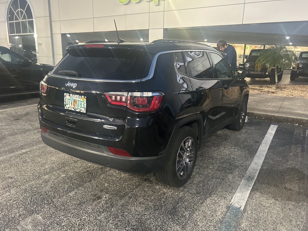 This Compass is well equipped with Quick Order Package 28K Sun & Wheel (DISC) (Wheels: 17" x 7.0" Polished/Granite Pockets Alum), 3.502 Axle Ratio, 4-Wheel Disc Brakes, 6 Speakers, ABS brakes, Air Conditioning, Alloy wheels, AM/FM radio: SiriusXM, Anti-whiplash front head restraints, Apple CarPlay, Apple CarPlay/Android Auto, Automatic temperature control, Bluetooth® Streaming Audio, Brake assist, Bumpers: body-color, Compass, Delay-off headlights, Driver door bin, Driver vanity mirror, Dual front impact airbags, Dual front side impact airbags, Electronic Stability Control, Four wheel independent suspension, Front anti-roll bar, Front Bucket Seats, Front Center Armrest w/Storage, Front dual zone A/C, Front fog lights, Front reading lights, Fully automatic headlights, Google Android Auto, GPS Antenna Input, Heated door mirrors, Illuminated entry, Knee airbag, Leather Shift Knob, Low tire pressure warning, Media Hub (USB, AUX), Occupant sensing airbag, Outside temperature display, Overhead airbag, Overhead console, Panic alarm, ParkView Rear Back-Up Camera, Passenger door bin, Passenger vanity mirror, Power door mirrors, Power steering, Power windows, Premium Cloth/Vinyl Bucket Seats, Radio: Uconnect 4 w/7" Display, Rear anti-roll bar, Rear seat center armrest, Rear window defroster, Rear window wiper, Remote keyless entry, Roof rack: rails only, Speed control, Split folding rear seat, Spoiler, Steering wheel mounted audio controls, Tachometer, Telescoping steering wheel, Tilt steering wheel, Traction control, Trip computer, USB Host Flip, Variably intermittent wipers, and Wheels: 17" x 7.0" Silver Painted Aluminum.