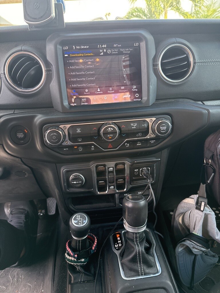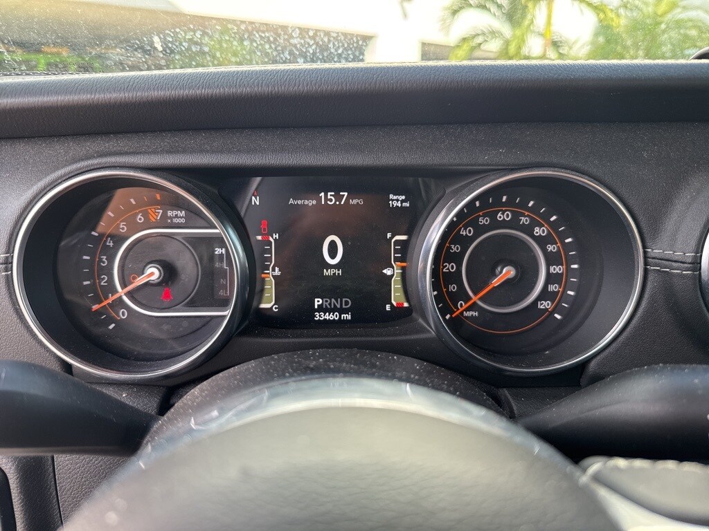 This Gladiator is well equipped with 8.4" Radio & Premium Audio Group (1-Year SiriusXM Guardian Trial, 5-Year SiriusXM Traffic Service, 5-Year SiriusXM Travel Link Service, Alpine Premium Audio System, Auto-Dimming Rear-View Mirror, Emergency/Assistance Call, For Details, Visit DriveUconnect.com, HD Radio, Radio: Uconnect 4C Nav w/8.4" Display, SiriusXM Traffic Plus, and SiriusXM Travel Link), Advanced Safety Group (Advanced Brake Assist and Full Speed Forward Collision Warning Plus), Auxiliary Switch Group (240 Amp Alternator, 700 Amp Maintenance Free Battery, and Auxiliary Switches), Cargo Group w/Trail Rail System (400W Inverter, Exterior 115V AC Outlet, and Lockable Rear Underseat Storage), LED Lighting Group (Daytime Running Lamps LED Accents, Front LED Fog Lamps, LED Park Turn Lamps, LED Reflector Headlamps, and LED Taillamps), Quick Order Package 24G, Safety Group (Blind Spot & Cross Path Detection and ParkSense Rear Park Assist System), Trailer Tow Package (Class IV Hitch Receiver, Heavy-Duty Engine Cooling, and Trailer Hitch Zoom), 3.73 Rear Axle Ratio, 4-Wheel Disc Brakes, 8 Speakers, ABS brakes, Air Conditioning, Alloy wheels, AM/FM radio: SiriusXM, Anti-Spin Differential Rear Axle, Apple CarPlay/Android Auto, Automatic temperature control, Brake assist, Compass, Delay-off headlights, Driver door bin, Driver vanity mirror, Dual front impact airbags, Dual front side impact airbags, Electronic Stability Control, Front anti-roll bar, Front Bucket Seats, Front Center Armrest w/Storage, Front dual zone A/C, Front fog lights, Front reading lights, Fully automatic headlights, Garage door transmitter, Heated door mirrors, Illuminated entry, Integrated roll-over protection, Leather steering wheel, Low tire pressure warning, Normal Duty Plus Suspension, Occupant sensing airbag, Outside temperature display, Overland Cloth Bucket Seats, Panic alarm, ParkView Rear Back-Up Camera, Passenger door bin, Passenger vanity mirror, Power door mirrors, Power steering, Power windows, Premium Black Sunrider Soft Top, Premium Door Trim Panel, Radio data system, Radio: Uconnect 4 w/7" Display, Rear anti-roll bar, Rear reading lights, Remote keyless entry, Remote Proximity Keyless Entry, Security system, Speed control, Split folding rear seat, Steering wheel mounted audio controls, Tachometer, Telescoping steering wheel, Tilt steering wheel, Traction control, Trip computer, Variably intermittent wipers, Voltmeter, and Wheels: 18" x 7.5" Granite Crystal Aluminum.