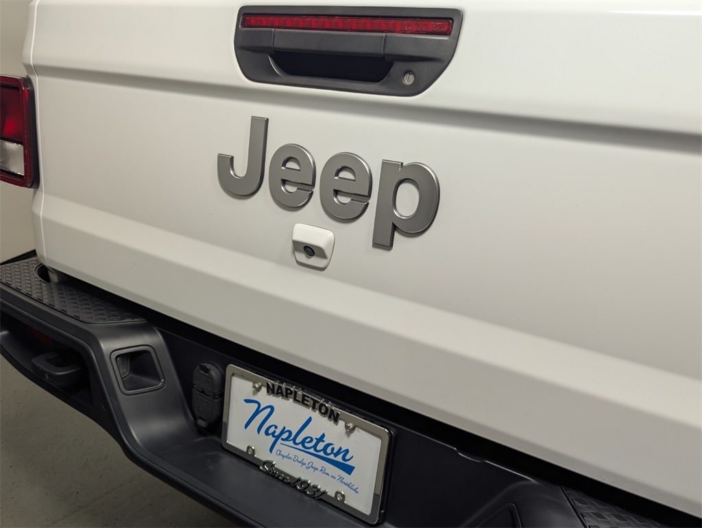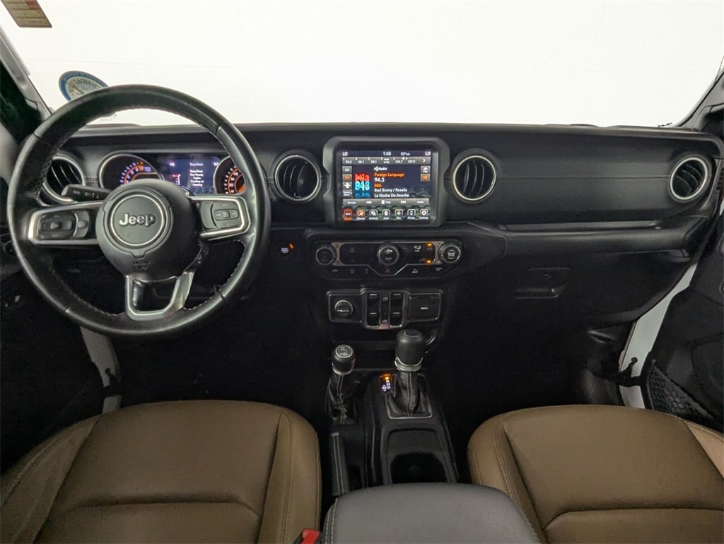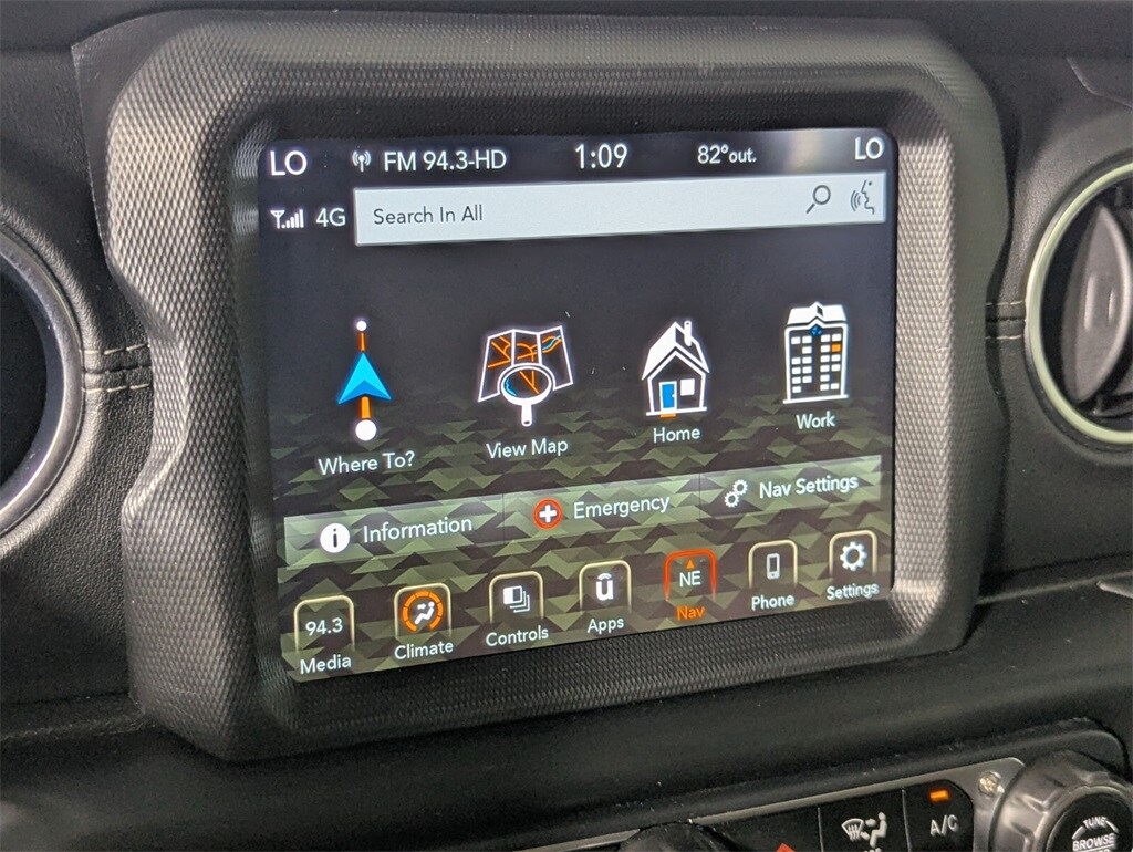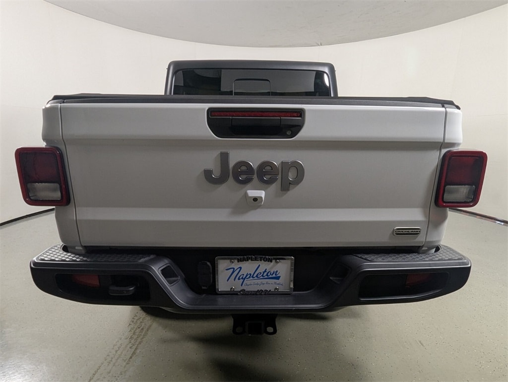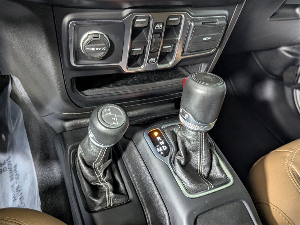 This Gladiator is well equipped with 8.4" Radio & Premium Audio Group (1-Year SiriusXM Guardian Trial, 5-Year SiriusXM Traffic Service, 5-Year SiriusXM Travel Link Service, Alpine Premium Audio System, Auto-Dimming Rear-View Mirror, Emergency/Assistance Call, For Details, Visit DriveUconnect.com, HD Radio, Radio: Uconnect 4C Nav w/8.4" Display, SiriusXM Traffic Plus, and SiriusXM Travel Link), Cargo Group w/Trail Rail System (240 Amp Alternator, 400W Inverter, Exterior 115V AC Outlet, and Lockable Rear Underseat Storage), Quick Order Package 24G, Trailer Tow Package (Class IV Hitch Receiver, Heavy-Duty Engine Cooling, and Trailer Hitch Zoom), 3.73 Rear Axle Ratio, 4-Wheel Disc Brakes, 8 Speakers, ABS brakes, Air Conditioning, All-Weather Slush Mats, Alloy wheels, AM/FM radio: SiriusXM, Apple CarPlay/Android Auto, Automatic temperature control, Bluetooth Wireless Speaker, Body Color 3-Piece Hard Top, Brake assist, Compass, Delay-off headlights, Driver door bin, Driver vanity mirror, Dual front impact airbags, Dual front side impact airbags, Electronic Stability Control, Freedom Panel Storage Bag, Front anti-roll bar, Front Bucket Seats, Front Center Armrest w/Storage, Front dual zone A/C, Front fog lights, Front reading lights, Fully automatic headlights, Garage door transmitter, Heated door mirrors, Illuminated entry, Integrated roll-over protection, Leather steering wheel, Low tire pressure warning, No Soft Top, Normal Duty Plus Suspension, Occupant sensing airbag, Outside temperature display, Overland Cloth Bucket Seats, Panic alarm, ParkView Rear Back-Up Camera, Passenger door bin, Passenger vanity mirror, Power door mirrors, Power steering, Power windows, Premium Door Trim Panel, Radio data system, Radio: Uconnect 4 w/7" Display, Rear anti-roll bar, Rear reading lights, Rear Sliding Window, Rear Window Defroster, Remote keyless entry, Roll-Up Tonneau Cover, Security system, Speed control, Split folding rear seat, Spray In Bedliner, Steering wheel mounted audio controls, Tachometer, Telescoping steering wheel, Tilt steering wheel, Traction control, Trip computer, Variably intermittent wipers, Voltmeter, and Wheels: 18" x 7.5" Granite Crystal Aluminum.