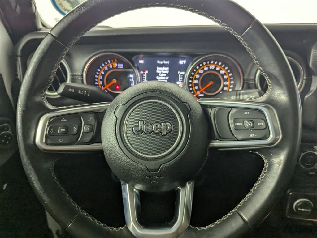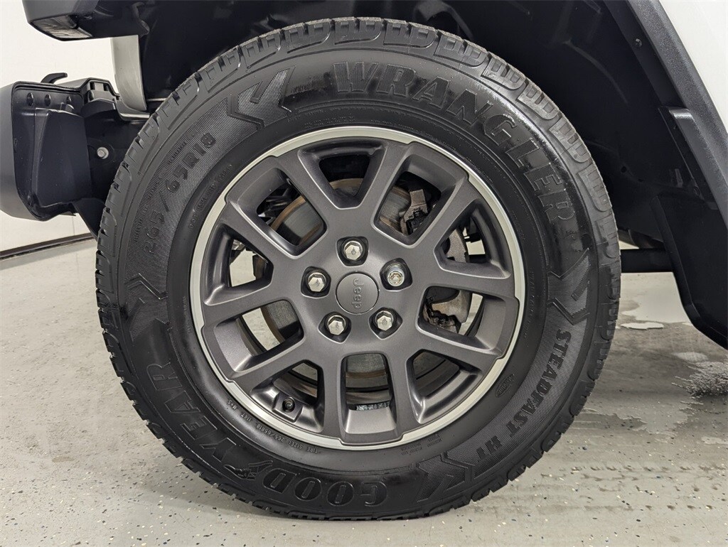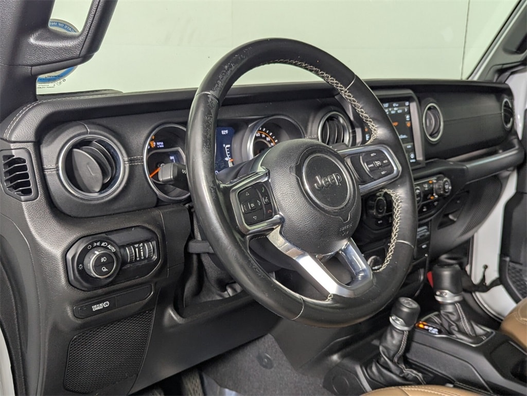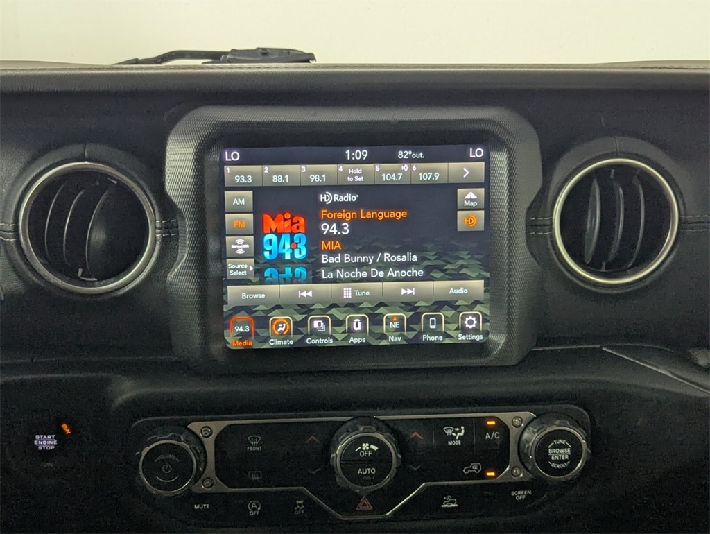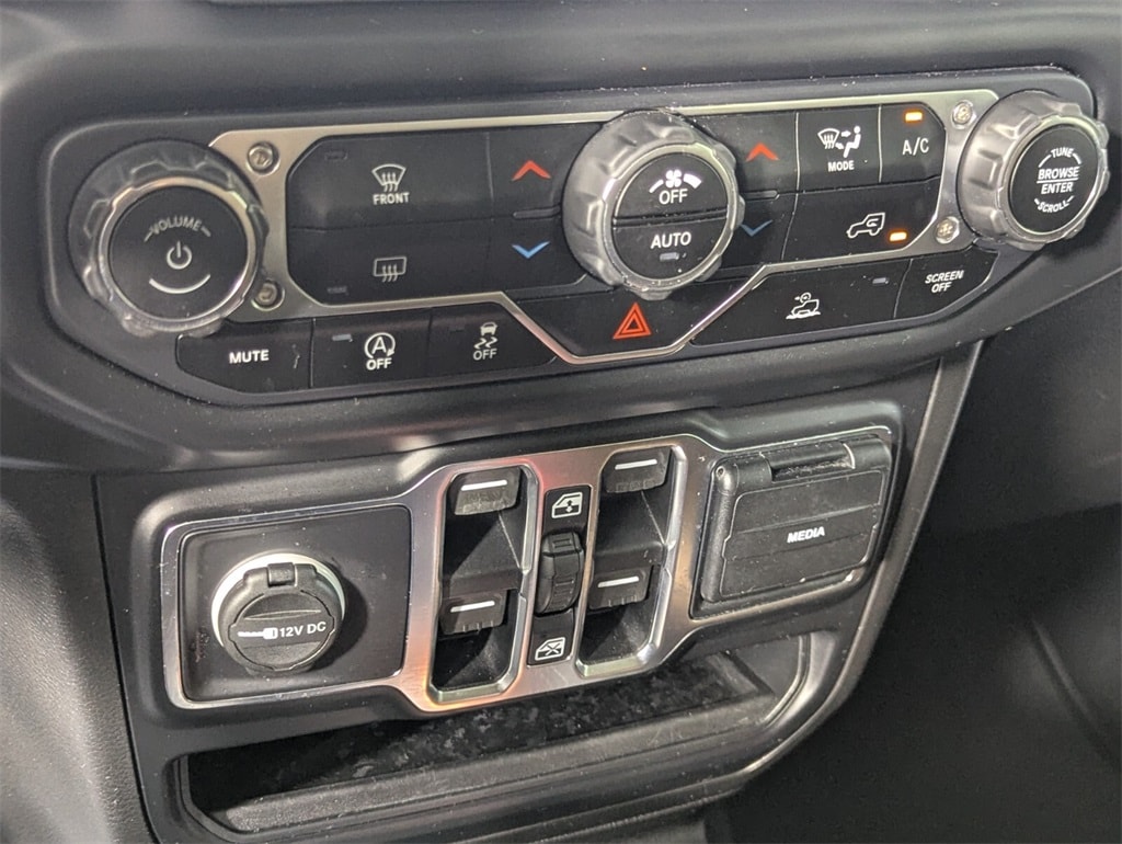 This Gladiator is well equipped with 8.4" Radio & Premium Audio Group (1-Year SiriusXM Guardian Trial, 5-Year SiriusXM Traffic Service, 5-Year SiriusXM Travel Link Service, Alpine Premium Audio System, Auto-Dimming Rear-View Mirror, Emergency/Assistance Call, For Details, Visit DriveUconnect.com, HD Radio, Radio: Uconnect 4C Nav w/8.4" Display, SiriusXM Traffic Plus, and SiriusXM Travel Link), Cargo Group w/Trail Rail System (240 Amp Alternator, 400W Inverter, Exterior 115V AC Outlet, and Lockable Rear Underseat Storage), Quick Order Package 24G, Trailer Tow Package (Class IV Hitch Receiver, Heavy-Duty Engine Cooling, and Trailer Hitch Zoom), 3.73 Rear Axle Ratio, 4-Wheel Disc Brakes, 8 Speakers, ABS brakes, Air Conditioning, All-Weather Slush Mats, Alloy wheels, AM/FM radio: SiriusXM, Apple CarPlay/Android Auto, Automatic temperature control, Bluetooth Wireless Speaker, Body Color 3-Piece Hard Top, Brake assist, Compass, Delay-off headlights, Driver door bin, Driver vanity mirror, Dual front impact airbags, Dual front side impact airbags, Electronic Stability Control, Freedom Panel Storage Bag, Front anti-roll bar, Front Bucket Seats, Front Center Armrest w/Storage, Front dual zone A/C, Front fog lights, Front reading lights, Fully automatic headlights, Garage door transmitter, Heated door mirrors, Illuminated entry, Integrated roll-over protection, Leather steering wheel, Low tire pressure warning, No Soft Top, Normal Duty Plus Suspension, Occupant sensing airbag, Outside temperature display, Overland Cloth Bucket Seats, Panic alarm, ParkView Rear Back-Up Camera, Passenger door bin, Passenger vanity mirror, Power door mirrors, Power steering, Power windows, Premium Door Trim Panel, Radio data system, Radio: Uconnect 4 w/7" Display, Rear anti-roll bar, Rear reading lights, Rear Sliding Window, Rear Window Defroster, Remote keyless entry, Roll-Up Tonneau Cover, Security system, Speed control, Split folding rear seat, Spray In Bedliner, Steering wheel mounted audio controls, Tachometer, Telescoping steering wheel, Tilt steering wheel, Traction control, Trip computer, Variably intermittent wipers, Voltmeter, and Wheels: 18" x 7.5" Granite Crystal Aluminum.