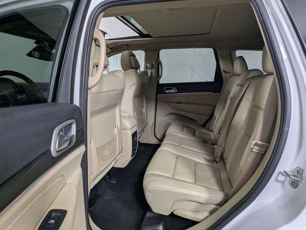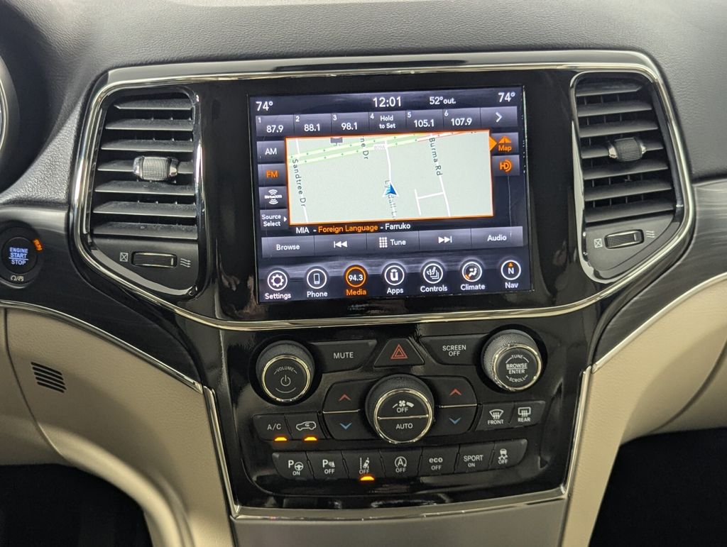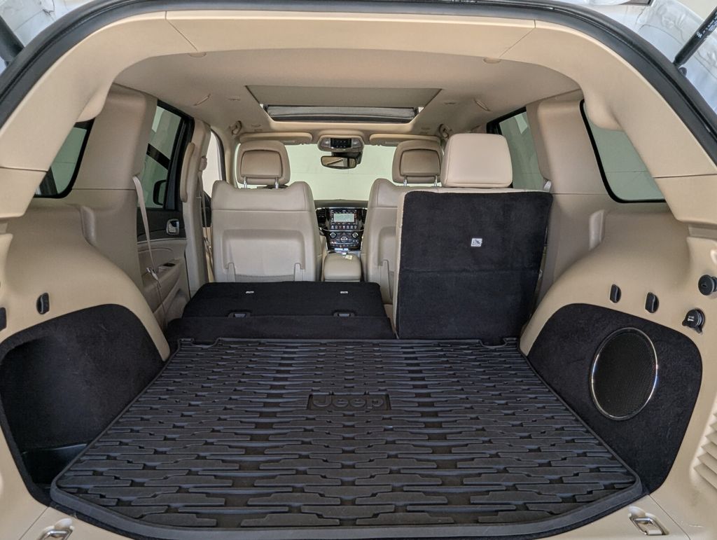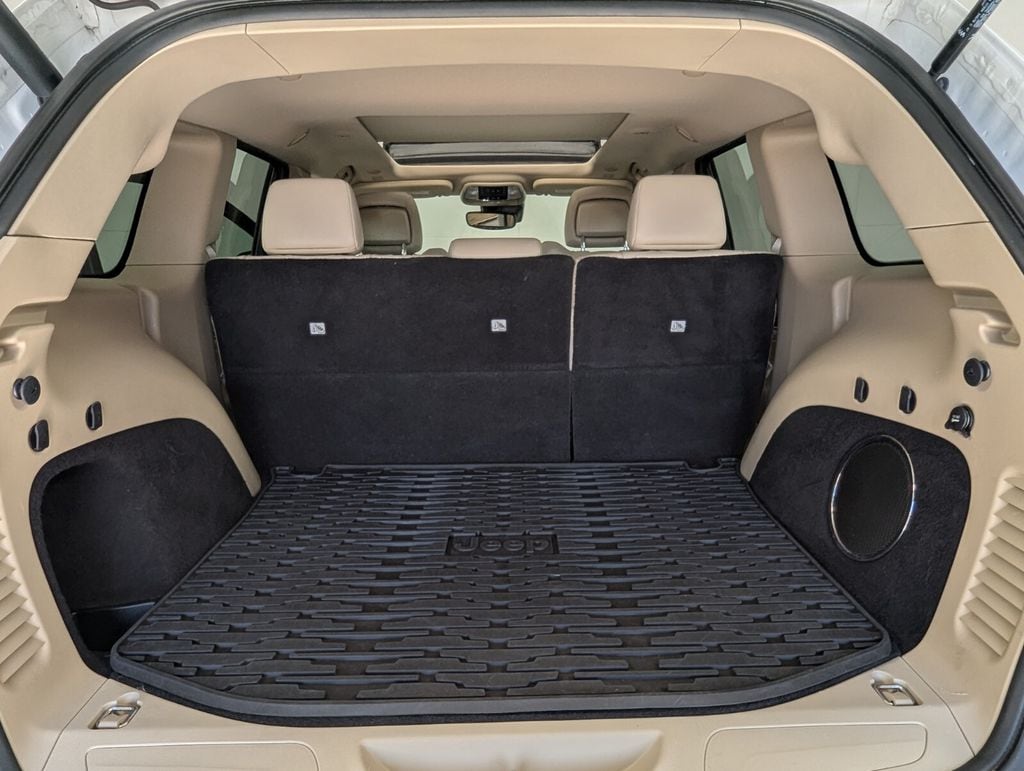 This Grand Cherokee is well equipped with Luxury Group II (506 Watt Amplifier, Active Noise Control System, Cargo Compartment Cover, Dual-Pane Panoramic Sunroof, Heated Second Row Seats, Leather Trimmed Seats w/Perforated Inserts, Power Tilt/Telescope Steering Column, Premium Alpine Speaker System, Rain Sensitive Windshield Wipers, and Ventilated Front Seats), Protech II (Adaptive Cruise Control w/Stop, Advanced Brake Assist, Full Speed FWD Collision Warn Plus, Lane Departure Warning Plus, and Parallel & Perp Park Assist w/Stop), Quick Order Package 2BH, 1-Year SiriusXM Guardian Trial, 3.27 Rear Axle Ratio, 4-Wheel Disc Brakes, 4G LTE Wi-Fi Hot Spot, 6 Speakers, 8.4" Touchscreen Display, ABS brakes, Air Conditioning, Alloy wheels, AM/FM radio: SiriusXM, Anti-whiplash front head restraints, Apple CarPlay, Apple CarPlay/Android Auto, Audio memory, Auto-dimming door mirrors, Auto-dimming Rear-View mirror, Automatic temperature control, Brake assist, Bumpers: body-color, Compass, Delay-off headlights, Driver door bin, Driver vanity mirror, Dual front impact airbags, Dual front side impact airbags, Eco Suspension I, Electronic Stability Control, Emergency communication system: SiriusXM Guardian, Four wheel independent suspension, Front anti-roll bar, Front Bucket Seats, Front Center Armrest w/Storage, Front dual zone A/C, Front fog lights, Front reading lights, Fully automatic headlights, Garage door transmitter, Google Android Auto, GPS Antenna Input, GPS Navigation, HD Radio, Heated door mirrors, Heated front seats, Heated steering wheel, Illuminated entry, Integrated Center Stack Radio, Integrated Voice Command w/Bluetooth, Knee airbag, Leather Shift Knob, Leather Trimmed Bucket Seats, Low tire pressure warning, Memory seat, Navigation System/ GPS, Occupant sensing airbag, Outside temperature display, Overhead airbag, Overhead console, Panic alarm, ParkView Rear Back-Up Camera, Passenger door bin, Passenger vanity mirror, Power door mirrors, Power driver seat, Power Liftgate, Power moonroof, Power passenger seat, Power steering, Power windows, Radio data system, Radio: Uconnect 4C Nav w/8.4" Display, Rear anti-roll bar, Rear reading lights, Rear seat center armrest, Rear window defroster, Rear window wiper, Remote keyless entry, Security system, SiriusXM Satellite Radio, SiriusXM Traffic Plus, SiriusXM Travel Link, Speed control, Speed-sensing steering, Speed-Sensitive Wipers, Split folding rear seat, Spoiler, Steering wheel mounted audio controls, Tachometer, Telescoping steering wheel, Tilt steering wheel, Traction control, Trip computer, Turn signal indicator mirrors, USB Host Flip, Variably intermittent wipers, Wheels: 18" x 8.0" Tech Gray Aluminum (DISC), and Wheels: 18" x 8.0" Tech Gray Diamond Cut.