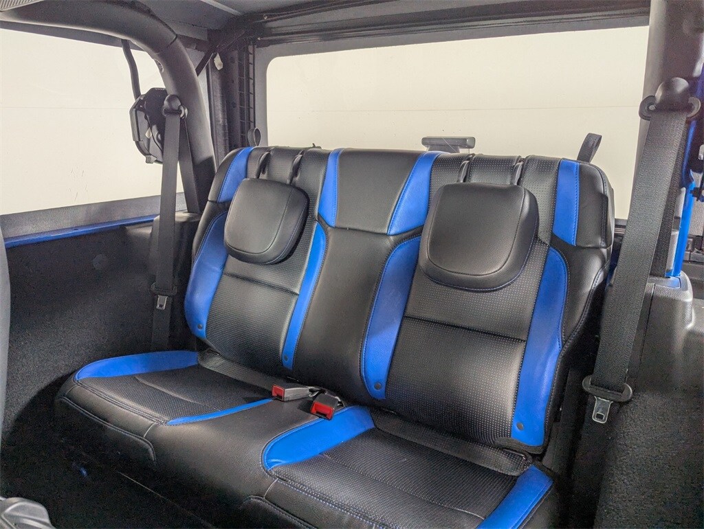 This Wrangler is well equipped with Quick Order Package 22B, 110 mph Vehicle Max Speed Calibration, 3.45 Rear Axle Ratio, 4-Wheel Disc Brakes, 8 Speakers, ABS brakes, Air Conditioning, AM/FM radio, Brake assist, Cloth Low-Back Bucket Seats, Compass, Delay-off headlights, Driver door bin, Driver vanity mirror, Dual front impact airbags, Dual front side impact airbags, Electronic Stability Control, For More Info Call 800-643-2112, Front anti-roll bar, Front Bucket Seats, Front Center Armrest w/Storage, Front fog lights, Front reading lights, Integrated roll-over protection, Leather Seats w/Cloth Inserts (DISC), Low tire pressure warning, Normal Duty Suspension, Occupant sensing airbag, Outside temperature display, ParkView Rear Back-Up Camera, Passenger door bin, Passenger vanity mirror, Power steering, R1234YF A/C Refrigerant, Radio data system, Radio: Uconnect 3 w/5" Display, Rear anti-roll bar, Rear reading lights, Side Steps, SiriusXM Radio Service, SiriusXM Satellite Radio, Speed control, Steering wheel mounted audio controls, Tachometer, Telescoping steering wheel, Tilt steering wheel, Traction control, Trip computer, Variably intermittent wipers, and Wheels: 17" x 7.5" Black Steel Styled.
