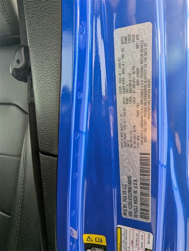 This Wrangler is well equipped with Altitude Package, Cold Weather Group (Heated Front Seats and Heated Steering Wheel), Quick Order Package 23L Altitude (Black Interior Accents, Black Trail Rated Badge, Body Color 3-Piece Hard Top, Body Color Grille w/Gloss Black Rings, Leather Trimmed Bucket Seats, Leather Wrapped Park Brake Handle, Leather Wrapped Shift Knob, Matte Black Jeep Badge, Mold In Color Bumper w/Gloss Black, MOPAR Hardtop Headliner, Wheels: 18" x 7.5" Gloss Black Aluminum, and Wizard Black Instrument Panel Bezels), FCA US LLC Certified Pre-Owned Certified, 3.45 Rear Axle Ratio, 4-Wheel Disc Brakes, 8 Speakers, ABS brakes, Air Conditioning, Alloy wheels, AM/FM radio: SiriusXM, Apple CarPlay, Apple CarPlay/Android Auto, Automatic temperature control, Aux Battery, Brake assist, Cloth Low-Back Bucket Seats, Compass, Delay-off headlights, Driver door bin, Driver vanity mirror, Dual front impact airbags, Dual front side impact airbags, Electronic Stability Control, Front anti-roll bar, Front Bucket Seats, Front Center Armrest w/Storage, Front dual zone A/C, Front fog lights, Front License Plate Bracket, Front reading lights, Fully automatic headlights, Garage door transmitter, Google Android Auto, GPS Antenna Input, Heated door mirrors, Heavy Duty Suspension w/Gas Shocks, Illuminated entry, Integrated roll-over protection, Integrated Voice Command w/Bluetooth, Leather steering wheel, Low tire pressure warning, MOPAR All-Weather Floor Mats (DISC), MOPAR Plastic Door Sill Guards, Non-Lock Fuel Cap w/o Discriminator, Occupant sensing airbag, Outside temperature display, Panic alarm, ParkView Rear Back-Up Camera, Passenger door bin, Passenger vanity mirror, Power door mirrors, Power steering, Power Top Quarter Window Storage Bag, Power windows, Radio data system, Radio: Uconnect 4 w/7" Display, Rear anti-roll bar, Rear reading lights, Remote keyless entry, Remote Proximity Keyless Entry, Removable Rear Quarter Windows, Security system, Sky 1-Touch Power Top, Speed control, Split folding rear seat, Steering wheel mounted audio controls, Stop-Start Dual Battery System, Tachometer, Telescoping steering wheel, Tilt steering wheel, Traction control, Trip computer, Variably intermittent wipers, Voltmeter, and Wheels: 18" x 7.5" Polished w/Gray Spokes.