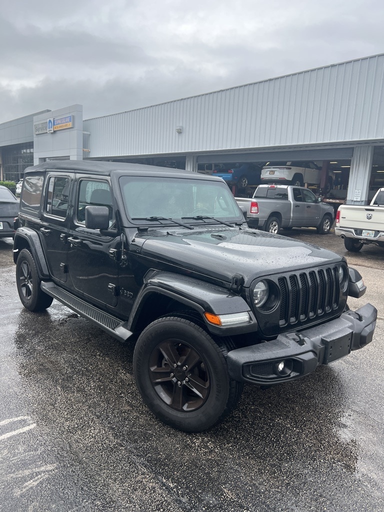 This Wrangler is well equipped with 8.4" Radio & Premium Audio Group (1-Year SiriusXM Guardian Trial, 4G LTE Wi-Fi Hot Spot, 5-Year SiriusXM Traffic Service, 5-Year SiriusXM Travel Link Service, 8.4" Touchscreen Display, Alpine Premium Audio System, Auto-Dimming Rear-View Mirror, Emergency/Assistance Call, For Details, Visit DriveUconnect.com, GPS Navigation, HD Radio, Radio: Uconnect 4C Nav w/8.4" Display, SiriusXM Traffic Plus, and SiriusXM Travel Link), Altitude Package, Cold Weather Group (Heated Front Seats and Heated Steering Wheel), Dual Top Group (Freedom Panel Storage Bag, Premium Black Sunrider Soft Top w/Dual Top Group, Rear Window Defroster, and Rear Window Wiper/Washer), LED Lighting Group (Daytime Running Lamps LED Accents, Front LED Fog Lamps, LED Premium Reflector Headlamps, and LED Taillamps), Quick Order Package 22L Altitude (Black Interior Accents, Black Trail Rated Badge, Body Color 3-Piece Hard Top, Body Color Grille w/Gloss Black Rings, Leather Trimmed Bucket Seats, Leather Wrapped Park Brake Handle, Leather Wrapped Shift Knob, Matte Black Jeep Badge, Mold In Color Bumper w/Gloss Black, MOPAR Hardtop Headliner, Wheels: 18" x 7.5" Gloss Black Aluminum, and Wizard Black Instrument Panel Bezels), Safety Group (Blind Spot & Cross Path Detection and ParkSense Rear Park Assist System), 3.45 Rear Axle Ratio, 4-Wheel Disc Brakes, 8 Speakers, ABS brakes, Air Conditioning, Alloy wheels, AM/FM radio: SiriusXM, Apple CarPlay, Apple CarPlay/Android Auto, Automatic temperature control, Aux Battery, Brake assist, Cloth Low-Back Bucket Seats, Compass, Delay-off headlights, Driver door bin, Driver vanity mirror, Dual front impact airbags, Dual front side impact airbags, Electronic Stability Control, Front anti-roll bar, Front Bucket Seats, Front Center Armrest w/Storage, Front dual zone A/C, Front fog lights, Front License Plate Bracket, Front reading lights, Fully automatic headlights, Garage door transmitter, Google Android Auto, GPS Antenna Input, Heated door mirrors, Heavy Duty Suspension w/Gas Shocks, Illuminated entry, Integrated roll-over protection, Integrated Voice Command w/Bluetooth, Leather steering wheel, Low tire pressure warning, MOPAR All-Weather Floor Mats (DISC), Non-Lock Fuel Cap w/o Discriminator, Occupant sensing airbag, Outside temperature display, Panic alarm, ParkView Rear Back-Up Camera, Passenger door bin, Passenger vanity mirror, Power door mirrors, Power steering, Power windows, Radio data system, Radio: Uconnect 4 w/7" Display, Rear anti-roll bar, Rear reading lights, Remote keyless entry, Remote Start System, Security system, Speed control, Split folding rear seat, Steering wheel mounted audio controls, Stop-Start Dual Battery System, Tachometer, Telescoping steering wheel, Tilt steering wheel, Traction control, Trip computer, Variably intermittent wipers, Voltmeter, and Wheels: 18" x 7.5" Polished w/Gray Spokes.