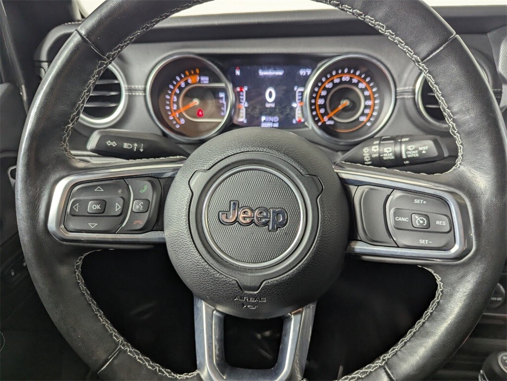 This Wrangler is well equipped with Cold Weather Group (Heated Front Seats and Heated Steering Wheel), LED Lighting Group (Daytime Running Lamps LED Accents, Front LED Fog Lamps, LED Premium Reflector Headlamps, and LED Taillamps), Quick Order Package 22G, FCA US LLC Certified Pre-Owned Certified, 110 MPH Vehicle Max Speed Calibration, 3.45 Rear Axle Ratio, 4-Wheel Disc Brakes, 9 Speakers, ABS brakes, Air Conditioning, Alloy wheels, AM/FM radio: SiriusXM, Apple CarPlay/Android Auto, Auto-dimming Rear-View mirror, Automatic temperature control, Aux Battery, Body Color 3-Piece Hard Top, Brake assist, Cloth Low-Back Bucket Seats, Compass, Delay-off headlights, Driver door bin, Driver vanity mirror, Dual front impact airbags, Dual front side impact airbags, Electronic Stability Control, Emergency communication system: SiriusXM Guardian, Engine Oil Cooler, Freedom Panel Storage Bag, Front anti-roll bar, Front Bucket Seats, Front Center Armrest w/Storage, Front dual zone A/C, Front fog lights, Front reading lights, Fully automatic headlights, Garage door transmitter, Heated door mirrors, Heavy Duty Suspension w/Gas Shocks, Illuminated entry, Integrated roll-over protection, Leather steering wheel, Low tire pressure warning, Manufacturer's Statement of Origin, Mopar Black Tubular Side Steps, Navigation System/ GPS, No Soft Top, Non-Lock Fuel Cap w/o Discriminator, Occupant sensing airbag, Outside temperature display, Panic alarm, ParkView Rear Back-Up Camera, Passenger door bin, Passenger vanity mirror, Power door mirrors, Power steering, Power windows, Radio data system, Radio: Uconnect 4C Nav w/8.4" Display, Rear anti-roll bar, Rear reading lights, Rear Window Defroster, Rear Window Wiper/Washer, Remote keyless entry, Remote Start System, Security system, Speed control, Split folding rear seat, Steering wheel mounted audio controls, Stop-Start Dual Battery System, Tachometer, Telescoping steering wheel, Tilt steering wheel, Traction control, Trip computer, Variably intermittent wipers, Voltmeter, and Wheels: 18" x 7.5" Polished w/Gray Spokes.