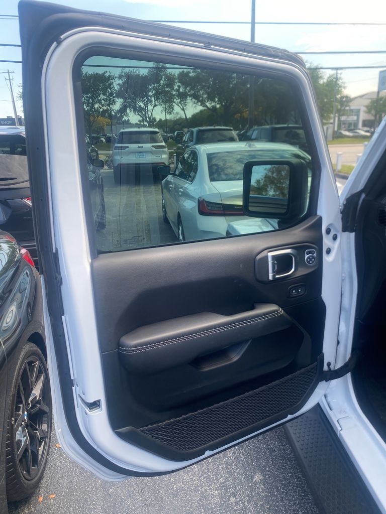 The Wrangler Sahara's striking white exterior, complemented by the body-color 3-piece hard top, exudes a bold and confident presence. Enhance your adventures with the included side steps and freedom panel storage bag, providing easy access and convenient storage.