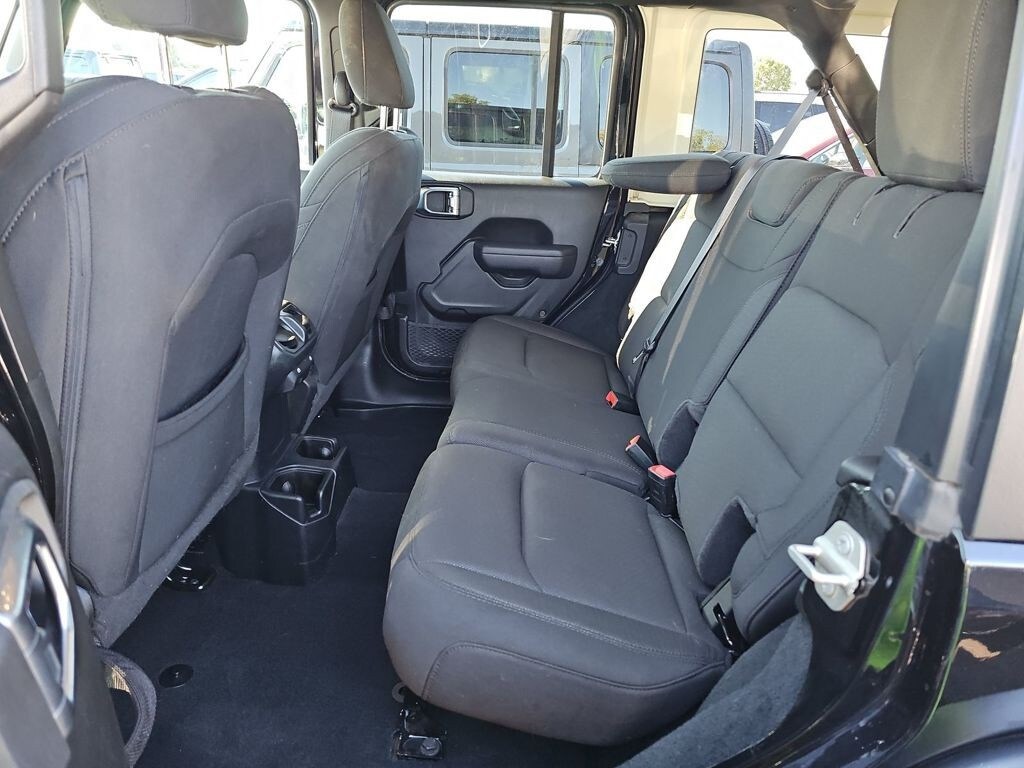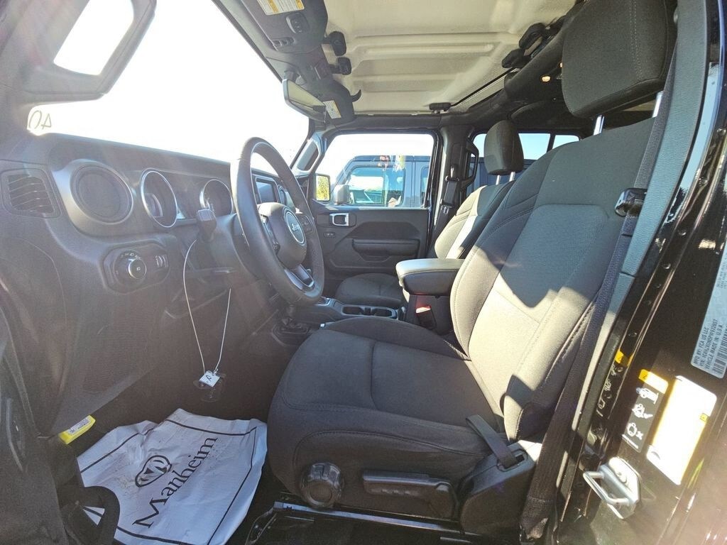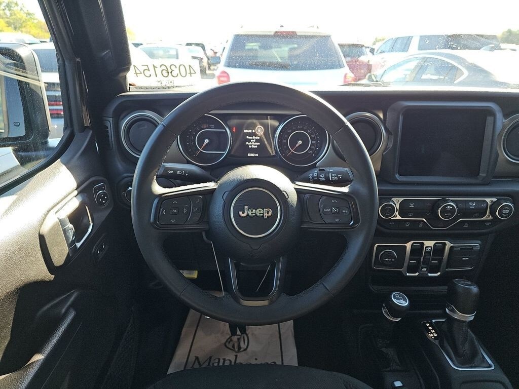 This Wrangler is well equipped with 8.4" Radio & Premium Audio Group (1-Year SiriusXM Guardian Trial, Alpine Premium Audio System, Apple CarPlay, Google Android Auto, GPS Antenna Input, GPS Navigation, Integrated Center Stack Radio, Integrated Voice Command w/Bluetooth, Radio: Uconnect 4C Nav w/8.4" Display, SiriusXM Satellite Radio, and USB Host Flip), Convenience Group, LED Headlamp & Fog Lamp Group, Quick Order Package 22W Willys (Wheels: 17" x 7.5" Black Aluminum), Technology Group (Cluster 7.0" TFT Color Display), 3.45 Overall Top Gear Ratio, 4-Wheel Disc Brakes, 8 Speakers, ABS brakes, Air Conditioning, AM/FM radio, Apple CarPlay/Android Auto, Aux Battery, Black 3-Piece Hard Top, Brake assist, Cloth Low-Back Bucket Seats, Compass, Delay-off headlights, Driver door bin, Driver vanity mirror, Dual front impact airbags, Dual front side impact airbags, Electronic Stability Control, Emergency communication system: SiriusXM Guardian, Engine Oil Cooler, Front anti-roll bar, Front Bucket Seats, Front Center Armrest w/Storage, Front fog lights, Front reading lights, Integrated roll-over protection, Low tire pressure warning, Non-Lock Fuel Cap w/o Discriminator, Normal Duty Suspension, Occupant sensing airbag, Outside temperature display, ParkView Rear Back-Up Camera, Passenger door bin, Passenger vanity mirror, Power steering, Radio data system, Radio: Uconnect 4 w/7" Display, Rear anti-roll bar, Rear reading lights, Speed control, Split folding rear seat, Steering wheel mounted audio controls, Stop-Start Dual Battery System, Tachometer, Telescoping steering wheel, Tilt steering wheel, Traction control, Trip computer, Variably intermittent wipers, and Wheels: 17" x 7.5" Black Steel Styled.