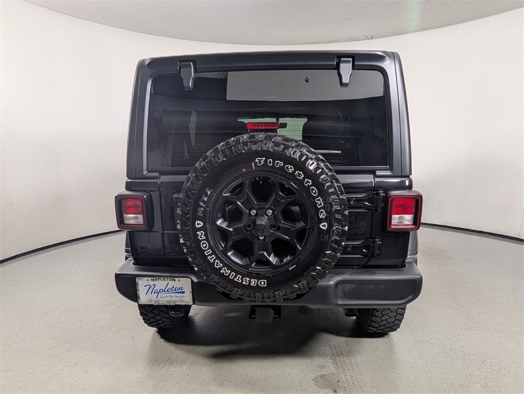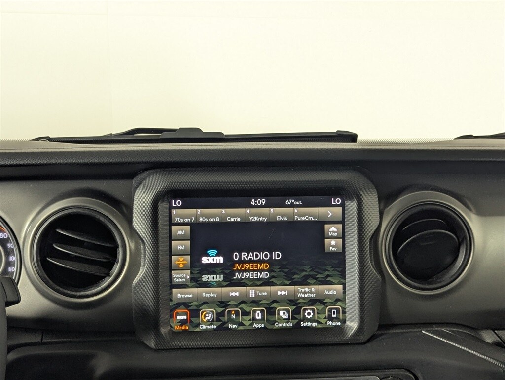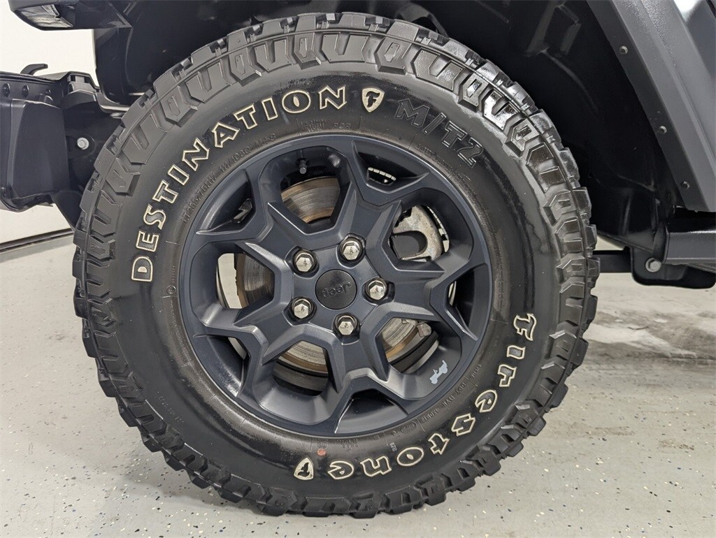 This Wrangler is well equipped with 8.4" Radio & Premium Audio Group (1-Year SiriusXM Guardian Trial, 220 Amp Alternator, 4G LTE Wi-Fi Hot Spot, 5-Year SiriusXM Traffic Service, 5-Year SiriusXM Travel Link Service, 8.4" Touchscreen Display, Alpine Premium Audio System, Apple CarPlay, Auto-Dimming Rear-View Mirror, Emergency/Assistance Call, Google Android Auto, GPS Antenna Input, GPS Navigation, HD Radio, Integrated Center Stack Radio, Integrated Voice Command w/Bluetooth, Off-Road Info Pages, Radio: Uconnect 4C Nav w/8.4" Display, SiriusXM Satellite Radio, SiriusXM Traffic Plus, SiriusXM Travel Link, and USB Host Flip), Convenience Group (Universal Garage Door Opener), LED Headlamp & Fog Lamp Group (Front LED Fog Lamps and LED Premium Reflector Headlamps), Quick Order Package 22W Willys (4-Wheel Drive Swing Gate Decal, Anti-Spin Differential Rear Axle, Automatic Headlamps, Black Grille, Deep Tint Sunscreen Windows, Front 1-Touch Down Power Windows, Mold In Color Bumper w/Gloss Black, MOPAR All-Weather Floor Mats, Power Heated Mirrors, Premium Wrapped Steering Wheel, Remote Keyless Entry, Security Alarm, Speed Sensitive Power Locks, Sun Visors w/Illuminated Vanity Mirrors, Wheels: 17" x 7.5" Black Aluminum, Willys, and Willys Hood Decal), Technology Group (2-Door Passive Entry, Front Door Locks, Air Conditioning w/Auto Temperature Control, Air Filtering, and Cluster 7.0" TFT Color Display), FCA US LLC Certified Pre-Owned Certified, 3.45 Overall Top Gear Ratio, 4-Wheel Disc Brakes, 8 Speakers, ABS brakes, Air Conditioning, AM/FM radio, Apple CarPlay/Android Auto, Aux Battery, Black 3-Piece Hard Top, Brake assist, Cloth Low-Back Bucket Seats, Compass, Delay-off headlights, Driver door bin, Driver vanity mirror, Dual front impact airbags, Dual front side impact airbags, Electronic Stability Control, Emergency communication system: SiriusXM Guardian, Engine Oil Cooler, Freedom Panel Storage Bag, Front anti-roll bar, Front Bucket Seats, Front Center Armrest w/Storage, Front fog lights, Front reading lights, Integrated roll-over protection, Low tire pressure warning, No Soft Top, Non-Lock Fuel Cap w/o Discriminator, Normal Duty Suspension, Occupant sensing airbag, Outside temperature display, ParkView Rear Back-Up Camera, Passenger door bin, Passenger vanity mirror, Power steering, Radio data system, Radio: Uconnect 4 w/7" Display, Rear anti-roll bar, Rear reading lights, Rear Window Defroster, Rear Window Wiper/Washer, Speed control, Split folding rear seat, Steering wheel mounted audio controls, Stop-Start Dual Battery System, Tachometer, Telescoping steering wheel, Tilt steering wheel, Traction control, Trip computer, Variably intermittent wipers, and Wheels: 17" x 7.5" Black Steel Styled.