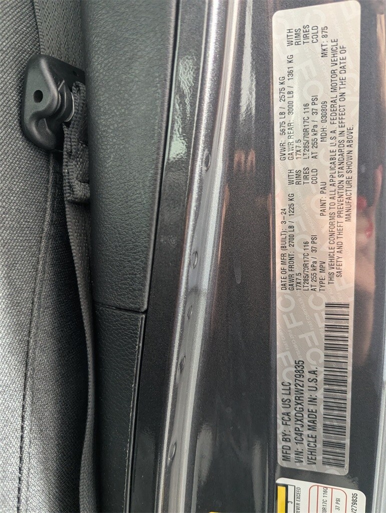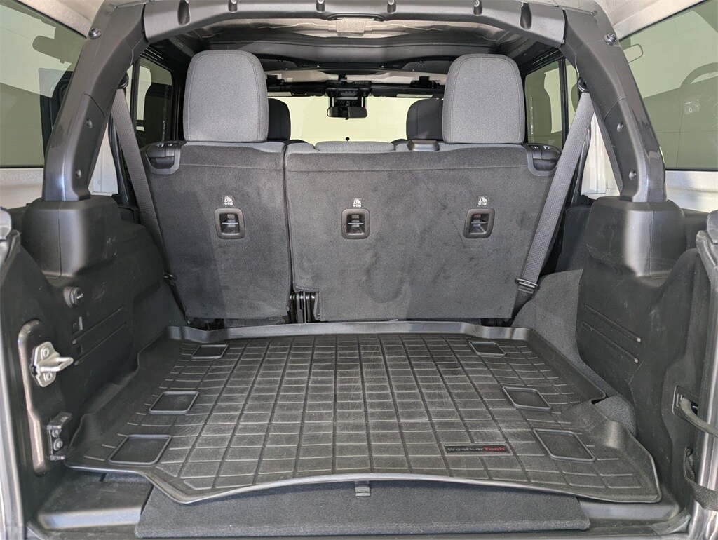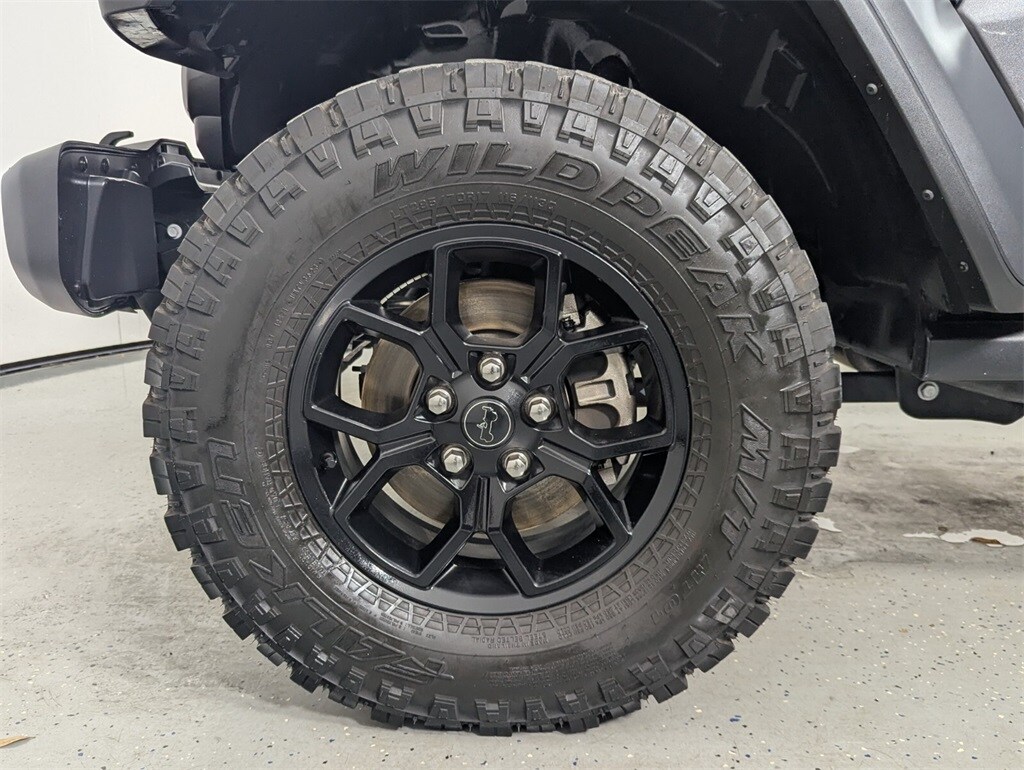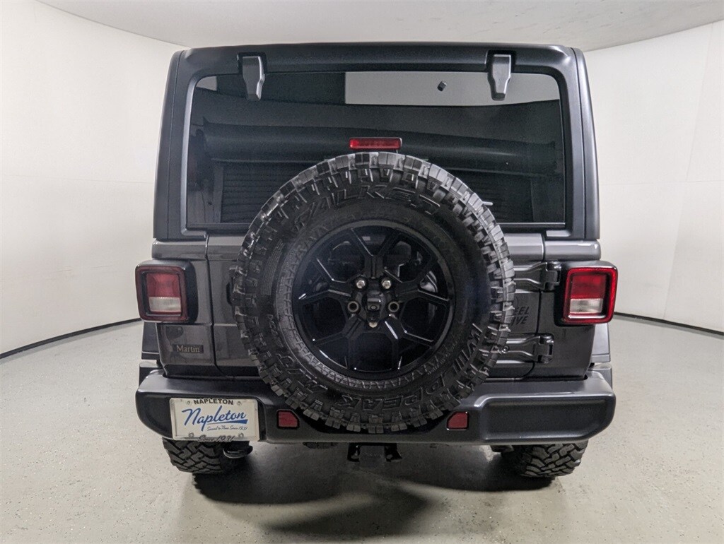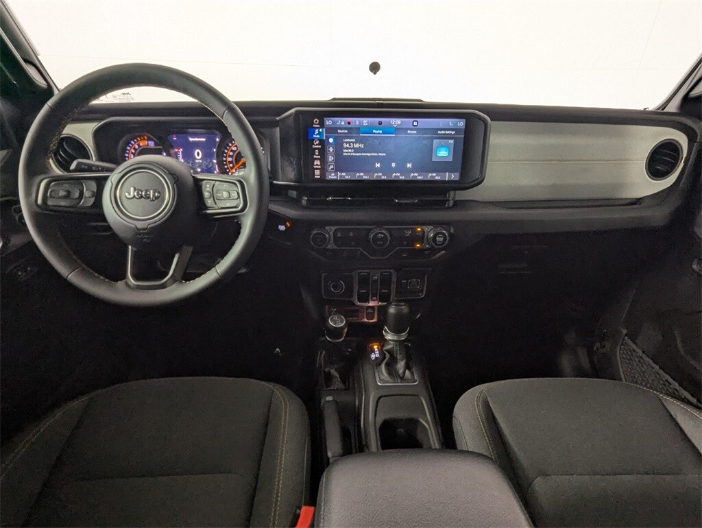 This Wrangler is well equipped with Convenience Group (2-Door Passive Entry, Front Door Locks, Air Conditioning w/Auto Temperature Control, Cluster 7.0" TFT Color Display, Emergency/Assistance Call, and Remote Start System), Quick Order Package 24W Willys (4.10 Rear Axle Ratio, Wheels: 17" x 7.5" Painted Black, and Willy's Suspension), FCA US LLC Certified Pre-Owned Certified, 110 MPH Vehicle Max Speed Calibration, 4-Wheel Disc Brakes, 8 Speakers, ABS brakes, Air Conditioning, AM/FM radio, Apple CarPlay/Android Auto, Aux Battery, Black 3-Piece Hard Top, Brake assist, Cloth Low-Back Bucket Seats, Compass, Delay-off headlights, Driver door bin, Driver vanity mirror, Dual front impact airbags, Dual front side impact airbags, Electronic Stability Control, Front anti-roll bar, Front Bucket Seats, Front Center Armrest w/Storage, Front fog lights, Front reading lights, Integrated roll-over protection, Low tire pressure warning, Non-Lock Fuel Cap w/o Discriminator, Normal Duty Suspension, Occupant sensing airbag, Outside temperature display, Overhead airbag, ParkView Rear Back-Up Camera, Passenger door bin, Passenger vanity mirror, Power steering, Radio data system, Radio: Uconnect 5 w/12.3" Display, Rear anti-roll bar, Rear reading lights, Speed control, Split folding rear seat, Steering wheel mounted audio controls, Stop-Start Dual Battery System, Tachometer, Telescoping steering wheel, Tilt steering wheel, Traction control, Trip computer, Variably intermittent wipers, and Wheels: 17" x 7.5" Black Steel Styled.