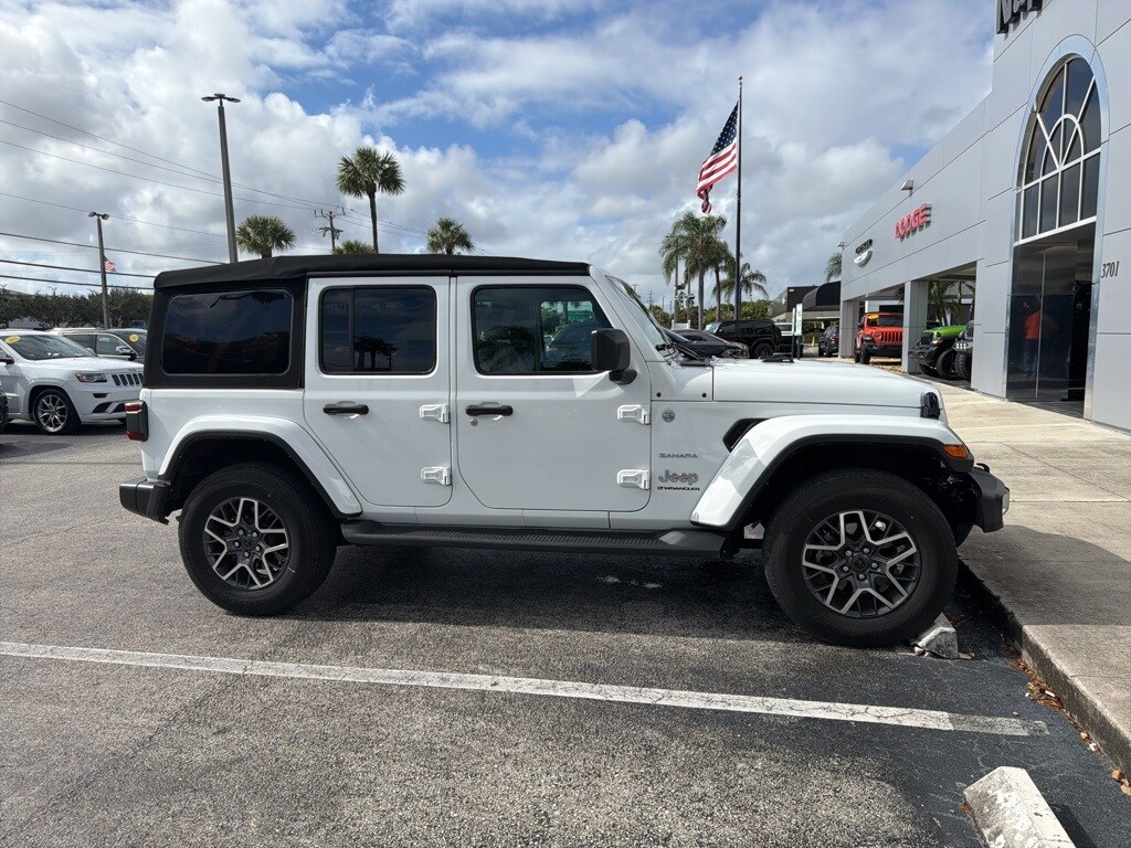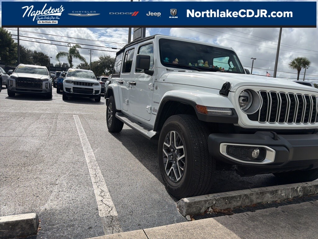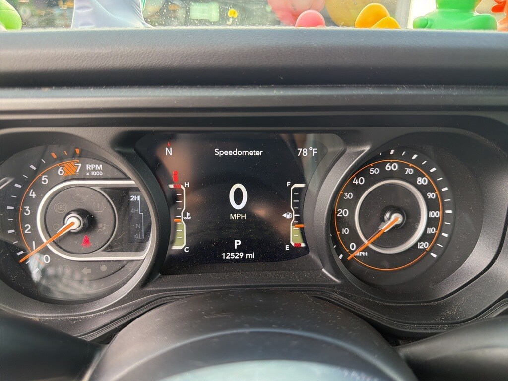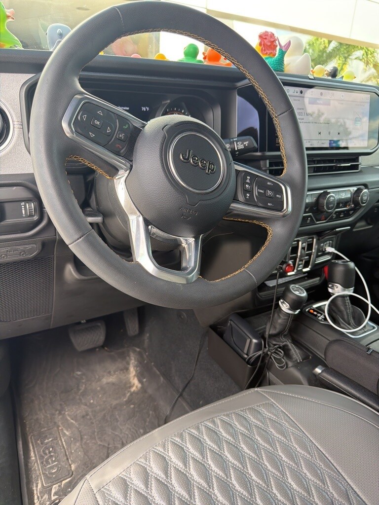 This Wrangler is well equipped with Quick Order Package 24G Sahara, Safety Group (Auto High Beam Headlamp Control, Blind Spot & Cross Path Detection, and ParkSense Rear Park Assist System), 110 MPH Vehicle Max Speed Calibration, 12.3" Touchscreen Display, 4-Wheel Disc Brakes, 8 Speakers, ABS brakes, Air Conditioning, Alloy wheels, AM/FM radio: SiriusXM, Apple CarPlay, Apple CarPlay/Android Auto, Automatic temperature control, Aux Battery, Brake assist, Cloth Low-Back Bucket Seats, Compass, Connectivity - US/Canada, Delay-off headlights, Disassociated Touchscreen Display, Driver door bin, Driver vanity mirror, Dual front impact airbags, Dual front side impact airbags, Electronic Stability Control, Emergency communication system: Jeep Connect, Front anti-roll bar, Front Bucket Seats, Front Center Armrest w/Storage, Front dual zone A/C, Front fog lights, Front reading lights, Fully automatic headlights, Google Android Auto, Heated door mirrors, Heated front seats, Heated steering wheel, Heavy Duty Suspension w/Gas Shocks, Illuminated entry, Integrated Center Stack Radio, Integrated roll-over protection, Integrated Voice Command w/Bluetooth, Low tire pressure warning, MOPAR All-Weather Floor Mats, Non-Lock Fuel Cap w/o Discriminator, Occupant sensing airbag, Outside temperature display, Overhead airbag, Panic alarm, ParkView Rear Back-Up Camera, Passenger door bin, Passenger vanity mirror, Power door mirrors, Power steering, Power windows, Radio data system, Radio: Uconnect 5 w/12.3" Display, Rear anti-roll bar, Rear reading lights, Remote keyless entry, Security system, Side Steps, Speed control, Split folding rear seat, Steering wheel mounted audio controls, Stop-Start Dual Battery System, Tachometer, Telescoping steering wheel, Tilt steering wheel, Traction control, Trip computer, Variably intermittent wipers, Voltmeter, and Wheels: 18" x 7.5" Machine/Painted Gray.
