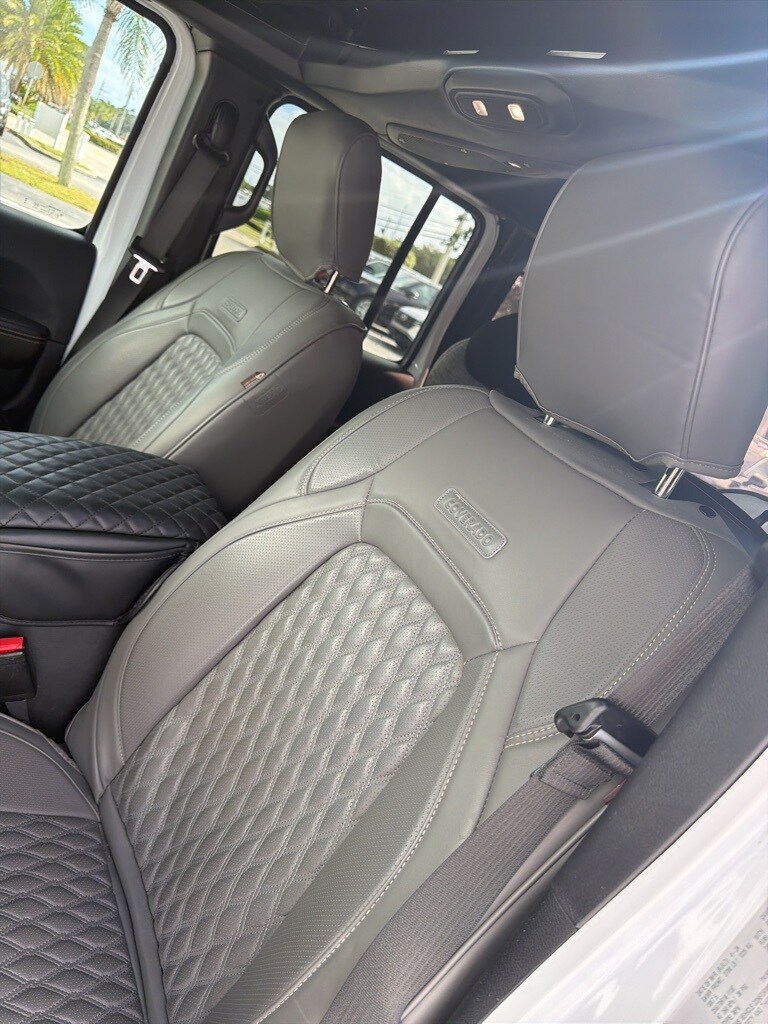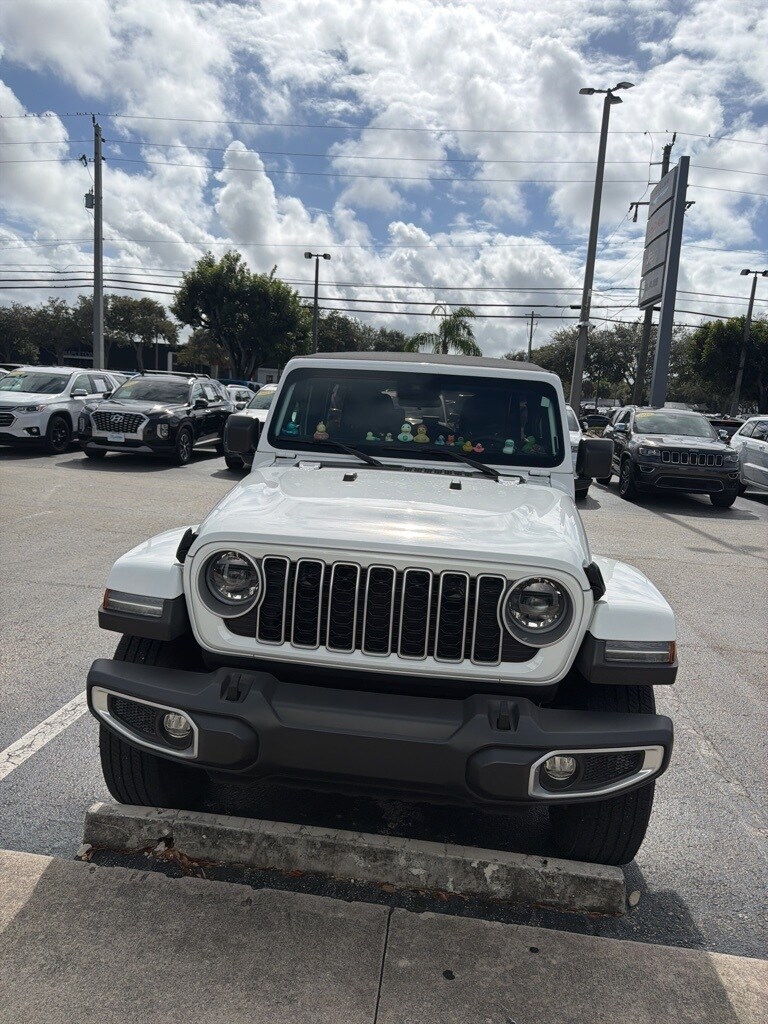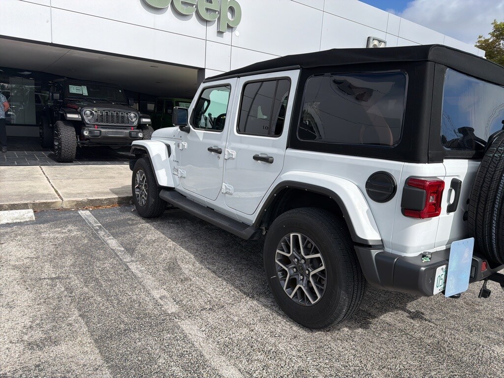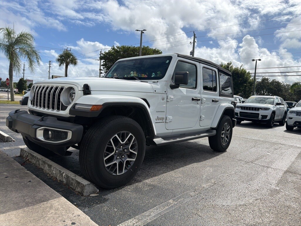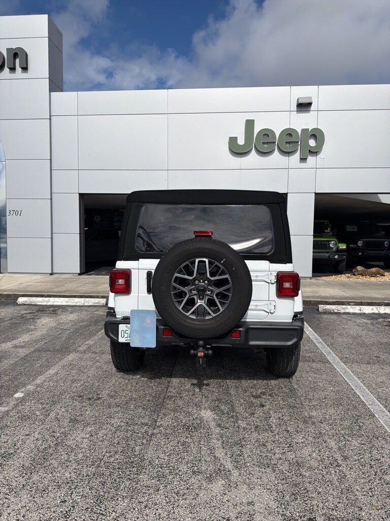 This Wrangler is well equipped with Quick Order Package 24G Sahara, Safety Group (Auto High Beam Headlamp Control, Blind Spot & Cross Path Detection, and ParkSense Rear Park Assist System), 110 MPH Vehicle Max Speed Calibration, 12.3" Touchscreen Display, 4-Wheel Disc Brakes, 8 Speakers, ABS brakes, Air Conditioning, Alloy wheels, AM/FM radio: SiriusXM, Apple CarPlay, Apple CarPlay/Android Auto, Automatic temperature control, Aux Battery, Brake assist, Cloth Low-Back Bucket Seats, Compass, Connectivity - US/Canada, Delay-off headlights, Disassociated Touchscreen Display, Driver door bin, Driver vanity mirror, Dual front impact airbags, Dual front side impact airbags, Electronic Stability Control, Emergency communication system: Jeep Connect, Front anti-roll bar, Front Bucket Seats, Front Center Armrest w/Storage, Front dual zone A/C, Front fog lights, Front reading lights, Fully automatic headlights, Google Android Auto, Heated door mirrors, Heated front seats, Heated steering wheel, Heavy Duty Suspension w/Gas Shocks, Illuminated entry, Integrated Center Stack Radio, Integrated roll-over protection, Integrated Voice Command w/Bluetooth, Low tire pressure warning, MOPAR All-Weather Floor Mats, Non-Lock Fuel Cap w/o Discriminator, Occupant sensing airbag, Outside temperature display, Overhead airbag, Panic alarm, ParkView Rear Back-Up Camera, Passenger door bin, Passenger vanity mirror, Power door mirrors, Power steering, Power windows, Radio data system, Radio: Uconnect 5 w/12.3" Display, Rear anti-roll bar, Rear reading lights, Remote keyless entry, Security system, Side Steps, Speed control, Split folding rear seat, Steering wheel mounted audio controls, Stop-Start Dual Battery System, Tachometer, Telescoping steering wheel, Tilt steering wheel, Traction control, Trip computer, Variably intermittent wipers, Voltmeter, and Wheels: 18" x 7.5" Machine/Painted Gray.