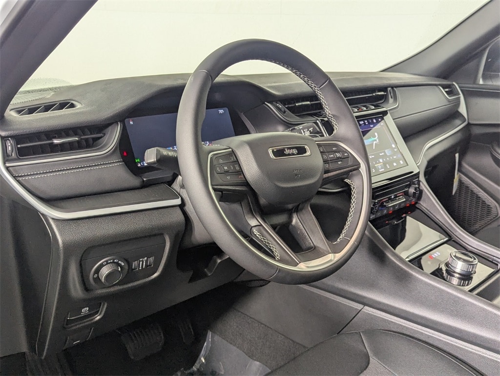 This Grand Cherokee L is well equipped with Quick Order Package 23D Laredo X (Laredo X and Power Sunroof), FCA US LLC Certified Pre-Owned Certified, 3.45 Rear Axle Ratio, 3rd row seats: split-bench, 4-Wheel Disc Brakes, 6 Speakers, ABS brakes, Air Conditioning, Alloy wheels, AM/FM radio: SiriusXM, Anti-whiplash front head restraints, Automatic temperature control, Brake assist, Bumpers: body-color, Cloth Seats, Compass, Delay-off headlights, Driver door bin, Driver vanity mirror, Dual front impact airbags, Dual front side impact airbags, Electronic Stability Control, Emergency communication system, Four wheel independent suspension, Front anti-roll bar, Front Bucket Seats, Front Center Armrest w/Storage, Front dual zone A/C, Front reading lights, Fully automatic headlights, Heated door mirrors, Illuminated entry, Knee airbag, Low tire pressure warning, Manual Fold Seatbacks, Model Year Tracking, Normal Duty Suspension, Occupant sensing airbag, Outside temperature display, Overhead airbag, Overhead console, Panic alarm, ParkView Rear Back-Up Camera, Passenger door bin, Passenger vanity mirror, Power door mirrors, Power driver seat, Power steering, Power windows, Radio data system, Rear air conditioning, Rear anti-roll bar, Rear reading lights, Rear window defroster, Rear window wiper, Reclining 3rd row seat, Remote keyless entry, Security system, Speed control, Speed-Sensitive Wipers, Split folding rear seat, Spoiler, Steering wheel mounted audio controls, Tachometer, Telescoping steering wheel, Tilt steering wheel, Traction control, Trip computer, Variably intermittent wipers, Voltmeter, and Wheels: 18" x 8.0" Fully Painted Aluminum.