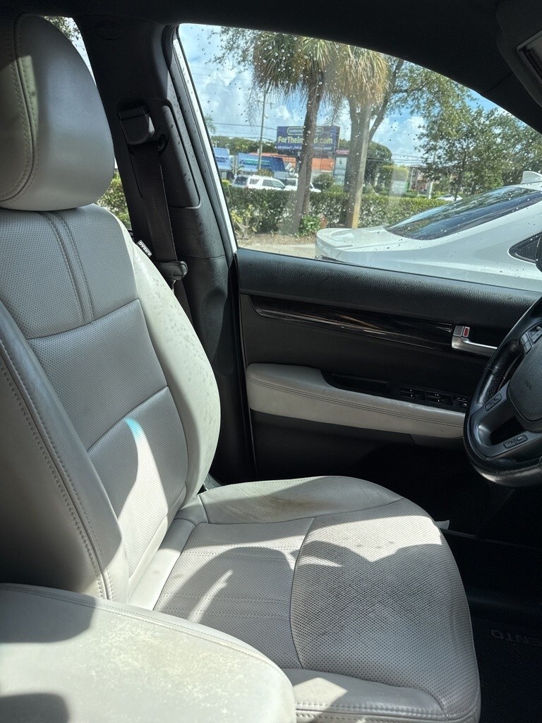 2014 Kia Sorento Limited V6 Beautifully finished in Snow White Pearl with Black Leather interior. 3.3L V6 DGI Dual CVVT 4D Sport Utility FWD 6-Speed Automatic with Sportmatic 10 Speakers, 3.04 Axle Ratio, 4-Wheel Disc Brakes, ABS brakes, Air Conditioning, Alloy wheels, AM/FM radio: SIRIUS, Anti-whiplash front head restraints, Auto-dimming Rear-View mirror, Automatic temperature control, Brake assist, Bumpers: body-color, CD player, Chrome wheels, Color Pack 4, Compass, Delay-off headlights, Driver door bin, Driver vanity mirror, Dual front impact airbags, Dual front side impact airbags, Electronic Stability Control, Exterior Parking Camera Rear, Four wheel independent suspension, Front anti-roll bar, Front Bucket Seats, Front Center Armrest, Front dual zone A/C, Front fog lights, Front reading lights, Fully automatic headlights, Garage door transmitter: HomeLink, Heated & Ventilated Front Bucket Seats, Heated door mirrors, Heated front seats, Heated rear seats, Heated steering wheel, High-Intensity Discharge Headlights, Illuminated entry, Leather steering wheel, Low tire pressure warning, Memory seat, Navigation System, Occupant sensing airbag, Outside temperature display, Overhead airbag, Overhead console, Panic alarm, Passenger door bin, Passenger vanity mirror, Power door mirrors, Power driver seat, Power Liftgate, Power moonroof, Power passenger seat, Power steering, Power windows, Premium Nappa Leather Seat Trim, Radio: AM/FM/CD/MP3 w/Navigation System, Rear air conditioning, Rear anti-roll bar, Rear Parking Sensors, Rear seat center armrest, Rear window defroster, Rear window wiper, Remote keyless entry, Roof rack: rails only, Speed control, Speed-sensing steering, Split folding rear seat, Spoiler, Steering wheel mounted audio controls, Tachometer, Telescoping steering wheel, Tilt steering wheel, Traction control, Trip computer, Turn signal indicator mirrors, Variably intermittent wipers, Ventilated front seats, Wheels: 19" x 7.5 Chrome Finish Alloy.