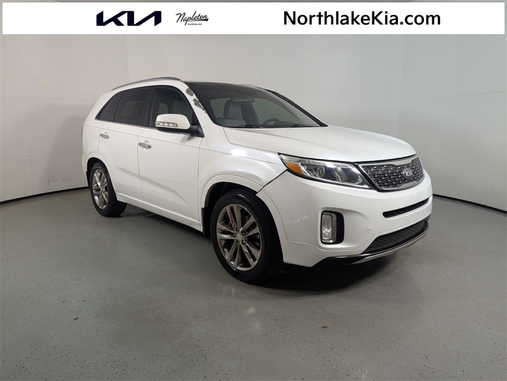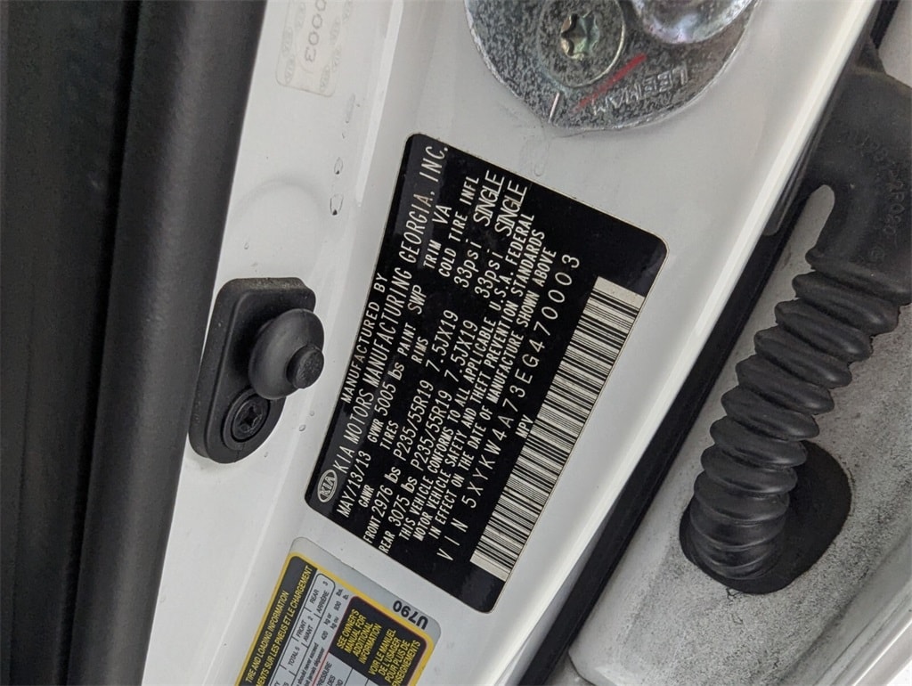 2014 Kia Sorento Limited V6 Beautifully finished in Snow White Pearl with Black Leather interior. 3.3L V6 DGI Dual CVVT 4D Sport Utility FWD 6-Speed Automatic with Sportmatic 10 Speakers, 3.04 Axle Ratio, 4-Wheel Disc Brakes, ABS brakes, Air Conditioning, Alloy wheels, AM/FM radio: SIRIUS, Anti-whiplash front head restraints, Auto-dimming Rear-View mirror, Automatic temperature control, Brake assist, Bumpers: body-color, CD player, Chrome wheels, Color Pack 4, Compass, Delay-off headlights, Driver door bin, Driver vanity mirror, Dual front impact airbags, Dual front side impact airbags, Electronic Stability Control, Exterior Parking Camera Rear, Four wheel independent suspension, Front anti-roll bar, Front Bucket Seats, Front Center Armrest, Front dual zone A/C, Front fog lights, Front reading lights, Fully automatic headlights, Garage door transmitter: HomeLink, Heated & Ventilated Front Bucket Seats, Heated door mirrors, Heated front seats, Heated rear seats, Heated steering wheel, High-Intensity Discharge Headlights, Illuminated entry, Leather steering wheel, Low tire pressure warning, Memory seat, Navigation System, Occupant sensing airbag, Outside temperature display, Overhead airbag, Overhead console, Panic alarm, Passenger door bin, Passenger vanity mirror, Power door mirrors, Power driver seat, Power Liftgate, Power moonroof, Power passenger seat, Power steering, Power windows, Premium Nappa Leather Seat Trim, Radio: AM/FM/CD/MP3 w/Navigation System, Rear air conditioning, Rear anti-roll bar, Rear Parking Sensors, Rear seat center armrest, Rear window defroster, Rear window wiper, Remote keyless entry, Roof rack: rails only, Speed control, Speed-sensing steering, Split folding rear seat, Spoiler, Steering wheel mounted audio controls, Tachometer, Telescoping steering wheel, Tilt steering wheel, Traction control, Trip computer, Turn signal indicator mirrors, Variably intermittent wipers, Ventilated front seats, Wheels: 19" x 7.5 Chrome Finish Alloy. Priced below KBB Fair Purchase Price!