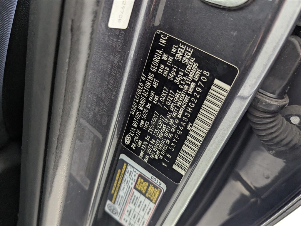 2017 Kia Sorento LX Beautifully finished in Platinum Graphite with Satin Black Cloth interior. 2.4L DOHC 4D Sport Utility FWD 6-Speed Automatic with Sportmatic 3.51 Axle Ratio, 4-Wheel Disc Brakes, 6 Speakers, ABS brakes, Air Conditioning, Alloy wheels, AM/FM radio: SiriusXM, Anti-whiplash front head restraints, Brake assist, Bumpers: body-color, Cargo Cover, Cargo Net, Carpet Floor Mats (5 Seat), CD player, Delay-off headlights, Driver door bin, Driver vanity mirror, Dual front impact airbags, Dual front side impact airbags, Electrochromatic Mirror w/HomeLink and Compass, Electronic Stability Control, Exterior Parking Camera Rear, Four wheel independent suspension, Front anti-roll bar, Front Bucket Seats, Front Center Armrest, Front reading lights, Heated door mirrors, Illuminated entry, Low tire pressure warning, Occupant sensing airbag, Outside temperature display, Overhead airbag, Overhead console, Panic alarm, Passenger door bin, Passenger vanity mirror, Power door mirrors, Power steering, Power windows, Radio: AM/FM/CD/MP3/SiriusXM, Rear anti-roll bar, Rear seat center armrest, Rear window defroster, Rear window wiper, Remote keyless entry, Roof rack: rails only, Security system, Speed control, Speed-sensing steering, Split folding rear seat, Spoiler, Steering wheel mounted audio controls, Tachometer, Telescoping steering wheel, Tilt steering wheel, Traction control, Trip computer, Turn signal indicator mirrors, Variably intermittent wipers, Wheels: 17" x 7.0 Alloy, YES Essentials Cloth Seat Trim. 21/28 City/Highway MPG