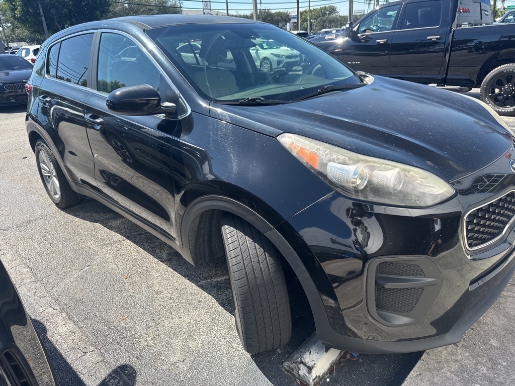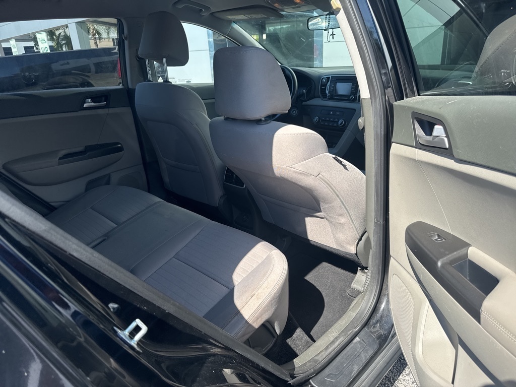 This Sportage is well equipped with 17" Alloy Wheels, 3.06 Axle Ratio, 4-Wheel Disc Brakes, 6 Speakers, ABS brakes, Air Conditioning, Alloy wheels, AM/FM radio: SiriusXM, Brake assist, Bumpers: body-color, Carpet Floor Mats, Cloth Seat Trim, Delay-off headlights, Driver door bin, Driver vanity mirror, Dual front impact airbags, Dual front side impact airbags, Electronic Stability Control, Exterior Parking Camera Rear, Four wheel independent suspension, Front anti-roll bar, Front Bucket Seats, Front Center Armrest, Front reading lights, Fully automatic headlights, Illuminated entry, Low tire pressure warning, Occupant sensing airbag, Outside temperature display, Overhead airbag, Overhead console, Panic alarm, Passenger door bin, Passenger vanity mirror, Power door mirrors, Power steering, Power windows, Radio: AM/FM/MP3/SiriusXM, Rear anti-roll bar, Rear seat center armrest, Rear window defroster, Rear window wiper, Remote keyless entry, Security system, Speed control, Speed-sensing steering, Split folding rear seat, Spoiler, Steering wheel mounted audio controls, Tachometer, Telescoping steering wheel, Tilt steering wheel, Traction control, Trip computer, Variably intermittent wipers, and Wheel Locks.