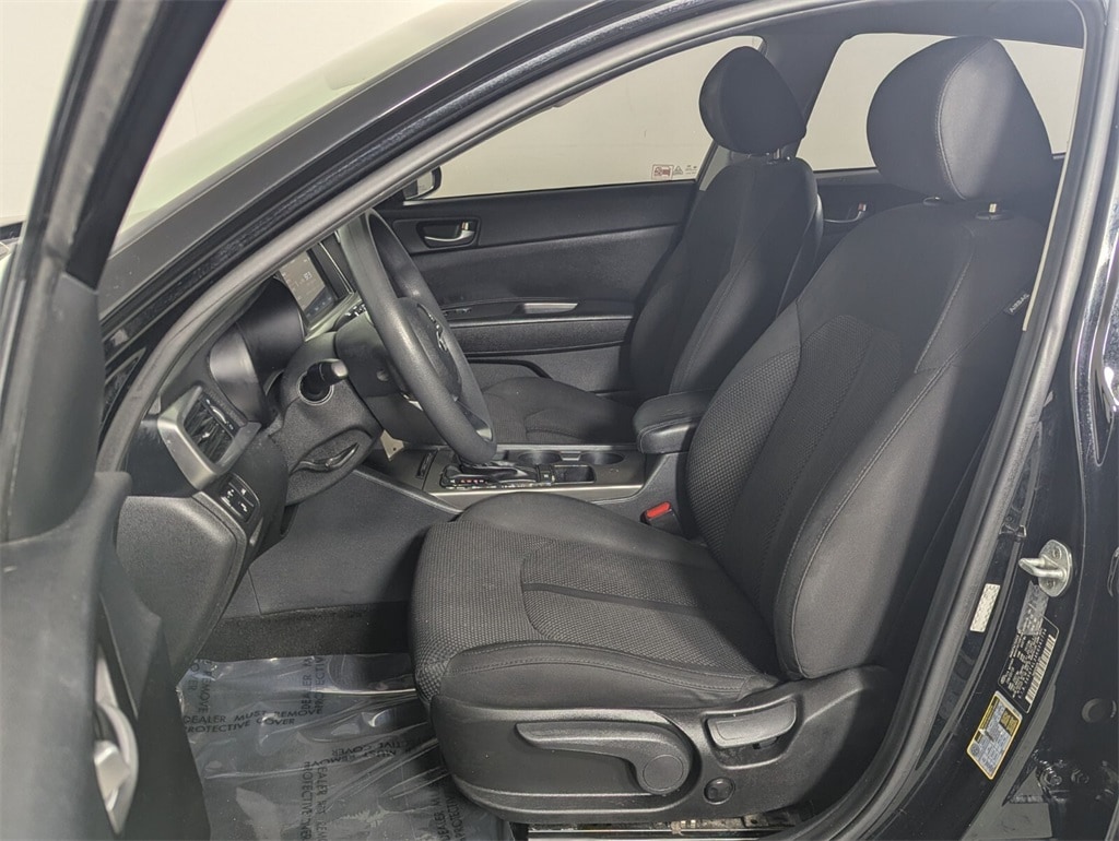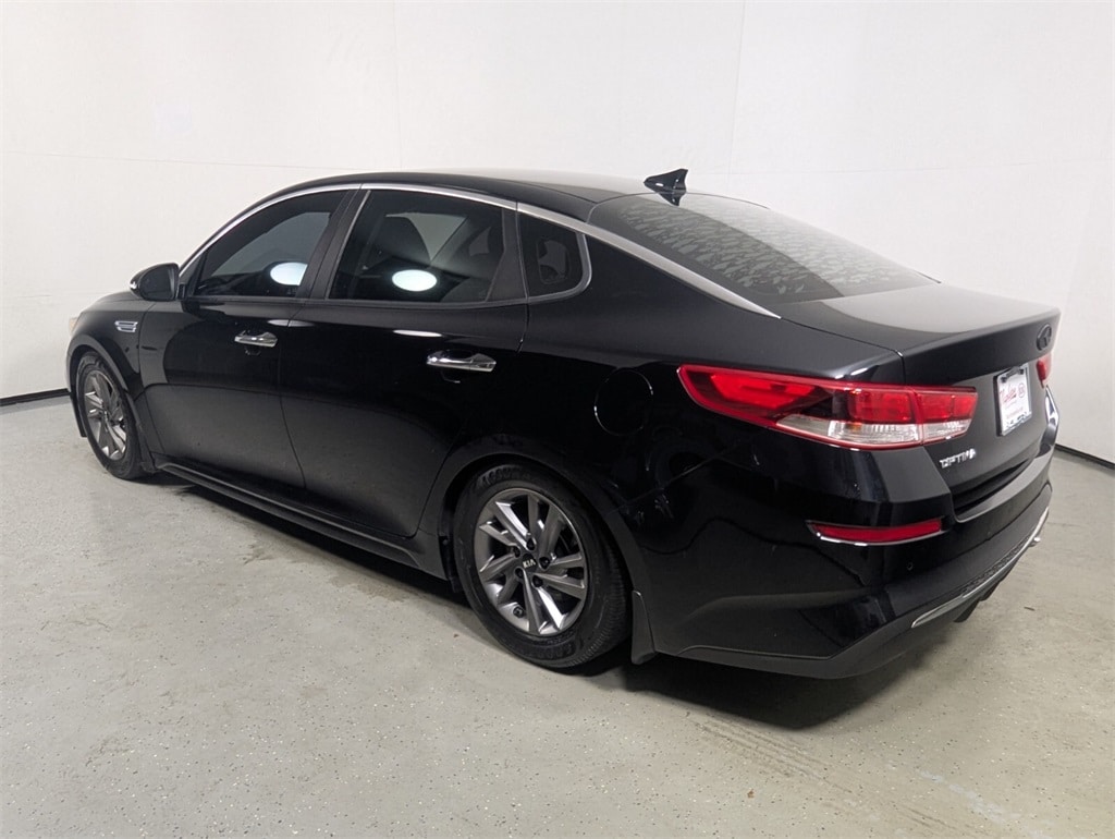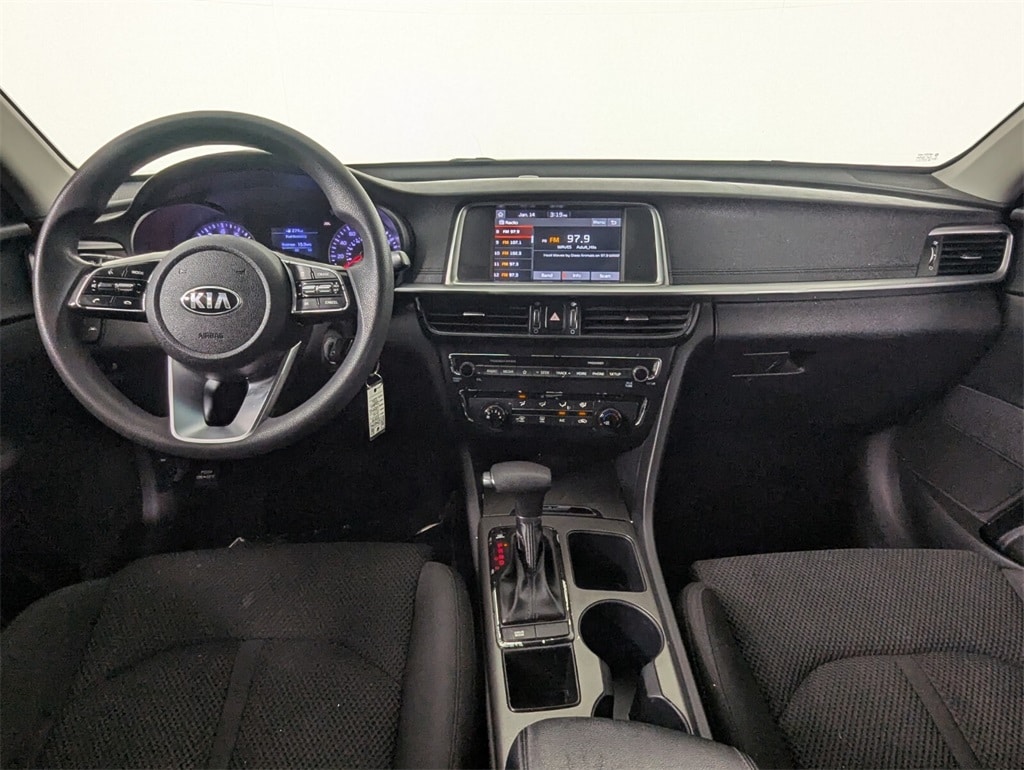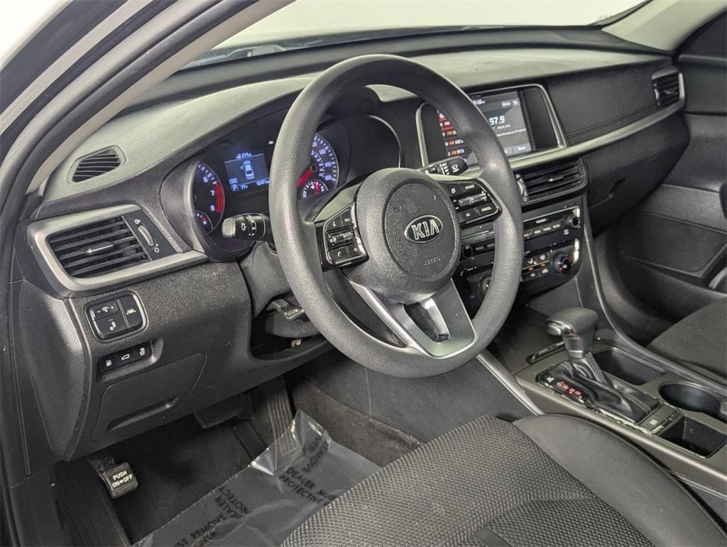 2019 Kia Optima LX Beautifully finished in Ebony Black with Black Cloth interior. 2.4L I4 DGI DOHC 4D Sedan FWD 6-Speed Automatic with Sportmatic Black Cloth, 4-Wheel Disc Brakes, 6 Speakers, 6.5J x 16" Silver Alloy Wheels, ABS brakes, Air Conditioning, Alloy wheels, AM/FM radio, Anti-whiplash front head restraints, Apple CarPlay & Android Auto, Auto High-beam Headlights, Brake assist, Bumpers: body-color, Carpet Floor Mats, Cloth Seat Trim, Delay-off headlights, Driver door bin, Driver vanity mirror, Dual front impact airbags, Dual front side impact airbags, Electronic Stability Control, Four wheel independent suspension, Front anti-roll bar, Front Bucket Seats, Front Center Armrest, Front reading lights, Fully automatic headlights, Heated door mirrors, Illuminated entry, Knee airbag, Low tire pressure warning, Occupant sensing airbag, Outside temperature display, Overhead airbag, Overhead console, Panic alarm, Passenger door bin, Passenger vanity mirror, Power door mirrors, Power steering, Power windows, Radio data system, Radio: AM/FM/MP3 Audio System, Rear anti-roll bar, Rear seat center armrest, Rear window defroster, Remote keyless entry, Security system, Speed control, Speed-sensing steering, Split folding rear seat, Steering wheel mounted audio controls, Tachometer, Telescoping steering wheel, Tilt steering wheel, Traction control, Trip computer, Turn signal indicator mirrors, Variably intermittent wipers, Black Cloth. CARFAX One-Owner. 24/33 City/Highway MPG