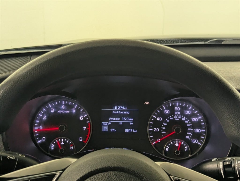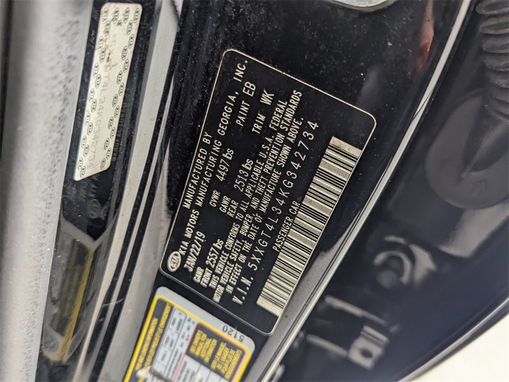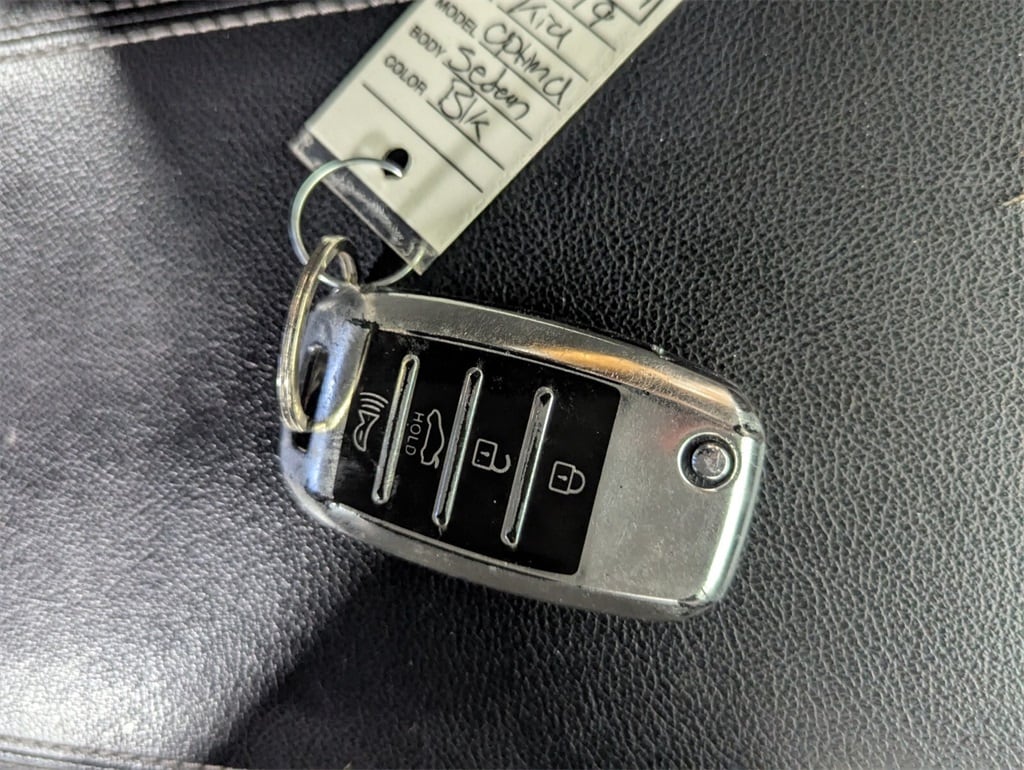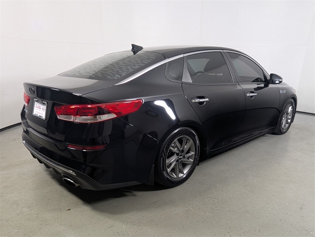 2019 Kia Optima LX Beautifully finished in Ebony Black with Black Cloth interior. 2.4L I4 DGI DOHC 4D Sedan FWD 6-Speed Automatic with Sportmatic Black Cloth, 4-Wheel Disc Brakes, 6 Speakers, 6.5J x 16" Silver Alloy Wheels, ABS brakes, Air Conditioning, Alloy wheels, AM/FM radio, Anti-whiplash front head restraints, Apple CarPlay & Android Auto, Auto High-beam Headlights, Brake assist, Bumpers: body-color, Carpet Floor Mats, Cloth Seat Trim, Delay-off headlights, Driver door bin, Driver vanity mirror, Dual front impact airbags, Dual front side impact airbags, Electronic Stability Control, Four wheel independent suspension, Front anti-roll bar, Front Bucket Seats, Front Center Armrest, Front reading lights, Fully automatic headlights, Heated door mirrors, Illuminated entry, Knee airbag, Low tire pressure warning, Occupant sensing airbag, Outside temperature display, Overhead airbag, Overhead console, Panic alarm, Passenger door bin, Passenger vanity mirror, Power door mirrors, Power steering, Power windows, Radio data system, Radio: AM/FM/MP3 Audio System, Rear anti-roll bar, Rear seat center armrest, Rear window defroster, Remote keyless entry, Security system, Speed control, Speed-sensing steering, Split folding rear seat, Steering wheel mounted audio controls, Tachometer, Telescoping steering wheel, Tilt steering wheel, Traction control, Trip computer, Turn signal indicator mirrors, Variably intermittent wipers, Black Cloth. CARFAX One-Owner. 24/33 City/Highway MPG