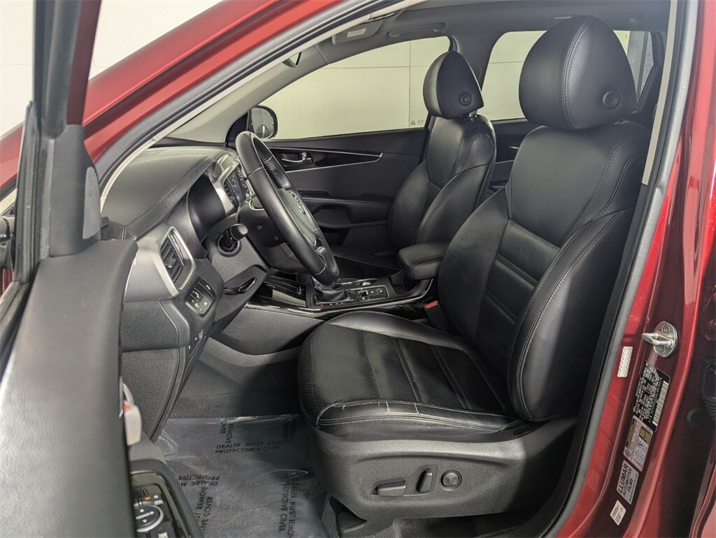 2020 Kia Sorento EX Beautifully finished in Passion Red with Black Leather interior. V6 4D Sport Utility FWD 8-Speed Automatic 3.32 Axle Ratio, 3rd row seats: split-bench, 4-Wheel Disc Brakes, 6 Speakers, ABS brakes, Air Conditioning, Alloy wheels, AM/FM radio, Apple CarPlay & Android Auto, Auto Dimming Mirror w/Homelink & Compass, Automatic temperature control, Brake assist, Bumpers: body-color, Cargo Mat (7 Seat), Carpeted Floor Mats (7-Passenger), Delay-off headlights, Driver door bin, Driver vanity mirror, Dual front impact airbags, Dual front side impact airbags, Electronic Stability Control, Exterior Parking Camera Rear, Four wheel independent suspension, Front anti-roll bar, Front Bucket Seats, Front Center Armrest, Front dual zone A/C, Front fog lights, Front reading lights, Fully automatic headlights, Heated door mirrors, Heated Front Bucket Seats, Heated front seats, Illuminated entry, Leather Seat Trim, Leather Shift Knob, Leather steering wheel, Low tire pressure warning, Occupant sensing airbag, Outside temperature display, Overhead airbag, Overhead console, Panic alarm, Passenger door bin, Passenger vanity mirror, Power door mirrors, Power driver seat, Power Liftgate, Power moonroof, Power steering, Power windows, Radio data system, Radio: AM/FM/MP3 Audio System, Rear air conditioning, Rear anti-roll bar, Rear reading lights, Rear seat center armrest, Rear window defroster, Rear window wiper, Remote keyless entry, Roof rack: rails only, Security system, Speed control, Speed-sensing steering, Split folding rear seat, Spoiler, Steering wheel mounted audio controls, Tachometer, Telescoping steering wheel, Tilt steering wheel, Traction control, Trip computer, Turn signal indicator mirrors, Variably intermittent wipers, Wheels: 19" x 7.5" Sport Black Alloy. 19/26 City/Highway MPG
