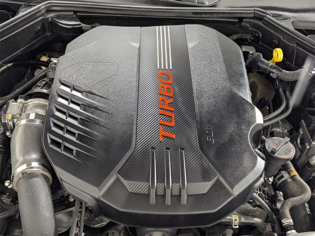 This Stinger is well equipped with Red Interior Color Package (Red Leather Seat Trim), 15 Speakers, 4-Wheel Disc Brakes, ABS brakes, Adaptive suspension, Air Conditioning, Alloy wheels, AM/FM radio: SiriusXM, Anti-whiplash front head restraints, Apple CarPlay & Android Auto, Auto High-beam Headlights, Auto tilt-away steering wheel, Auto-dimming door mirrors, Auto-dimming Rear-View mirror, Automatic temperature control, Brake assist, Bumpers: body-color, Carpeted Floor Mat, Compass, Delay-off headlights, Driver door bin, Driver vanity mirror, Dual front impact airbags, Dual front side impact airbags, Electronic Stability Control, Emergency communication system: UVO eServices, Four wheel independent suspension, Front anti-roll bar, Front Bucket Seats, Front Center Armrest, Front dual zone A/C, Front reading lights, Fully automatic headlights, Garage door transmitter: HomeLink, Heads-Up Display, Heated & Ventilated Front Bucket Seats, Heated door mirrors, Heated front seats, Heated rear seats, Heated steering wheel, Illuminated entry, Knee airbag, Low tire pressure warning, Memory seat, Nappa Leather Seat Trim, Navigation System/ GPS, Occupant sensing airbag, Outside temperature display, Overhead airbag, Overhead console, Panic alarm, Passenger door bin, Passenger vanity mirror, Power door mirrors, Power driver seat, Power Liftgate, Power moonroof, Power passenger seat, Power steering, Power windows, Radio: AM/FM/MP3/HD/SiriusXM harman/kardon Audio, Rain sensing wipers, Rear air conditioning, Rear anti-roll bar, Rear reading lights, Rear seat center armrest, Rear window defroster, Remote keyless entry, Security system, Speed control, Speed-sensing steering, Speed-Sensitive Wipers, Split folding rear seat, Sport steering wheel, Steering wheel memory, Steering wheel mounted audio controls, Tachometer, Telescoping steering wheel, Tilt steering wheel, Traction control, Trip computer, Turn signal indicator mirrors, Variably intermittent wipers, Ventilated front seats, and Wheels: 19" x 8.0 Front & 19" x 8.5 Rear Alloy.
