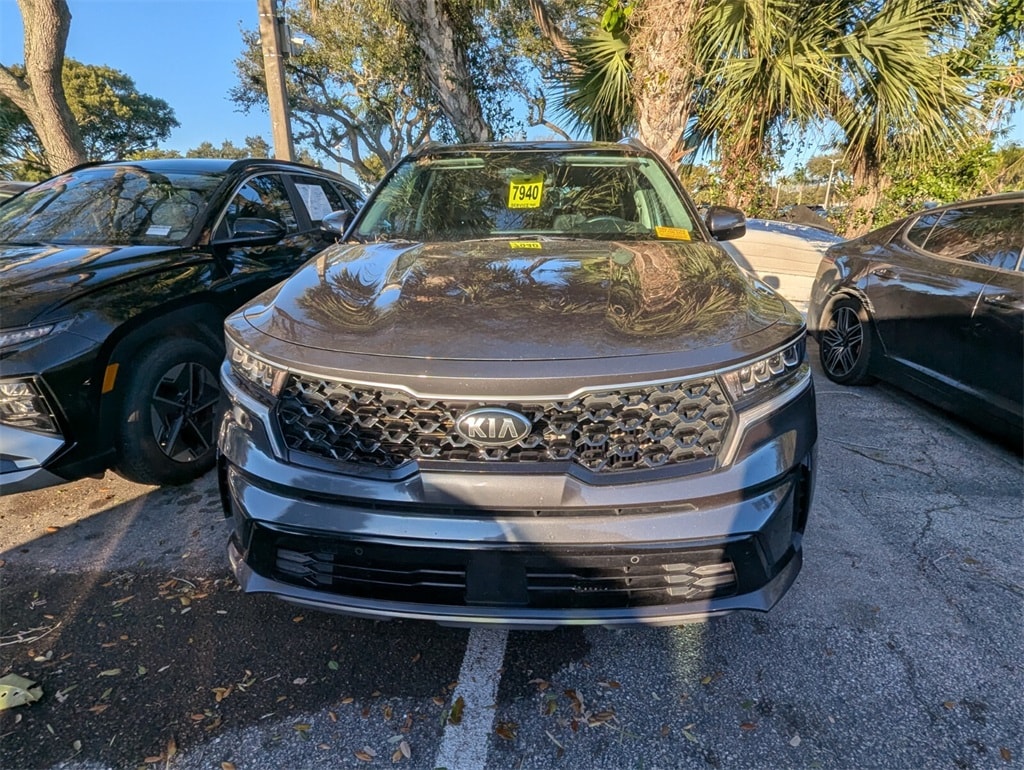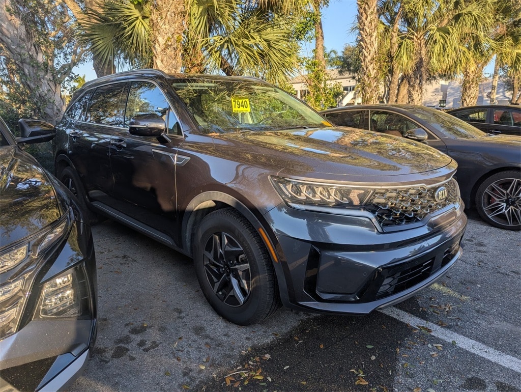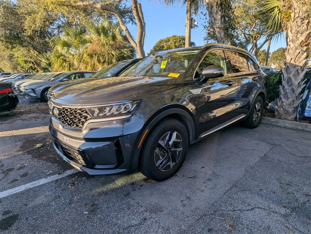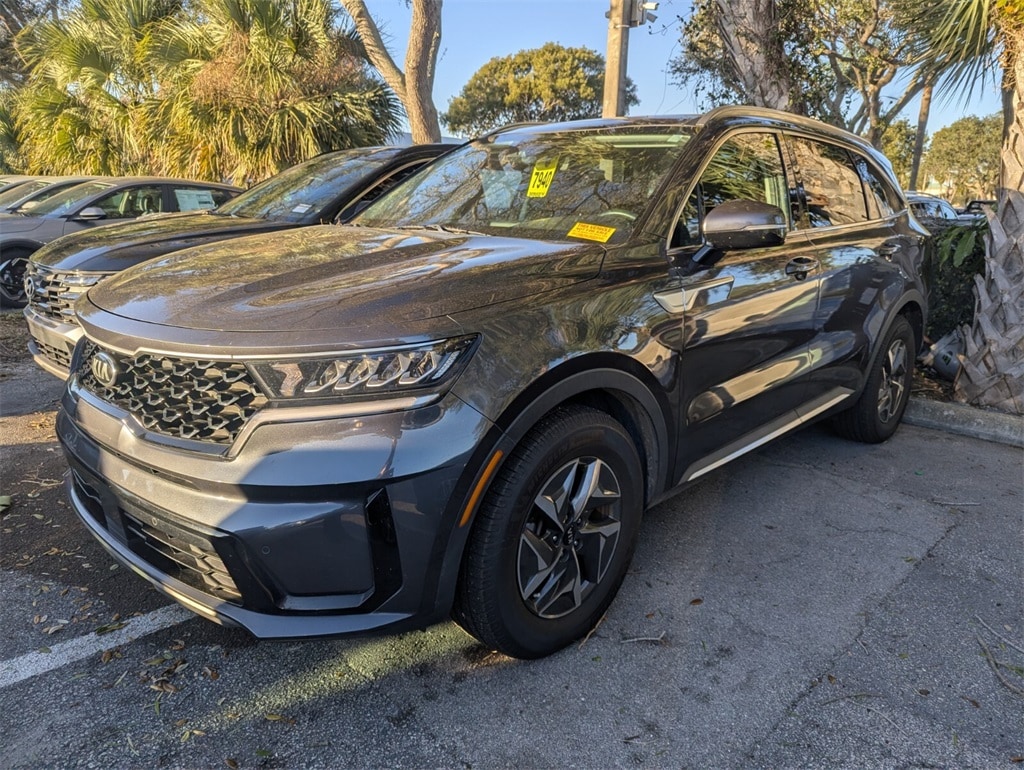 2021 Kia Sorento Hybrid EX Beautifully finished in Platinum Graphite with Black Artificial Leather interior. 1.6L I4 DGI Hybrid Turbocharged DOHC 16V LEV3-ULEV70 4D Sport Utility FWD 6-Speed Automatic 1.6L I4 DGI Hybrid Turbocharged DOHC 16V LEV3-ULEV70, 3rd row seats: split-bench, 4-Wheel Disc Brakes, 6 Speakers, ABS brakes, Air Conditioning, Alloy wheels, AM/FM radio: SiriusXM, Apple CarPlay & Android Auto, Auto High-beam Headlights, Automatic temperature control, Axle Ratio: 3.510, Brake assist, Bumpers: body-color, Carpeted Floor Mats, Delay-off headlights, Driver door bin, Driver vanity mirror, Dual front impact airbags, Dual front side impact airbags, Electronic Stability Control, Exterior Parking Camera Rear, Four wheel independent suspension, Front anti-roll bar, Front Bucket Seats, Front Center Armrest, Front dual zone A/C, Front fog lights, Front reading lights, Fully automatic headlights, Heated door mirrors, Heated Front Bucket Seats, Heated front seats, Illuminated entry, Knee airbag, Leather steering wheel, Low tire pressure warning, Occupant sensing airbag, Outside temperature display, Overhead airbag, Overhead console, Panic alarm, Passenger door bin, Passenger vanity mirror, Power door mirrors, Power driver seat, Power Liftgate, Power moonroof, Power steering, Power windows, Premium Leatherette Seat Trim, Radio data system, Radio: AM/FM Audio System, Rear air conditioning, Rear anti-roll bar, Rear reading lights, Rear window defroster, Rear window wiper, Remote keyless entry, Roof rack: rails only, Security system, Speed control, Speed-sensing steering, Split folding rear seat, Spoiler, Steering wheel mounted audio controls, Tachometer, Telescoping steering wheel, Tilt steering wheel, Traction control, Trip computer, Turn signal indicator mirrors, Variably intermittent wipers, Wheels: 17" Machine-Finished Aero Style Alloy, 1.6L I4 DGI Hybrid Turbocharged DOHC 16V LEV3-ULEV70. CARFAX One-Owner. Clean CARFAX. Priced below KBB Fair Purchase Price! 39/35 City/Highway MPG