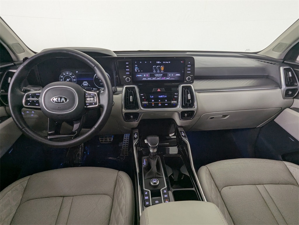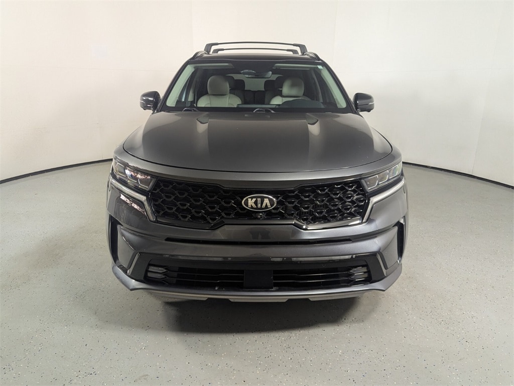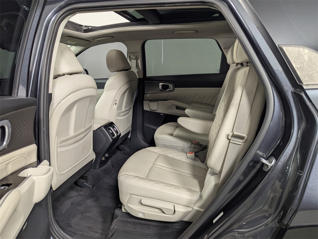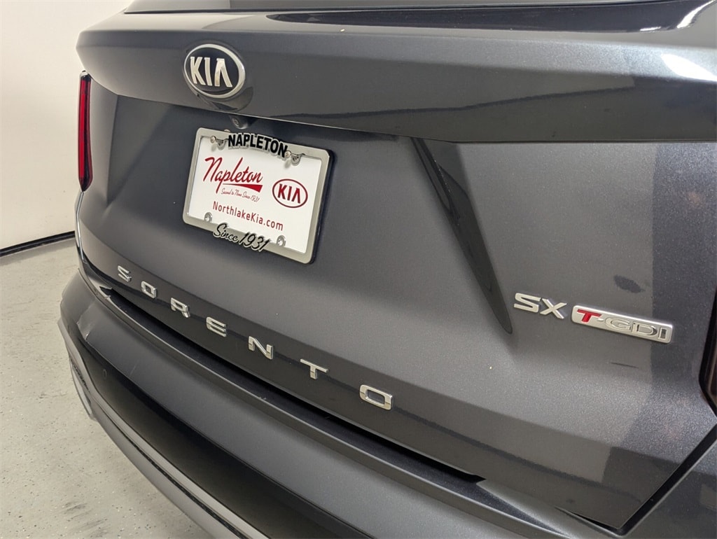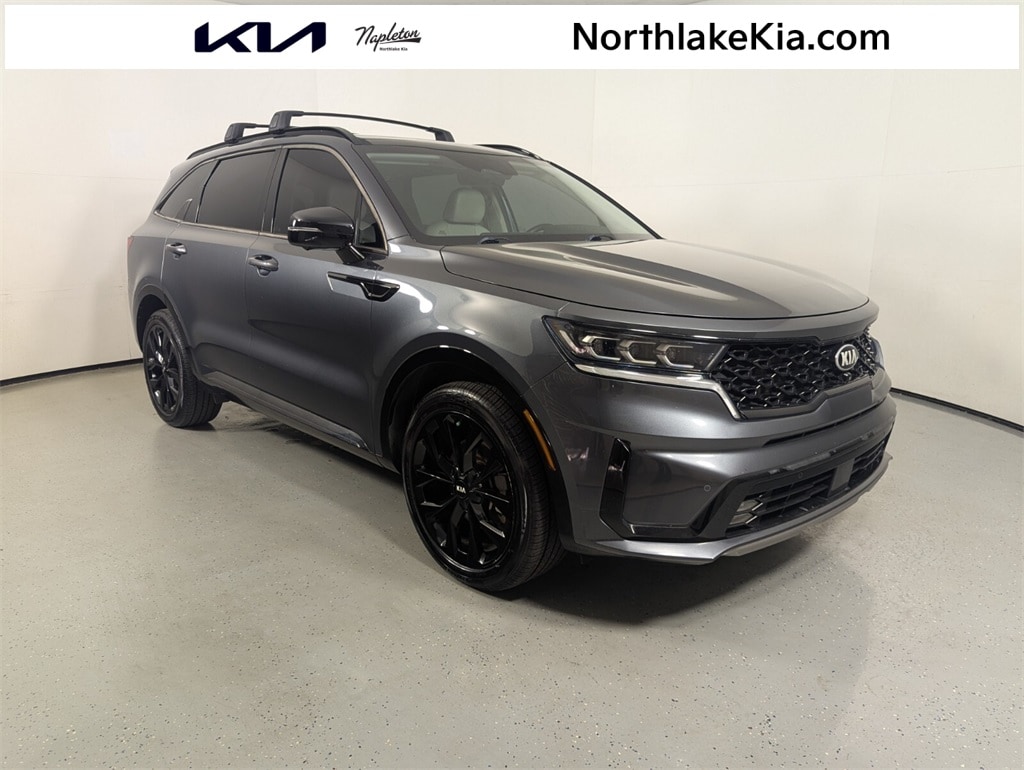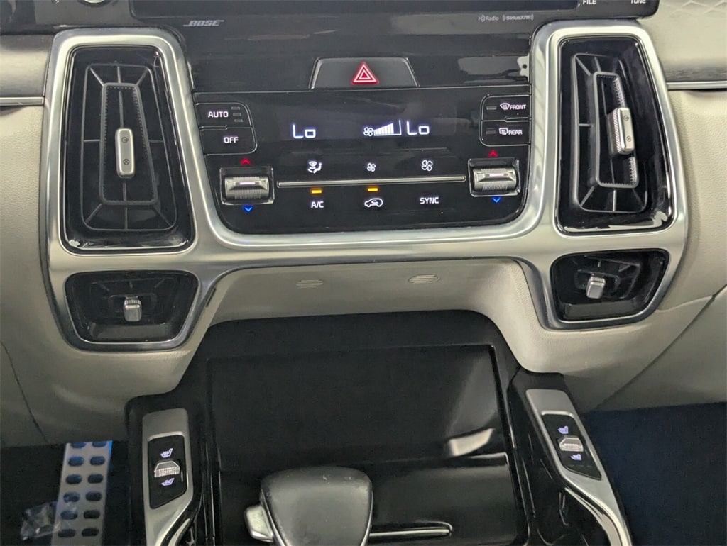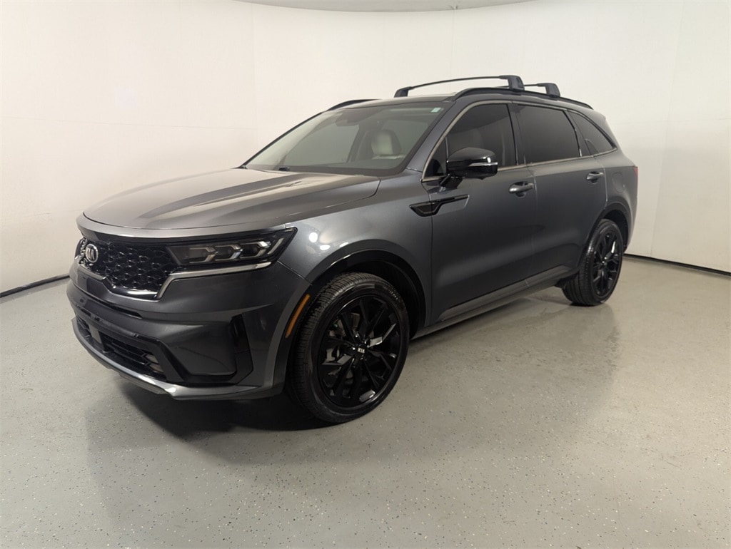 2021 Kia Sorento SX-Prestige Beautifully finished in Gravity Gray with Grey Leather interior. 2.5L I4 DGI Turbocharged DOHC 16V LEV3-ULEV70 281hp 4D Sport Utility FWD 8-Speed DCT 12 Speakers, 3.316 Axle Ratio, 3rd row seats: split-bench, 4-Wheel Disc Brakes, ABS brakes, Air Conditioning, Alloy wheels, AM/FM radio: SiriusXM, Apple CarPlay & Android Auto, Auto High-beam Headlights, Auto-dimming Rear-View mirror, Automatic temperature control, Brake assist, Bumpers: body-color, Cargo Cover, Cargo Net, Carpeted Cargo Mat w/Seatback Protection, Carpeted Floor Mats, Delay-off headlights, Driver door bin, Driver vanity mirror, Dual front impact airbags, Dual front side impact airbags, Electronic Stability Control, Emergency communication system: UVO link, Four wheel independent suspension, Front anti-roll bar, Front Bucket Seats, Front Center Armrest, Front dual zone A/C, Front fog lights, Front reading lights, Fully automatic headlights, Heated & Ventilated Front Bucket Seats, Heated door mirrors, Heated front seats, Heated steering wheel, Illuminated entry, Interior Lighting Kit, Knee airbag, Leather steering wheel, Low tire pressure warning, Navigation System, Occupant sensing airbag, Outside temperature display, Overhead airbag, Overhead console, Panic alarm, Passenger door bin, Passenger vanity mirror, Perforated Genuine Leather Seat Trim, Power door mirrors, Power driver seat, Power Liftgate, Power moonroof, Power passenger seat, Power steering, Power windows, Radio data system, Radio: AM/FM Bose Audio System w/Navigation, Rear air conditioning, Rear anti-roll bar, Rear reading lights, Rear window defroster, Rear window wiper, Remote keyless entry, Roof rack: rails only, Security system, Smart Key w/ Push Button and Remote Start, Speed control, Speed-sensing steering, Split folding rear seat, Spoiler, Steering wheel mounted audio controls, Tachometer, Telescoping steering wheel, Tilt steering wheel, Traction control, Trip computer, Turn signal indicator mirrors, Variably intermittent wipers, Ventilated front seats, Wheels: 20" Gloss Black Alloy. CARFAX One-Owner. Priced below KBB Fair Purchase Price! 22/29 City/Highway MPG