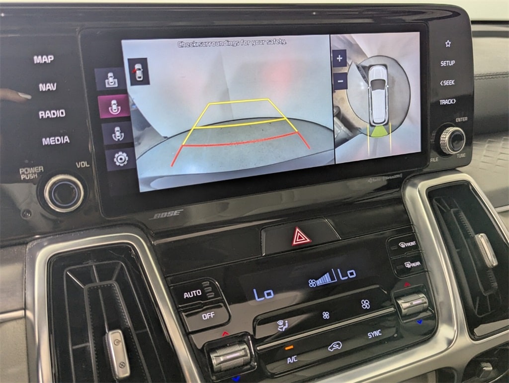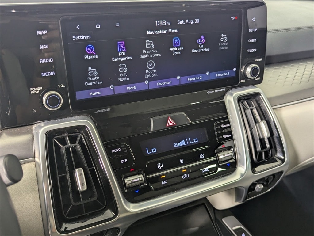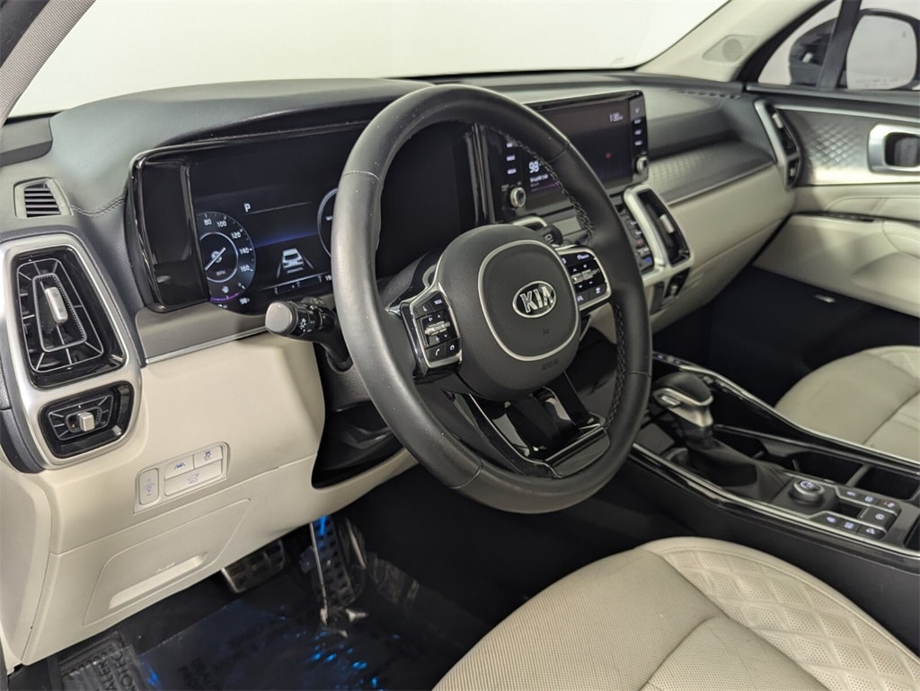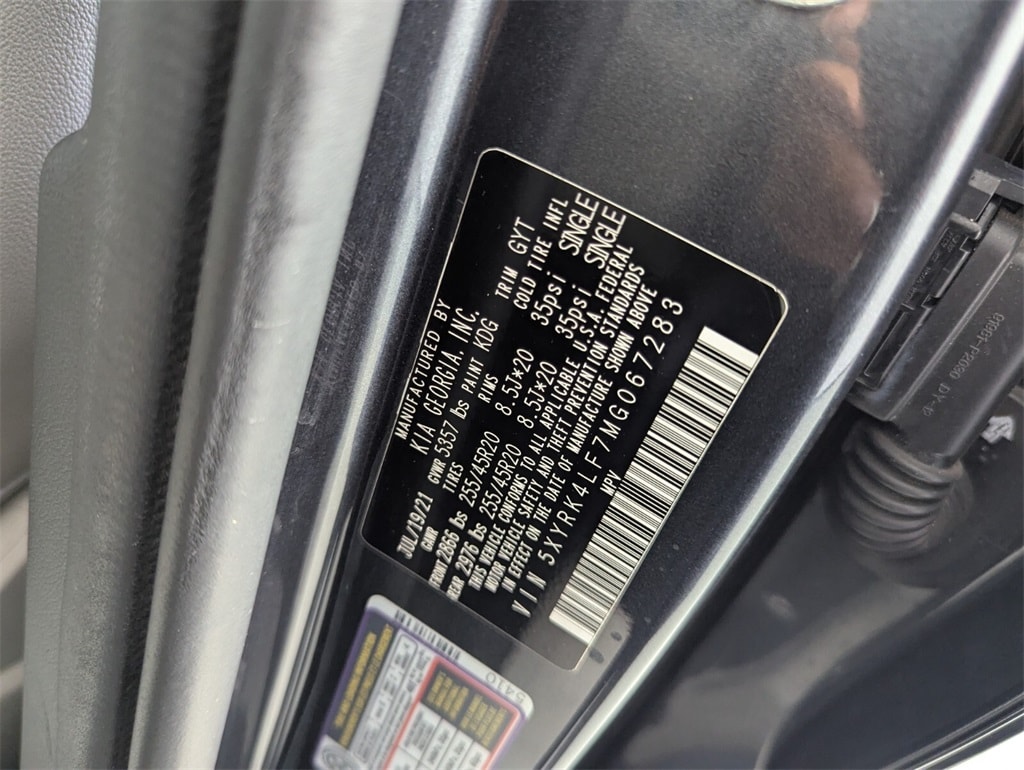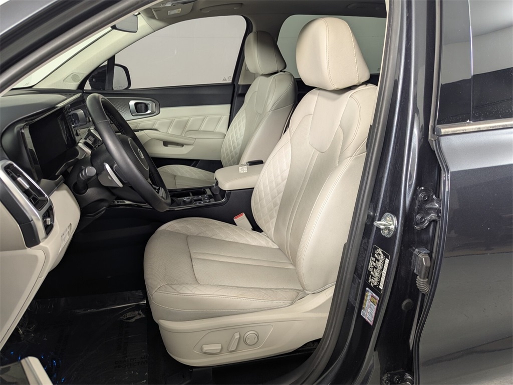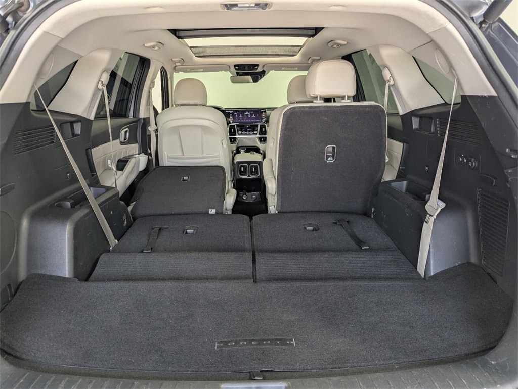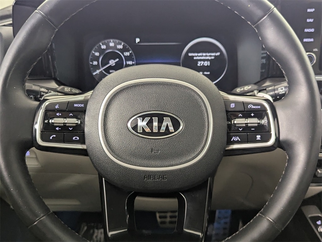 2021 Kia Sorento SX-Prestige Beautifully finished in Gravity Gray with Grey Leather interior. 2.5L I4 DGI Turbocharged DOHC 16V LEV3-ULEV70 281hp 4D Sport Utility FWD 8-Speed DCT 12 Speakers, 3.316 Axle Ratio, 3rd row seats: split-bench, 4-Wheel Disc Brakes, ABS brakes, Air Conditioning, Alloy wheels, AM/FM radio: SiriusXM, Apple CarPlay & Android Auto, Auto High-beam Headlights, Auto-dimming Rear-View mirror, Automatic temperature control, Brake assist, Bumpers: body-color, Cargo Cover, Cargo Net, Carpeted Cargo Mat w/Seatback Protection, Carpeted Floor Mats, Delay-off headlights, Driver door bin, Driver vanity mirror, Dual front impact airbags, Dual front side impact airbags, Electronic Stability Control, Emergency communication system: UVO link, Four wheel independent suspension, Front anti-roll bar, Front Bucket Seats, Front Center Armrest, Front dual zone A/C, Front fog lights, Front reading lights, Fully automatic headlights, Heated & Ventilated Front Bucket Seats, Heated door mirrors, Heated front seats, Heated steering wheel, Illuminated entry, Interior Lighting Kit, Knee airbag, Leather steering wheel, Low tire pressure warning, Navigation System, Occupant sensing airbag, Outside temperature display, Overhead airbag, Overhead console, Panic alarm, Passenger door bin, Passenger vanity mirror, Perforated Genuine Leather Seat Trim, Power door mirrors, Power driver seat, Power Liftgate, Power moonroof, Power passenger seat, Power steering, Power windows, Radio data system, Radio: AM/FM Bose Audio System w/Navigation, Rear air conditioning, Rear anti-roll bar, Rear reading lights, Rear window defroster, Rear window wiper, Remote keyless entry, Roof rack: rails only, Security system, Smart Key w/ Push Button and Remote Start, Speed control, Speed-sensing steering, Split folding rear seat, Spoiler, Steering wheel mounted audio controls, Tachometer, Telescoping steering wheel, Tilt steering wheel, Traction control, Trip computer, Turn signal indicator mirrors, Variably intermittent wipers, Ventilated front seats, Wheels: 20" Gloss Black Alloy. CARFAX One-Owner. Priced below KBB Fair Purchase Price! 22/29 City/Highway MPG