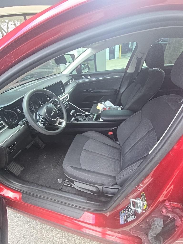 2022 Kia K5 LXS Beautifully finished in Passion Red with Black Cloth interior. I4 4D Sedan FWD 8-Speed Automatic **ONE OWNER**, **LOCAL TRADE**, **CLEAN CARFAX**, **MUST SEE TO APPRECIATE**, **EXTRA CLEAN**, 4-Wheel Disc Brakes, 6 Speakers, ABS brakes, Air Conditioning, Alloy wheels, AM/FM radio, Auto High-beam Headlights, Automatic temperature control, Brake assist, Bumpers: body-color, Carpeted Floor Mats, Cloth Seat Trim, Delay-off headlights, Driver door bin, Driver vanity mirror, Dual front impact airbags, Dual front side impact airbags, Electronic Stability Control, Four wheel independent suspension, Front anti-roll bar, Front Bucket Seats, Front Center Armrest, Front dual zone A/C, Front reading lights, Fully automatic headlights, Heated door mirrors, Illuminated entry, Knee airbag, Low tire pressure warning, Occupant sensing airbag, Outside temperature display, Overhead airbag, Overhead console, Panic alarm, Passenger door bin, Passenger vanity mirror, Power door mirrors, Power steering, Power windows, Radio data system, Radio: AM/FM/MP3 Audio System, Rear anti-roll bar, Rear seat center armrest, Rear side impact airbag, Rear window defroster, Remote keyless entry, Security system, Speed control, Speed-sensing steering, Split folding rear seat, Steering wheel mounted audio controls, Tachometer, Telescoping steering wheel, Tilt steering wheel, Traction control, Trip computer, Variably intermittent wipers, Wheels: 6.5J x 16" Gray Alloy. CARFAX One-Owner. Clean CARFAX. Priced below KBB Fair Purchase Price! 27/37 City/Highway MPG